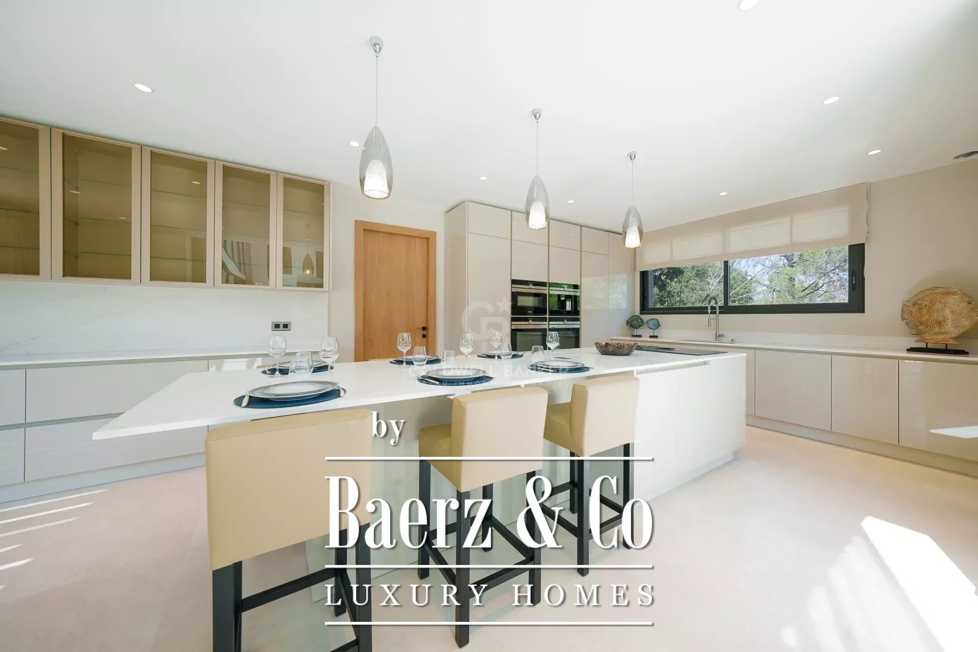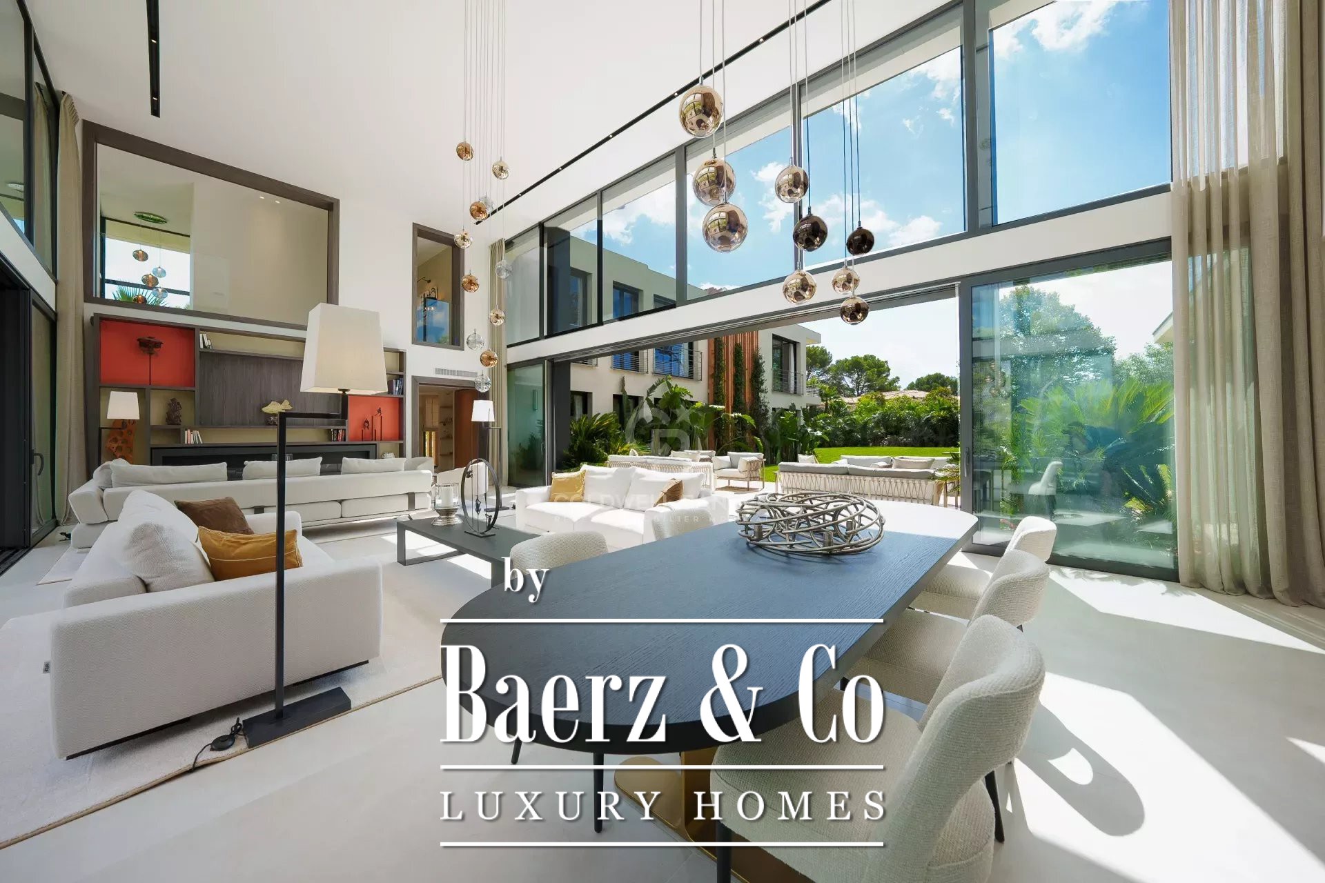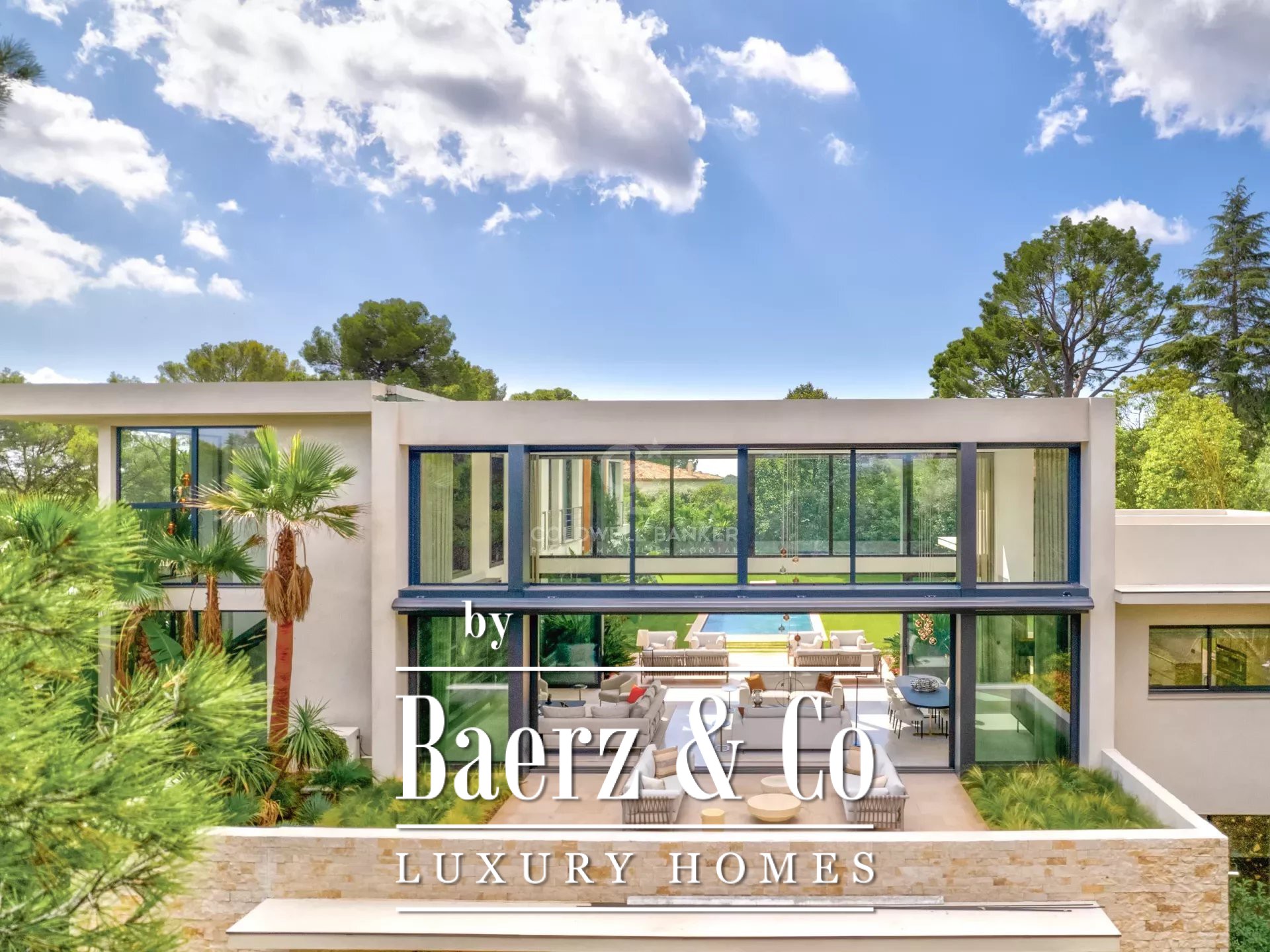 Magnificent new contemporary villa, ideally located in the most prestigious estate of Mougins, just minutes from renowned golf courses and international schools. This private and secure domain, monitored 24/7, offers an exclusive lifestyle combining peace and convenience.
