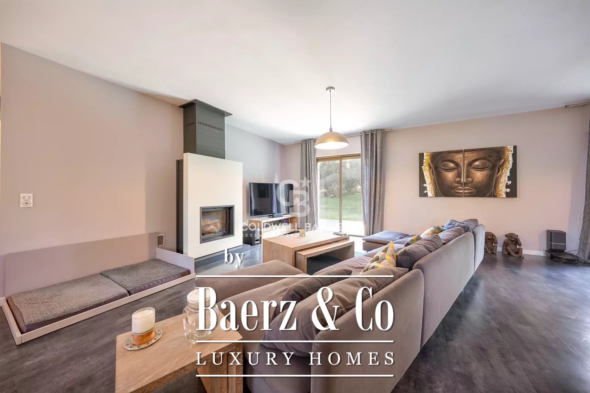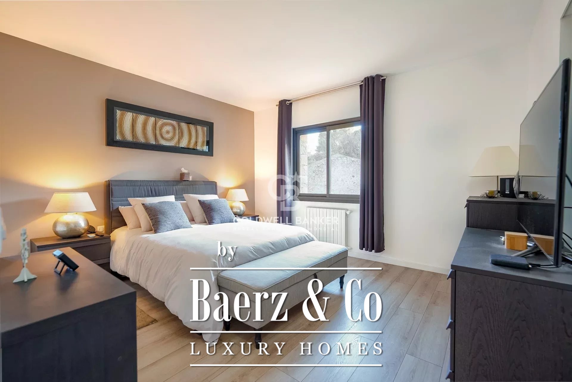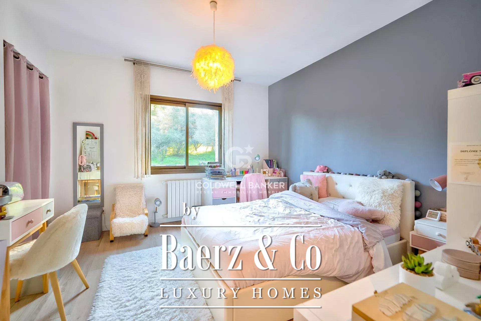 Villa Mougins with Gated Estate and Expansive Grounds unveils an address distinguished by quiet confidence, defined by its 250 m² single-level layout set amidst 16,888 m² of mature, wooded grounds. This villa in Mougins welcomes you through private gates into a realm of absolute tranquility, with understated architecture that offers a luminous living room and a Provençal kitchen at its heart. Four bedrooms and three bathrooms are arranged for comfort and privacy, offering a harmonious retreat.
