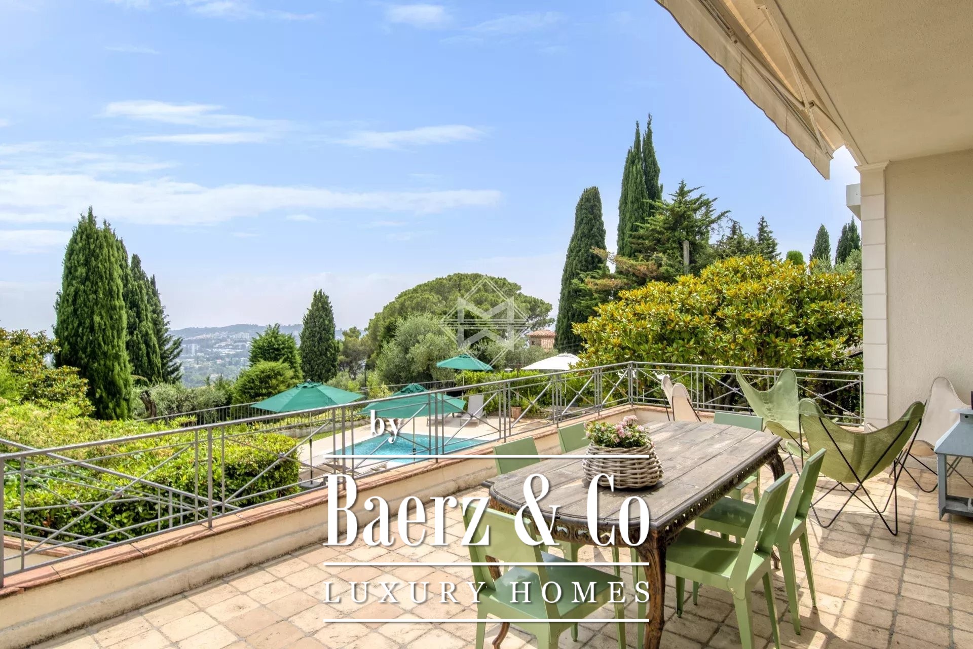 Ideally located just a short walk from the picturesque old village of Mougins and its restaurants and galeries, this elegant Provençal-style villa offers an exceptional living environment. Facing due south, it enjoys optimal sunlight throughout the day and boasts breathtaking panoramic views over the Bay of Cannes.