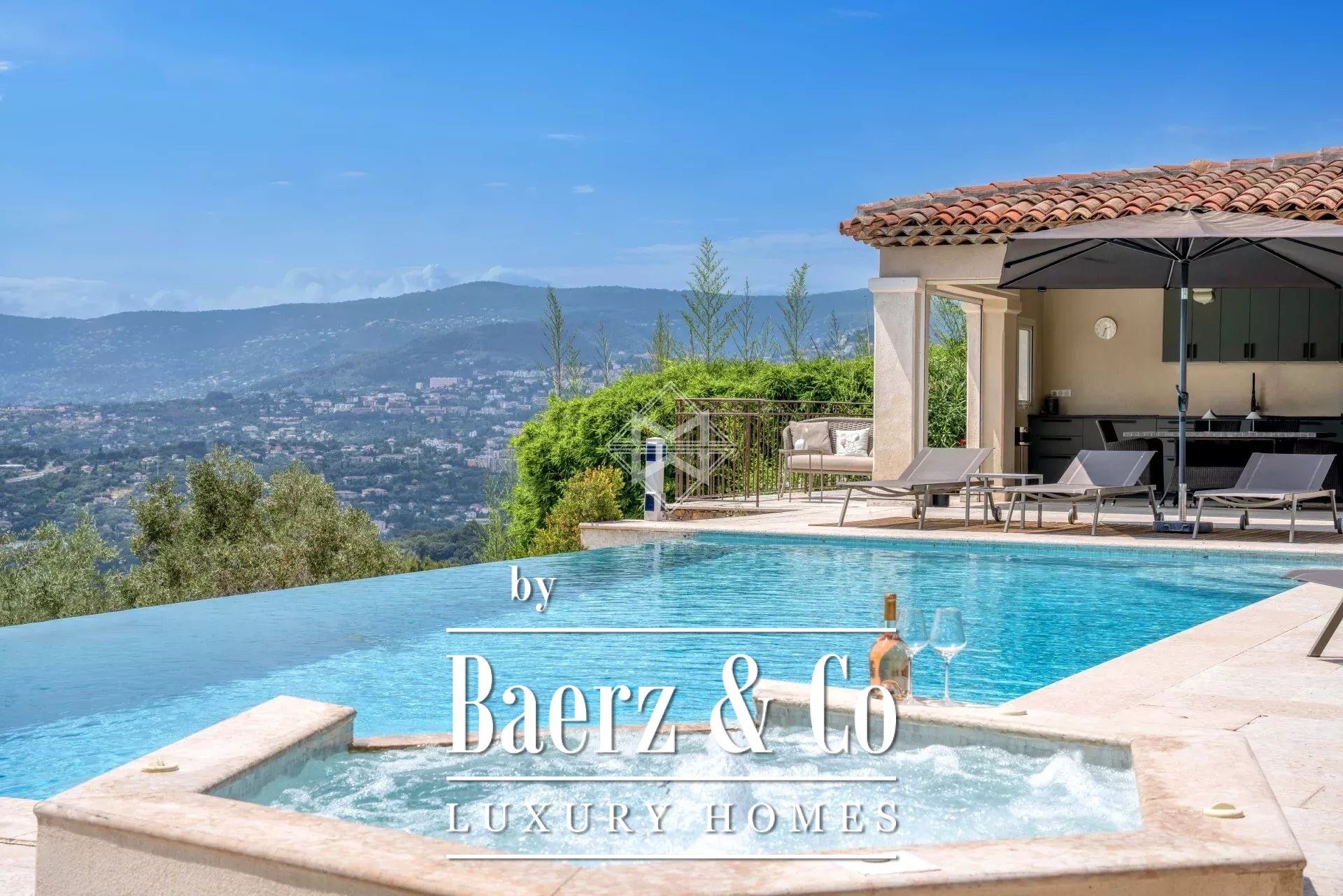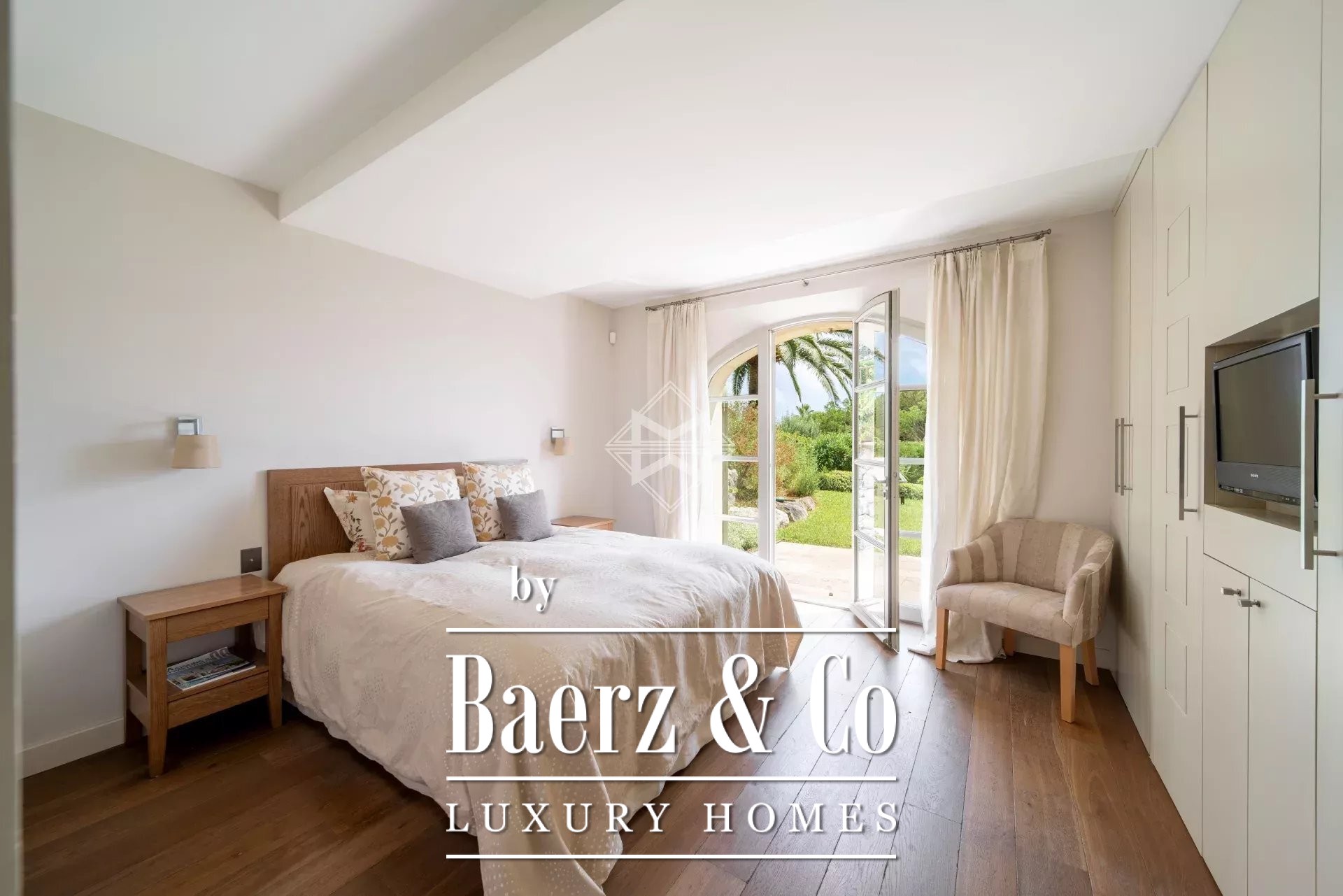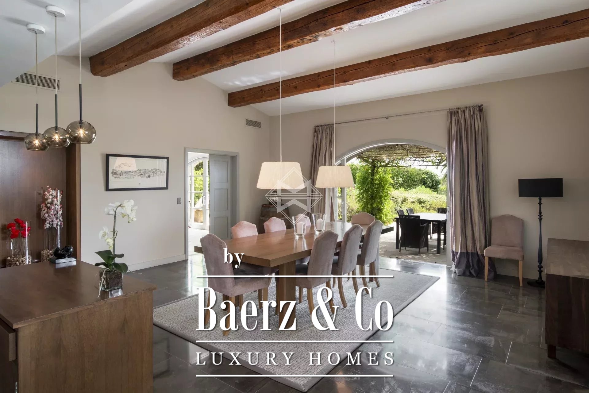 Facing south, this elegant villa is set on a plot of over 5,000m², including a magnificent olive grove with sixty century-old trees, offering a delightful space with a heated infinity pool, jacuzzi, and a pool house with a summer kitchen — an ideal setting for summer lunches.