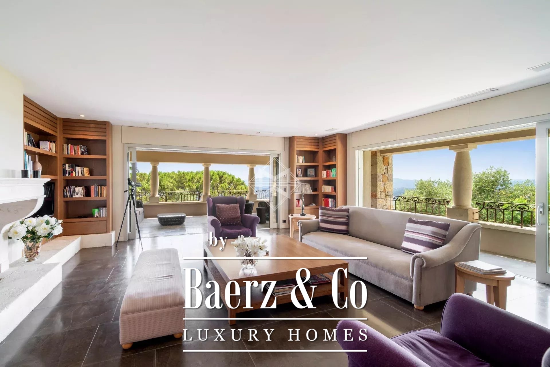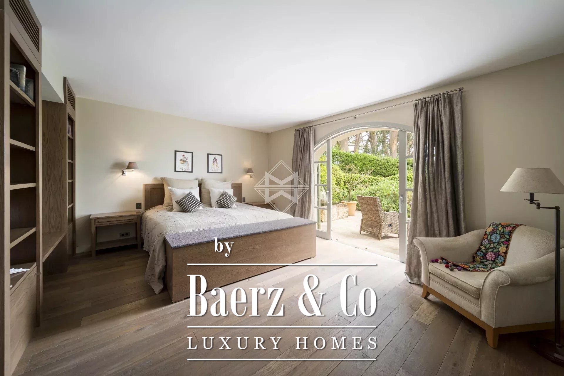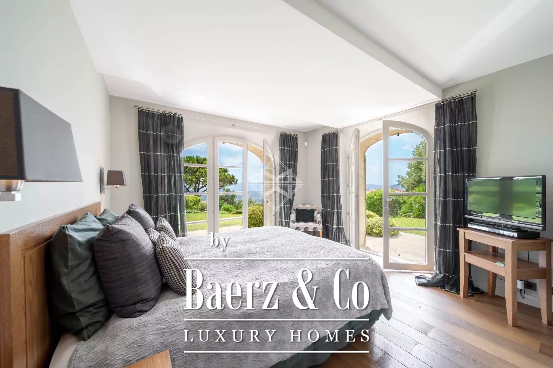 Facing south, this elegant villa is set on a plot of over 5,000m², including a magnificent olive grove with sixty century-old trees, offering a delightful space with a heated infinity pool, jacuzzi, and a pool house with a summer kitchen — an ideal setting for summer lunches.
