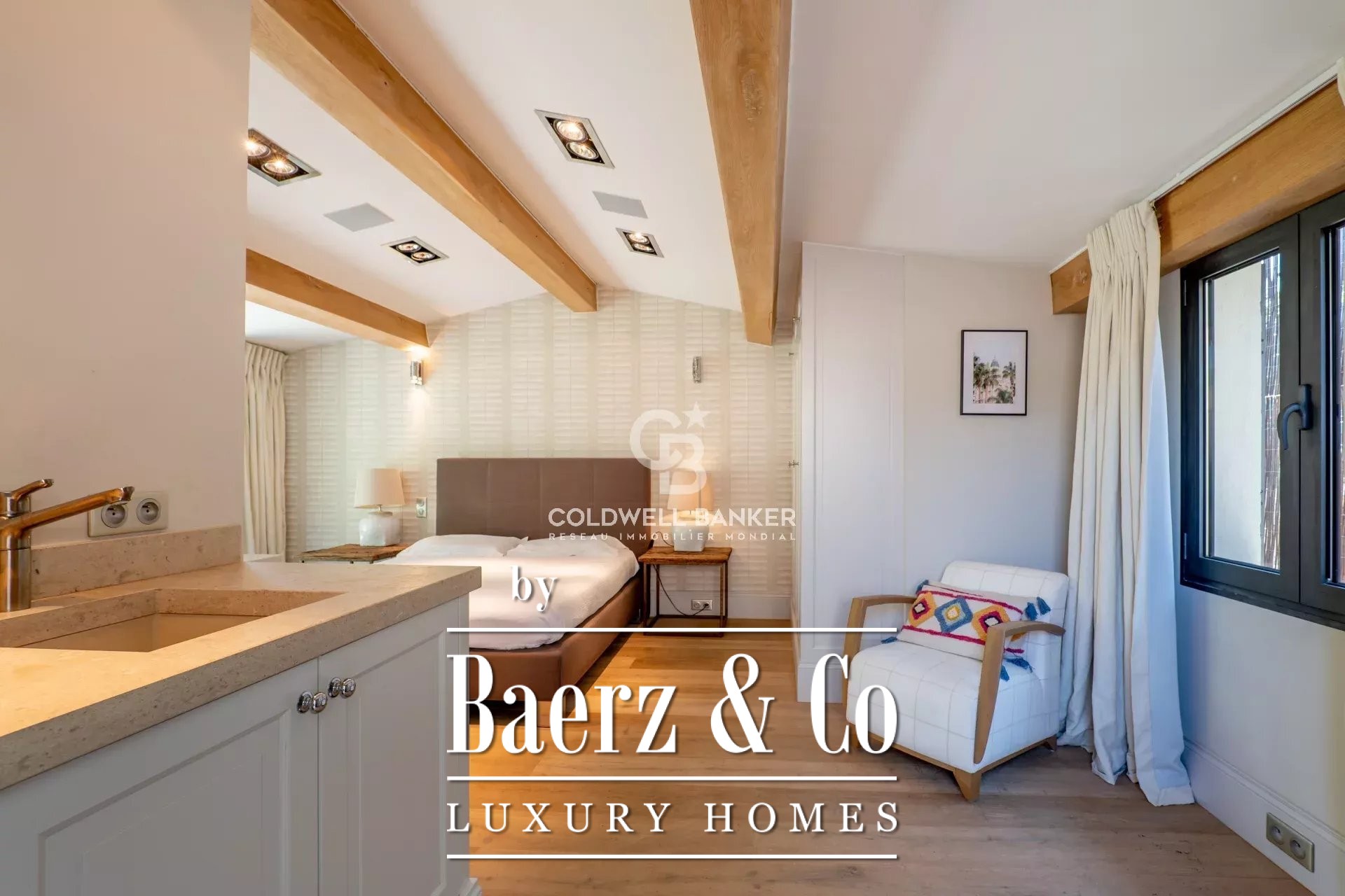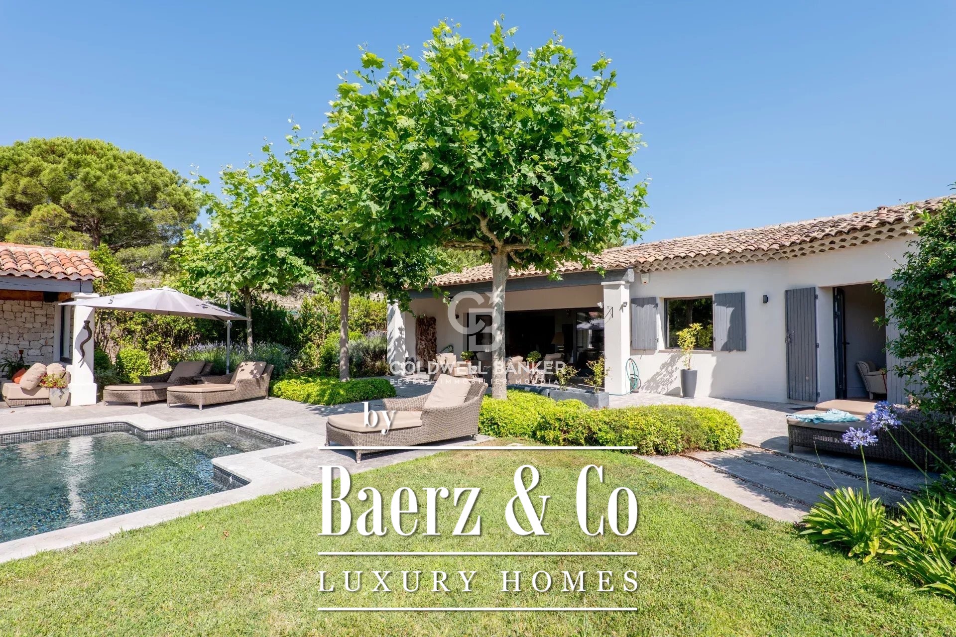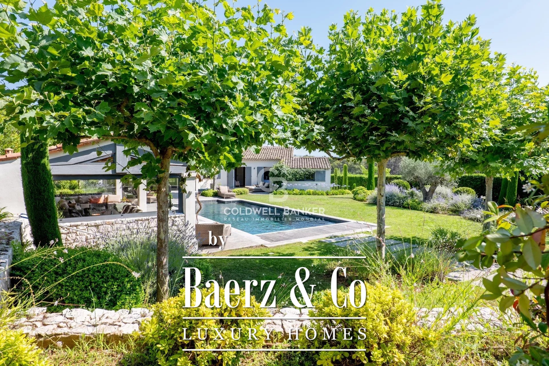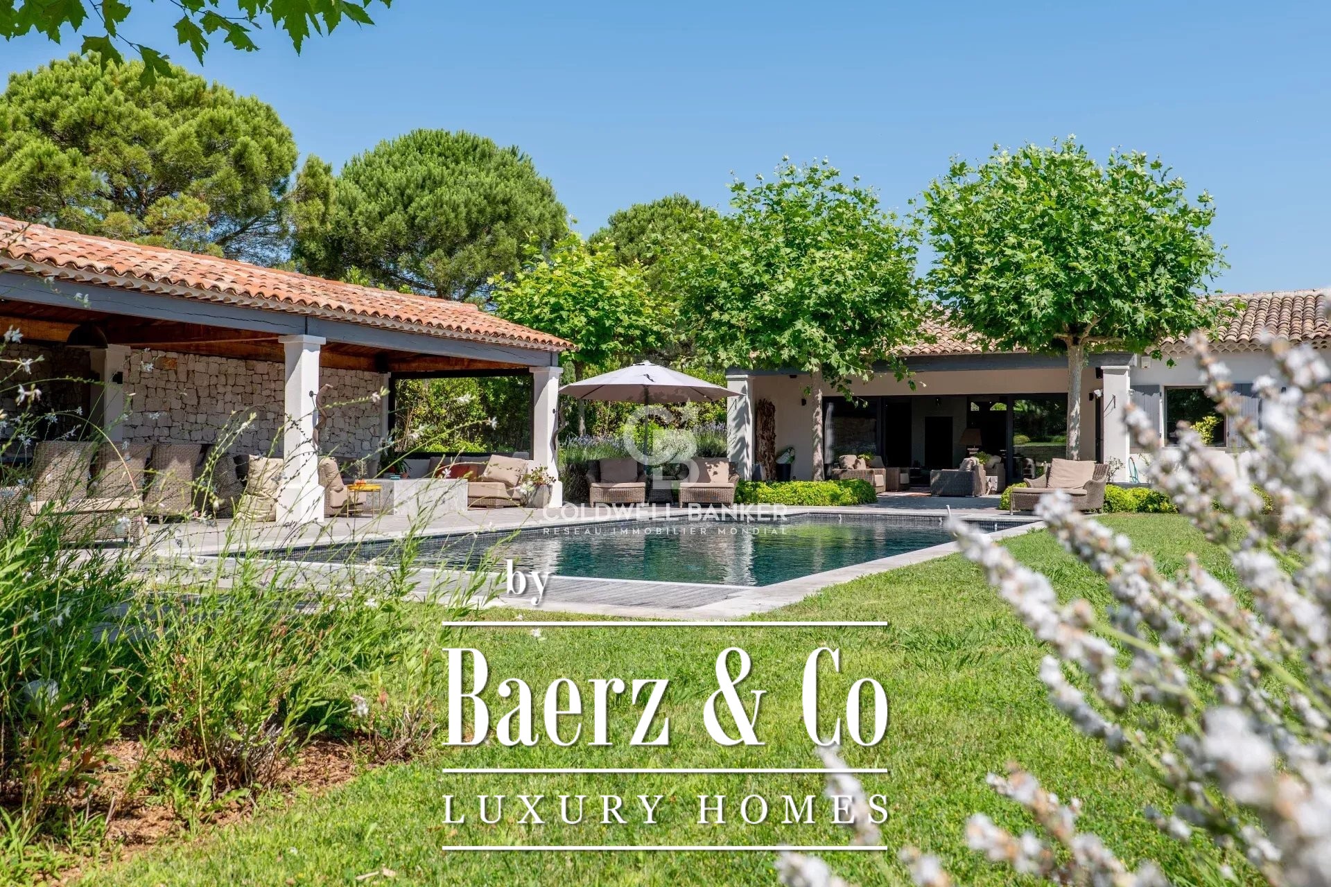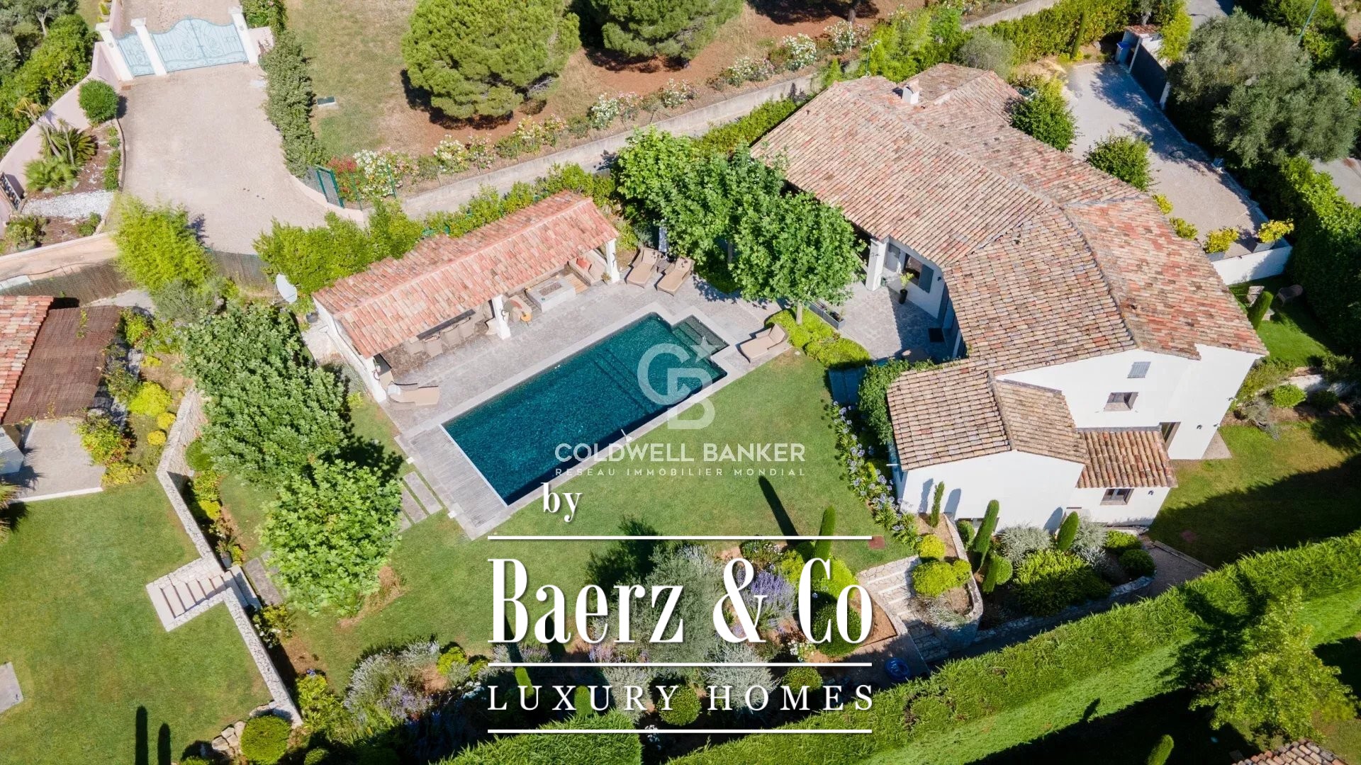 room, a vine cellar and a laundry room. The property also includes a guest house with a lovely bedroom, shower room and kitchenette. Superb outdoor area with beautiful swimming pool and pool house of around 130 m2 with brazier and outdoor kitchen. Located just a few minutes from international schools and the old village. Carport for two cars and parking space for at least two more cars.