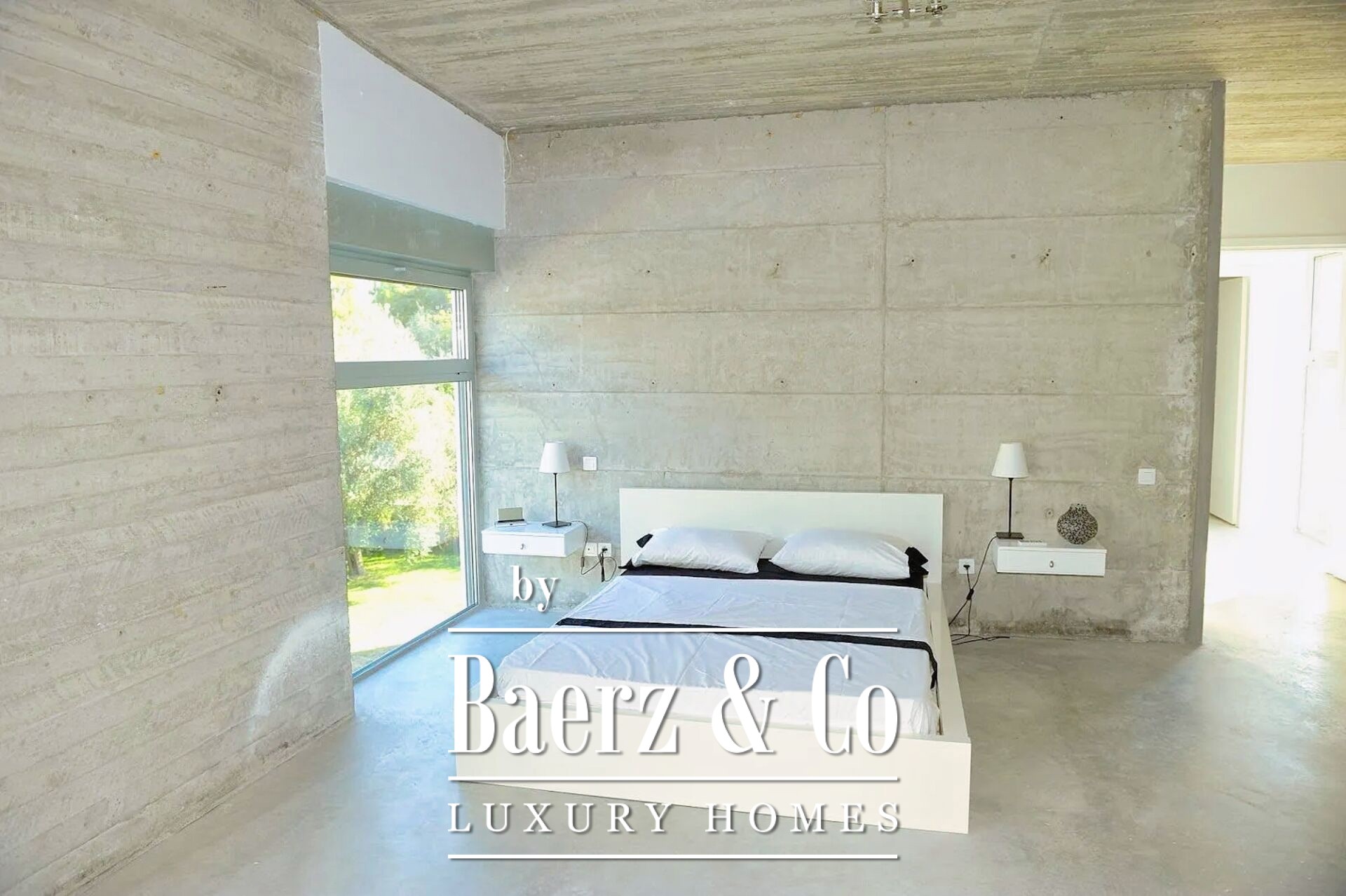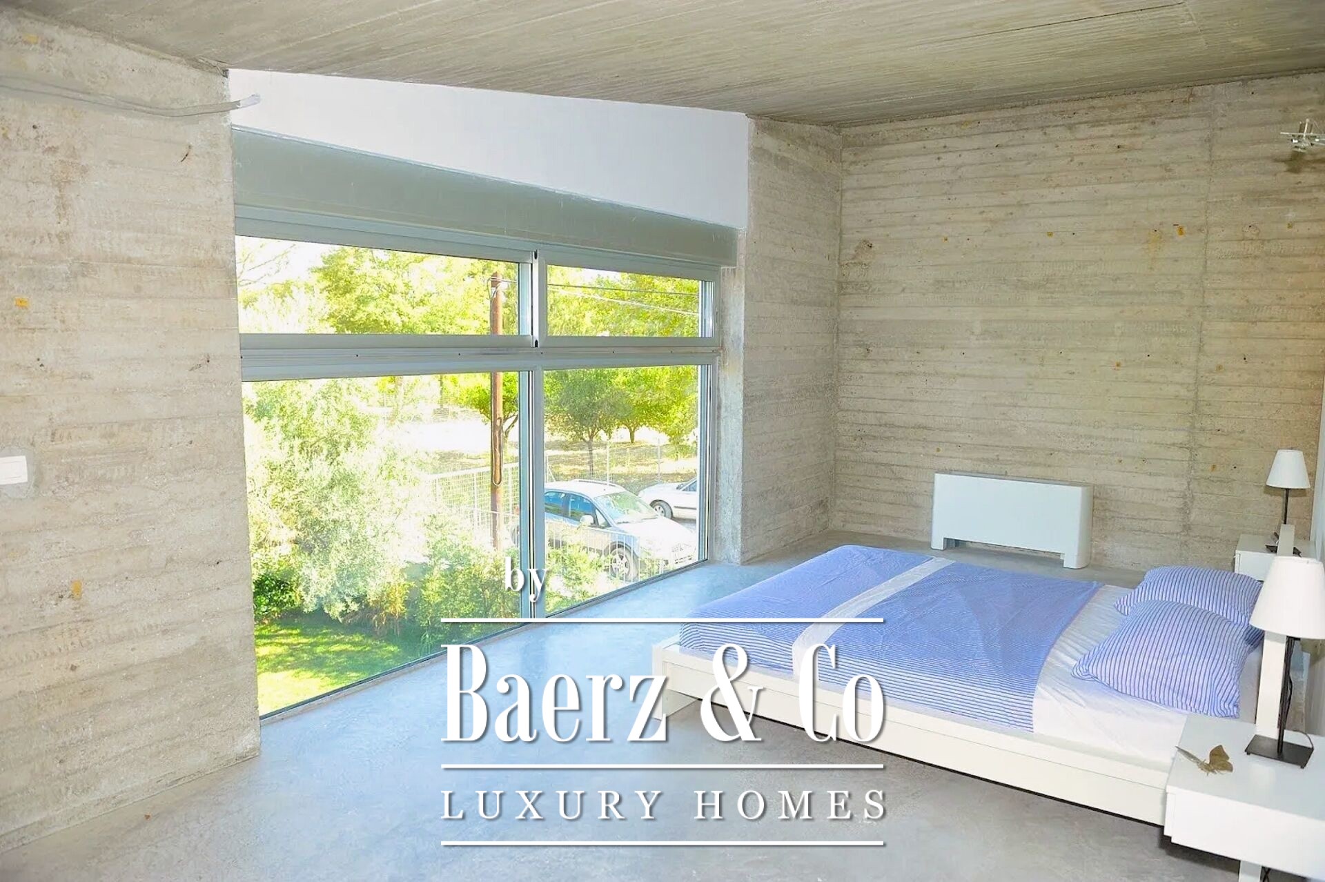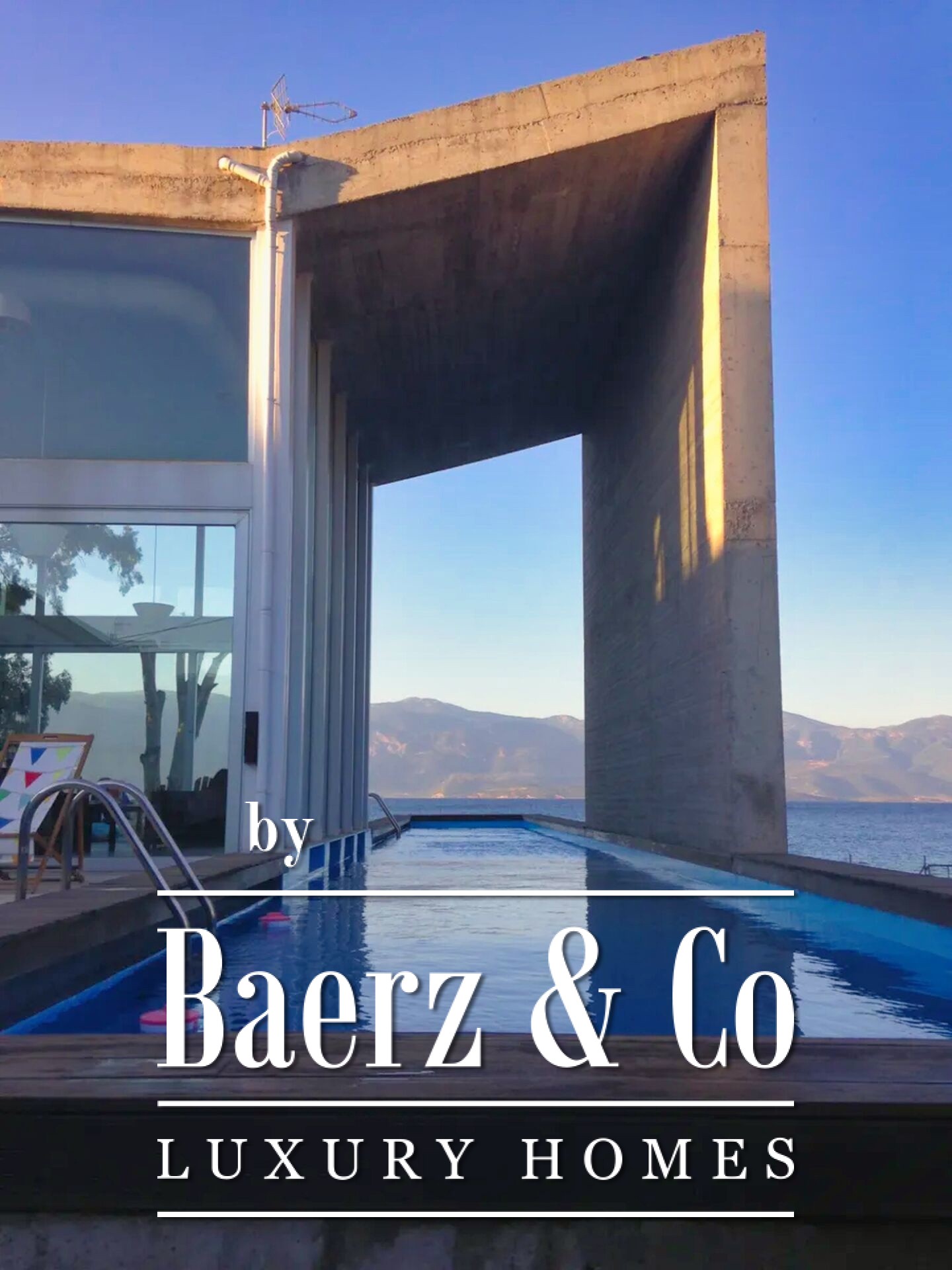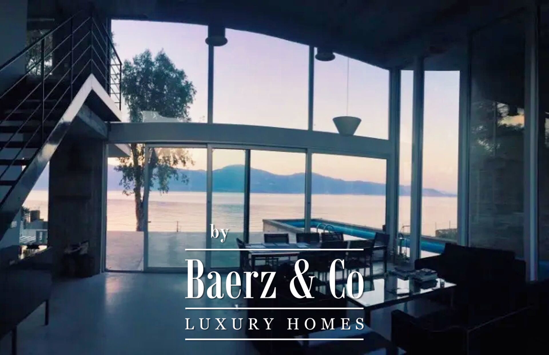 On the tranquil northern coast of the Peloponnese, in the seaside settlement of Bouka just ten kilometres west of Aigio and twenty-nine kilometres from Patras, a rare 434 sq.m. villa rises directly above the water. Built in 2008 on a 1,100 sq.m. plot, the residence adopts industrial style in its most refined form: exposed concrete on columns, walls and ceiling, bare surfaces without superfluous finishes, a metal staircase with sturdy supports and wide glass openings that frame uninterrupted views of the Corinthian Gulf. Entering the grounds, the eye follows the geometry of the pool; its surface mirrors the sky while the carefully designed sun-bathing terrace and built-in barbecue promise unforgettable summer gatherings. A few steps lower, a private path leads to a sandy beach, inviting you to leave your shoes behind and dive into the sea. Inside, the sense of simplicity is served by clean lines, glass tables and black sofas with white detailing. Natural light pours through imposing glazing, softening the raw materials and lending