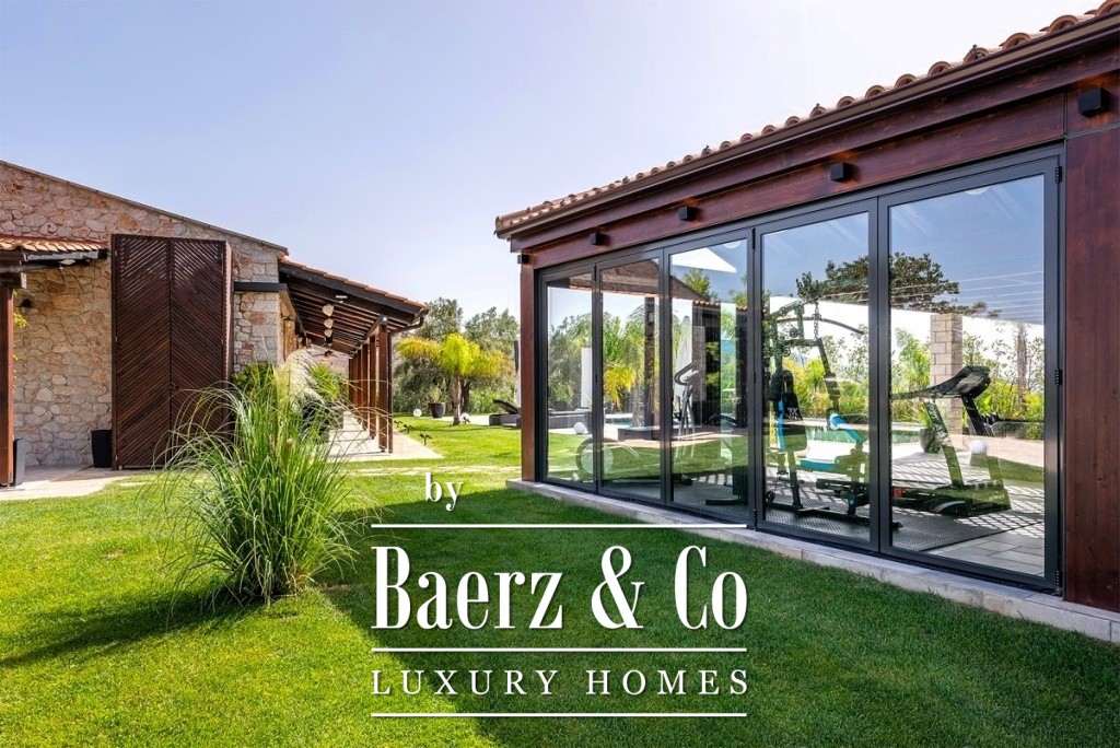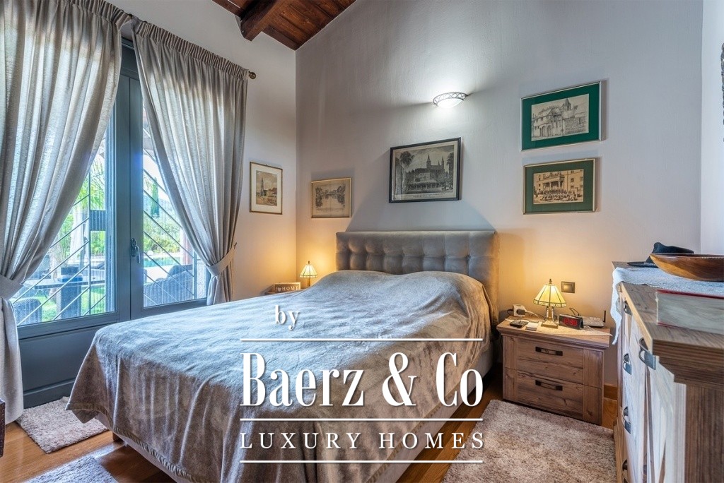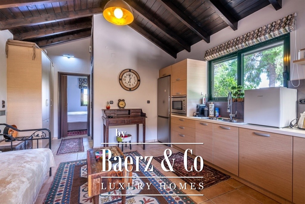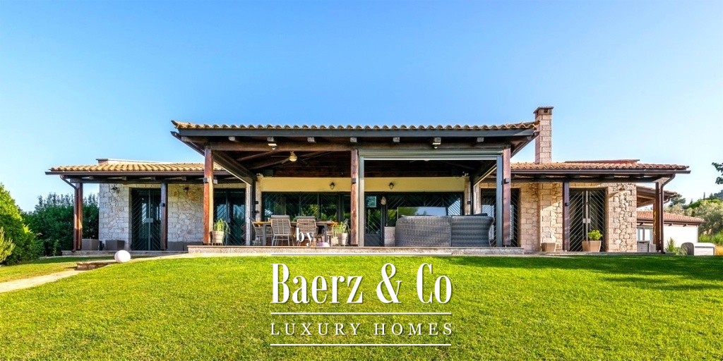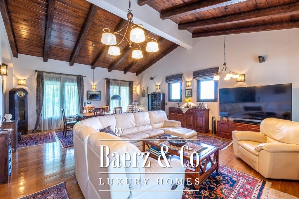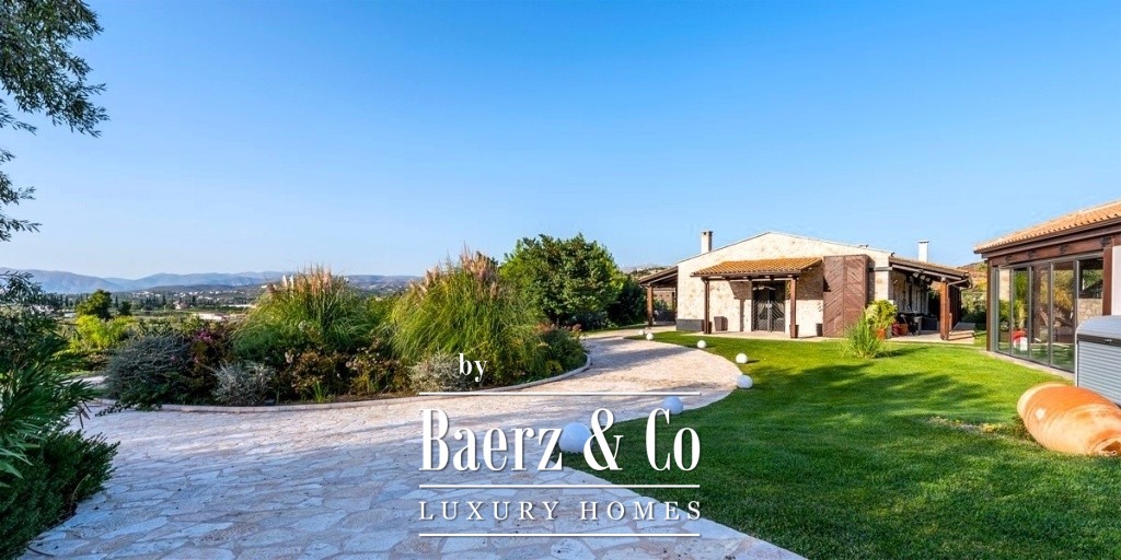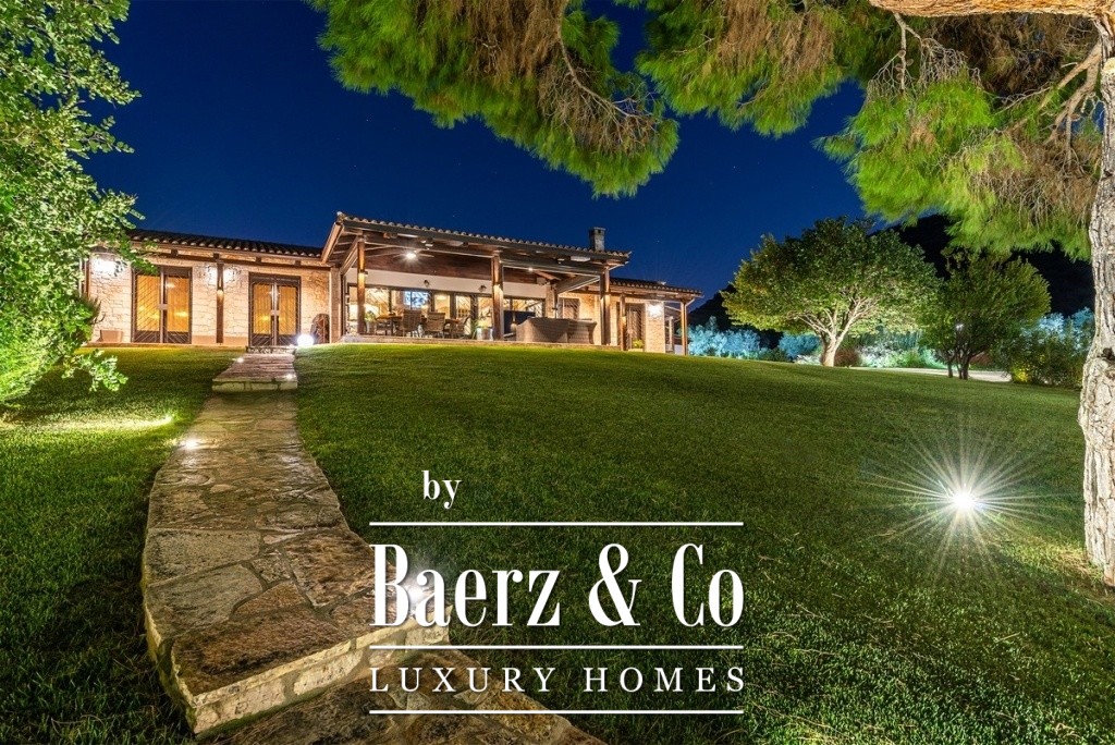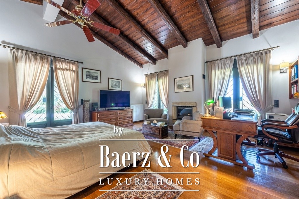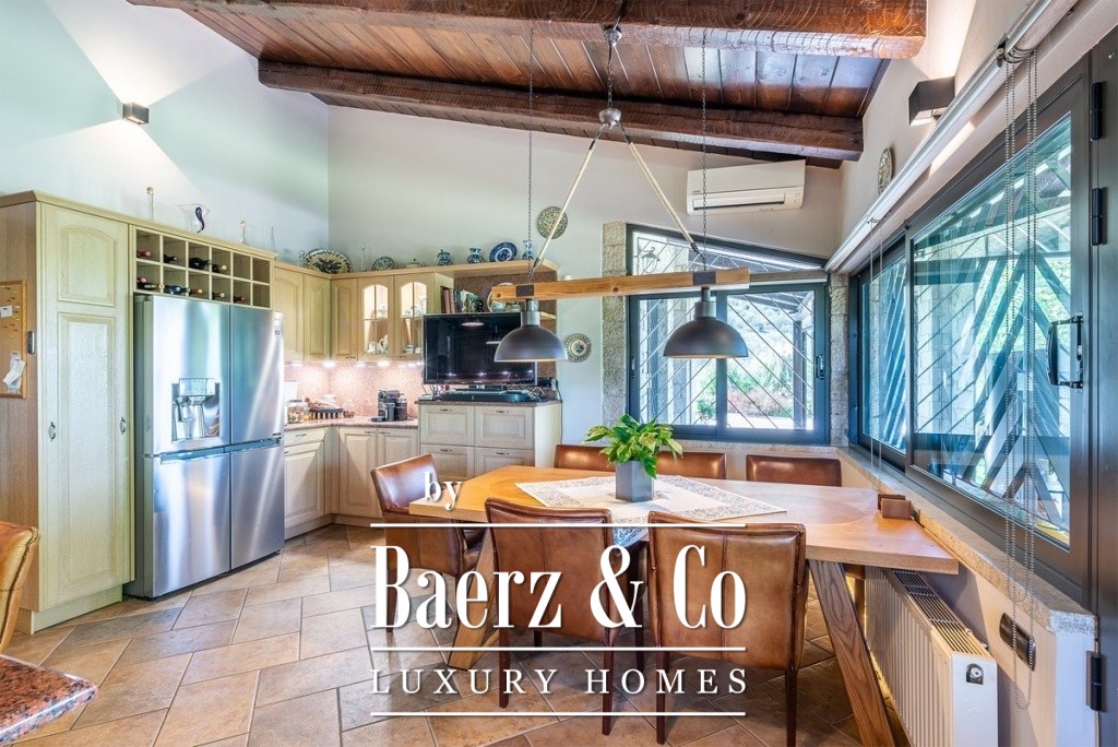 One of the magical elements in the design of a residence is the harmony between the large courtyards and the interior layout, which the owners implemented with their vision of living in a sophisticated residence, the layout of which will combine the older glamour with a modern aesthetic approach. The residence is built on an area of 14 acres on a hill with panoramic views, offering the necessary privacy. The total building square meters is 471 and is distributed in 4 different buildings. It has been completely renovated in 2020. The main residence is located in the most ideal point of the area, extends over 2 levels, has a separate kitchen area, high-ceilinged living room with oak ceiling, 3 very large master bedrooms, one of which has a fireplace and one with its own dressing room. On the lower level of the house there is a second living room, a space with a shaped jacuzzi and utility rooms and even the Laundry room with the oil boiler. In a close area with the house, luxury is combined with relaxation since there is a 60 sq.m. swimming pool with a beautiful view and a covered area of 88 sq.m., which is converted into a winter home