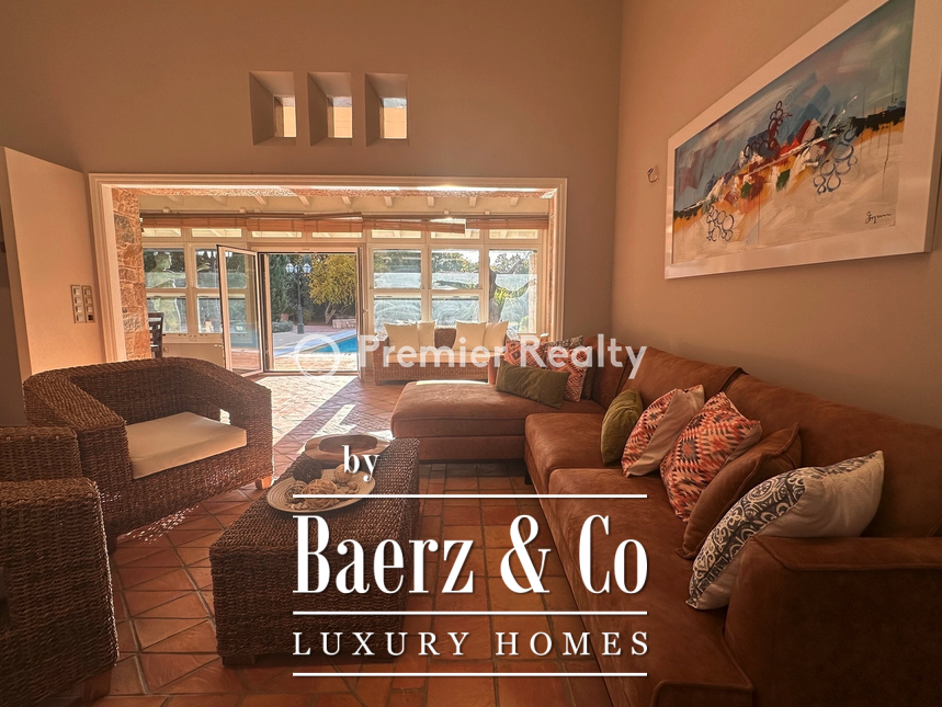 • Living & Dining Area with Fireplace (60 sq.m.): High-ceilinged, with direct pool views.