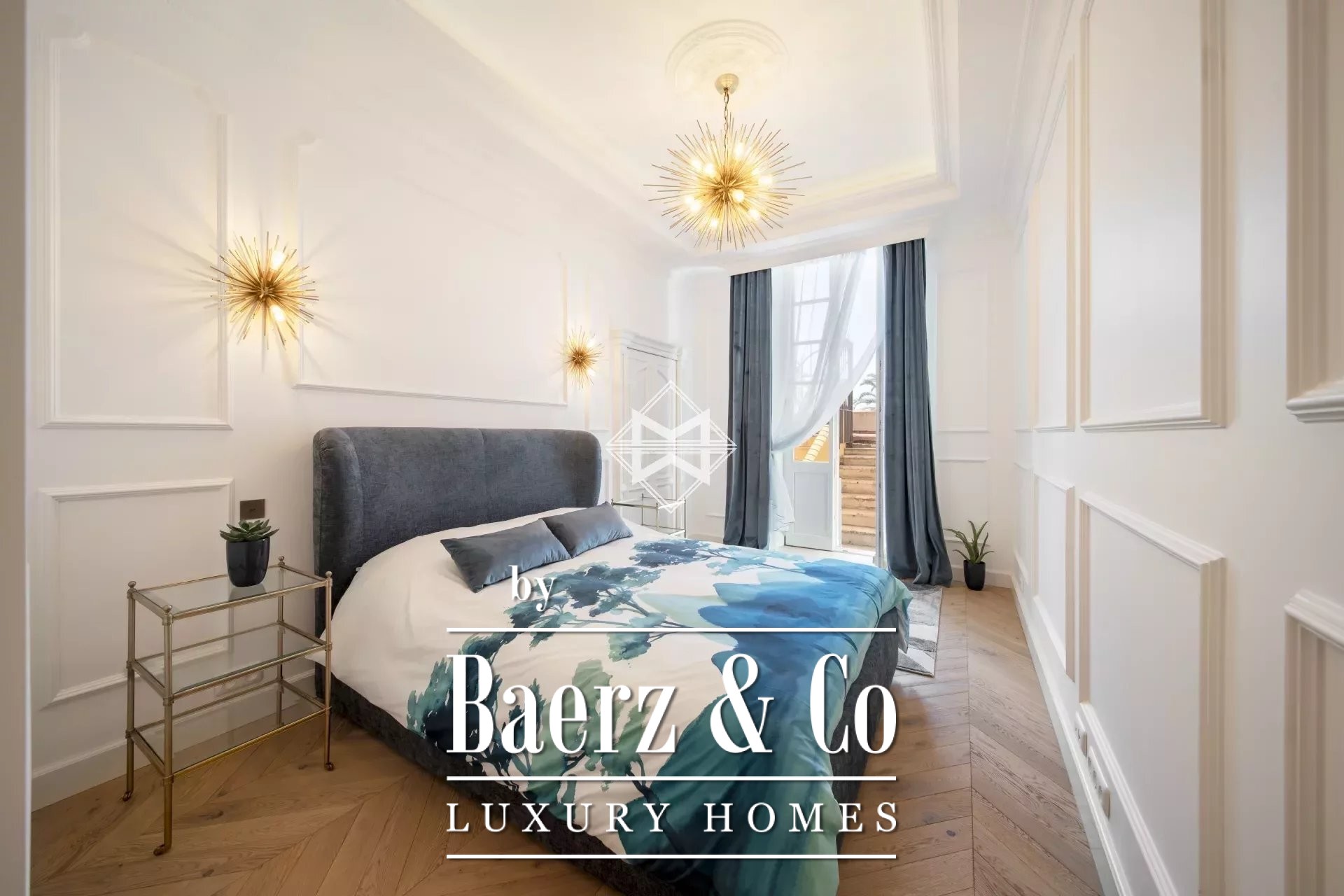 The first apartment features an entrance hall leading to an independent, fully appointed kitchen, a luminous living room, three en-suite bedrooms, and a separate guest WC. The second apartment reveals two further bedrooms with two bathrooms, one en-suite, a separate kitchen, and a spacious living area. Renovated in 2022 and 2023 with consistent attention to material quality, both apartments are marked by high ceilings, air conditioning, double glazing, and exceptional finishes. They are sold furnished and ready for immediate enjoyment.