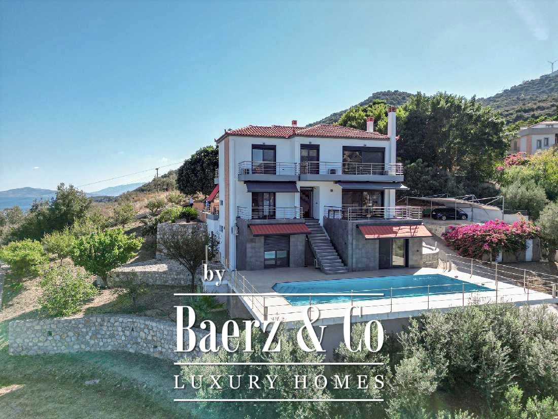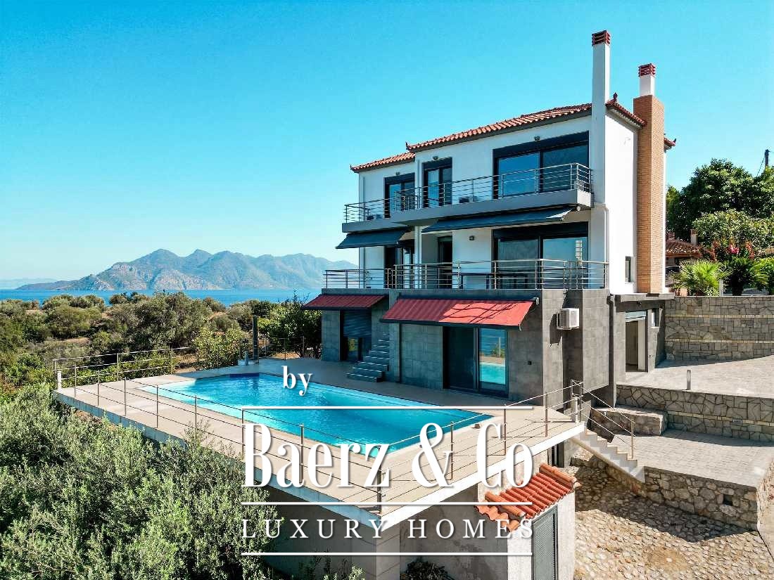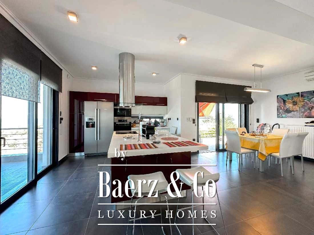 An excellent detached house is available for sale in a unique location, just 300 meters from the sea. The property is built to high quality standards, offering comfort, luxury and modern conveniences, while it has openings at all points, ensuring brightness and a sense of freedom. The residence includes a self-contained guest house, ideal for hospitality with complete privacy. The main part of the detached house has a spacious living room and kitchen area in a single layout, offering a warm environment for daily activities and moments of relaxation. On the
