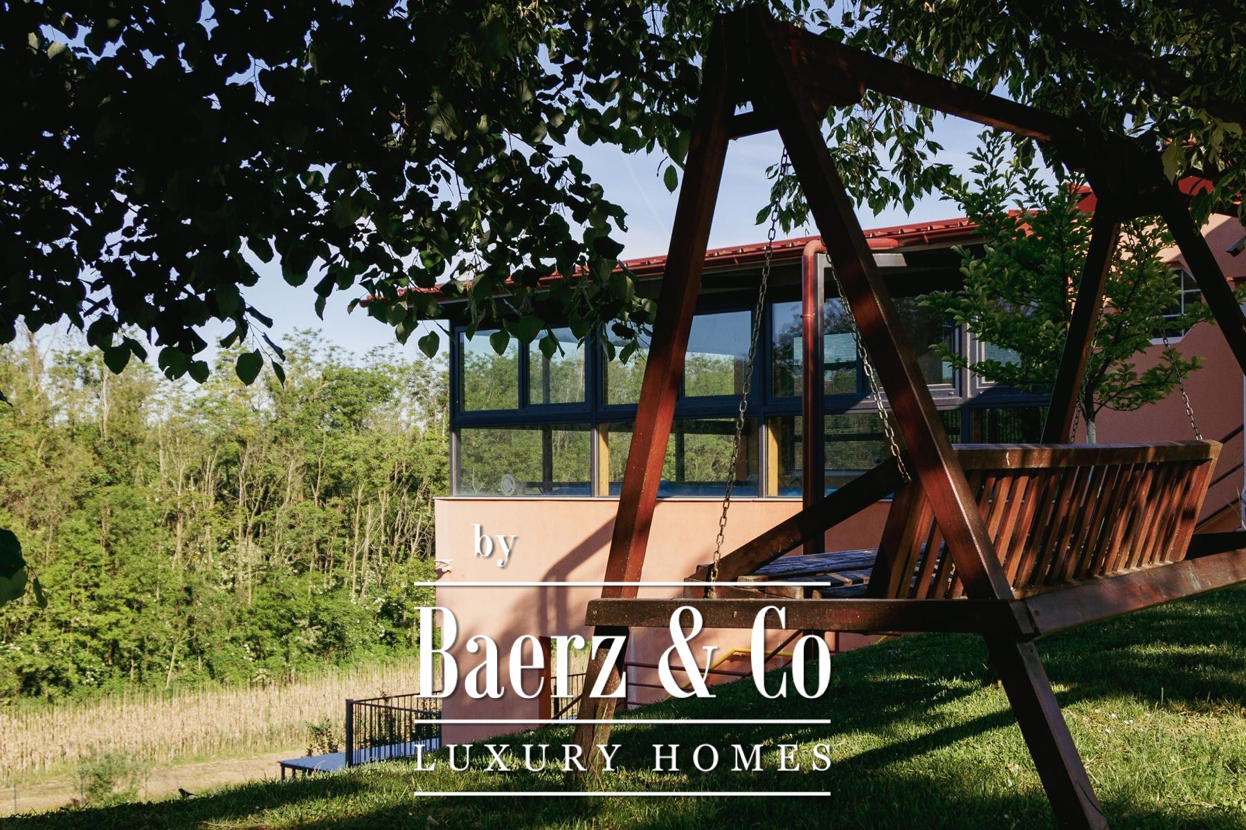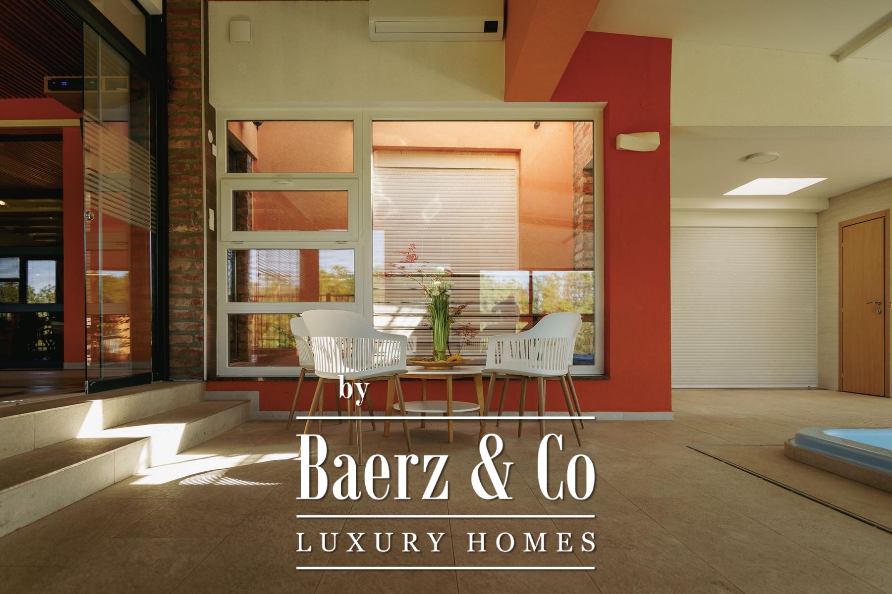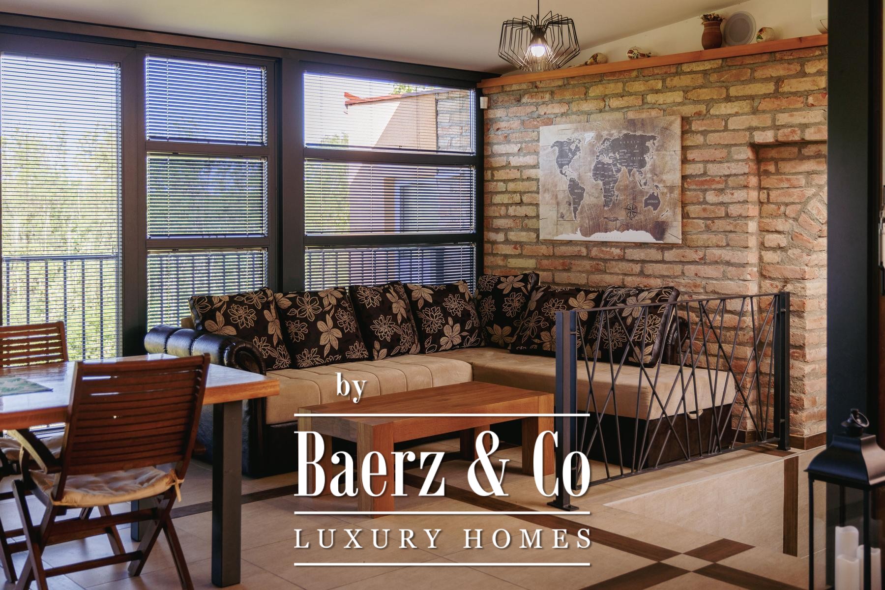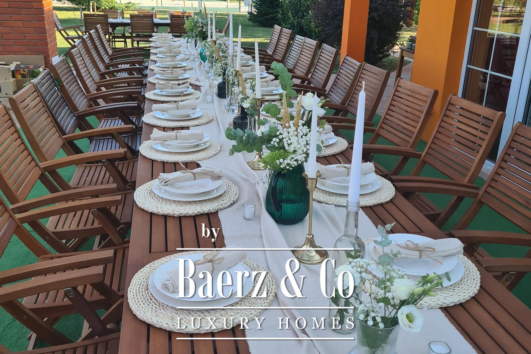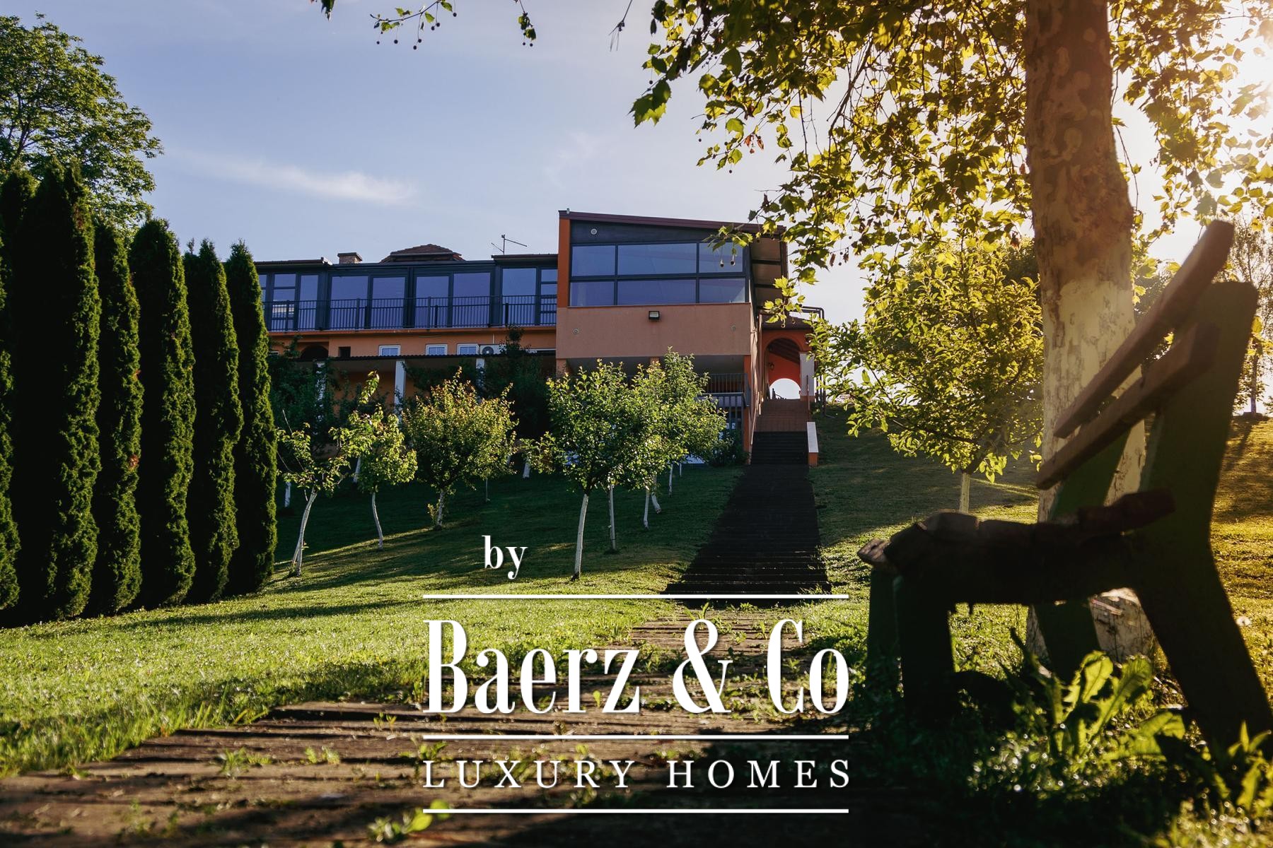The attic provides a separate living zone with its own lounge, two bedrooms, a bathroom, and a spacious terrace offering a panoramic view across the Slavonian plain. Throughout the villa, robust infrastructure supports comfort and autonomy, including combi gas boiler central heating, electric underfloor zones, multiple air conditioning units, and solar panels fulfilling most electricity needs.