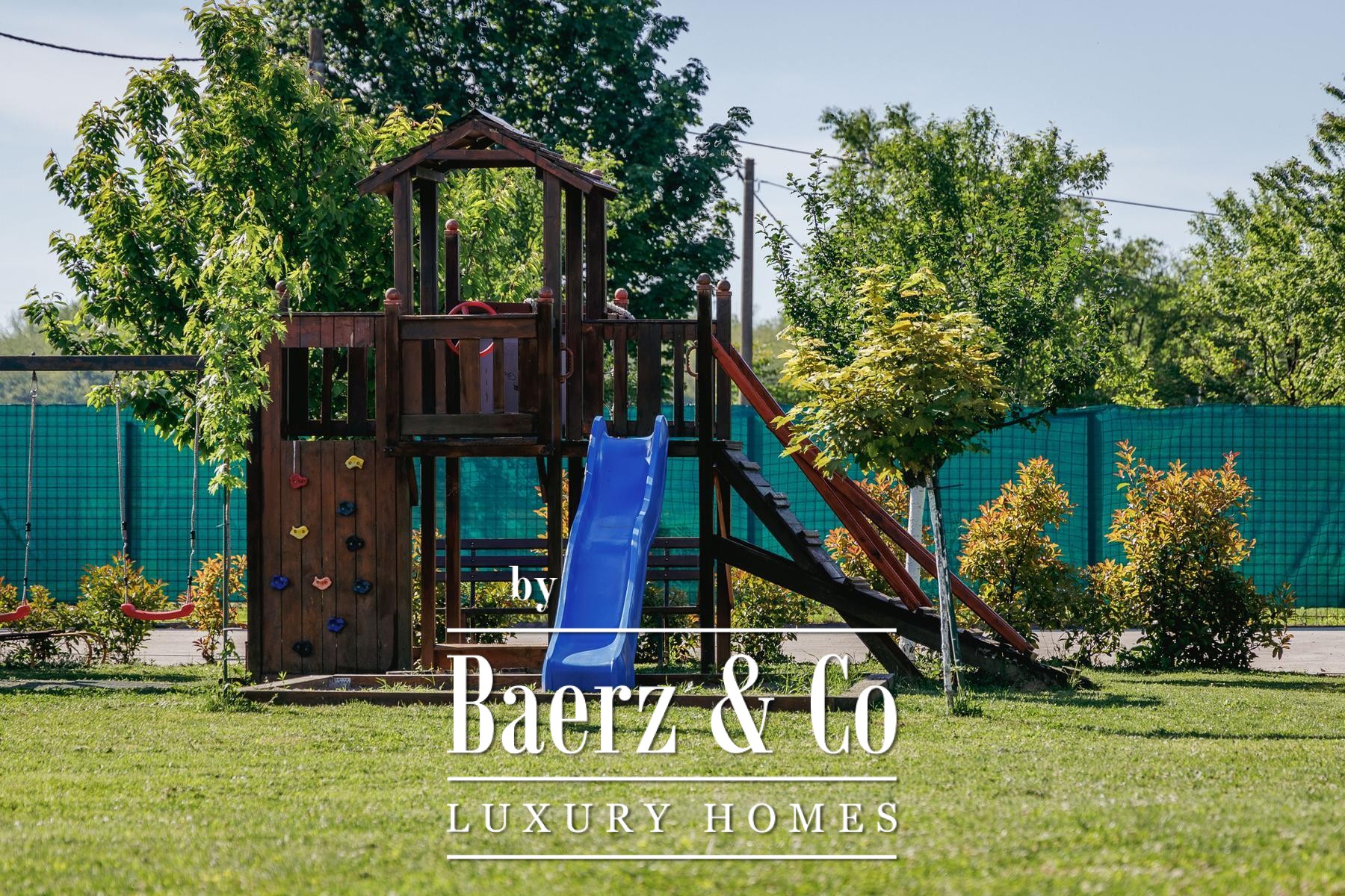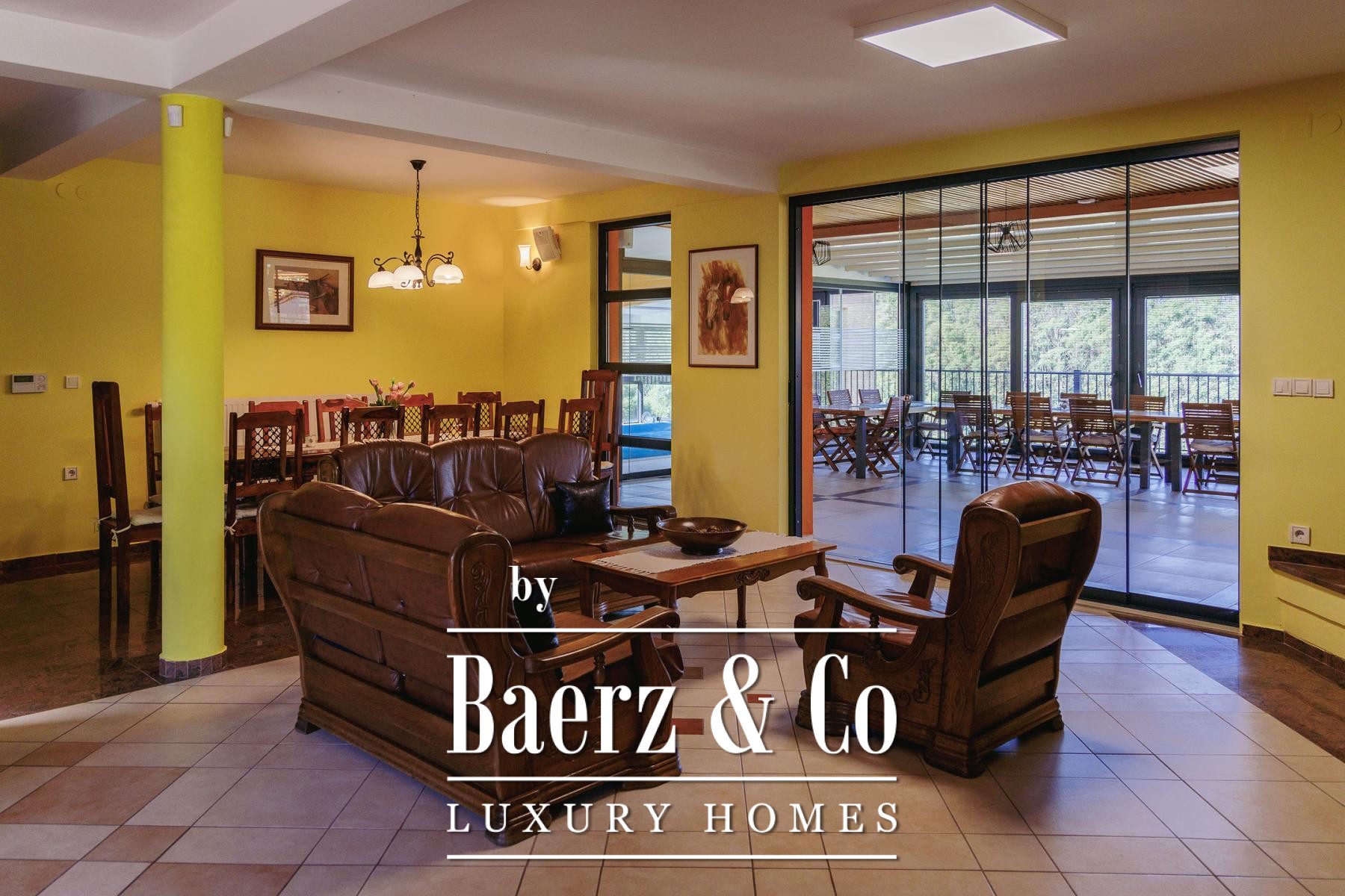 On the grounds, a basketball court, fish pond, three gazebos, an orchard, and a tool shed illustrate a lifestyle shaped by both recreation and contemplation. Eleven outdoor parking spaces add further practicality. For those seeking a villa Nuštar experience defined by privacy, expansiveness, and a sense of rootedness, this property delivers a rare combination of scale and serenity.