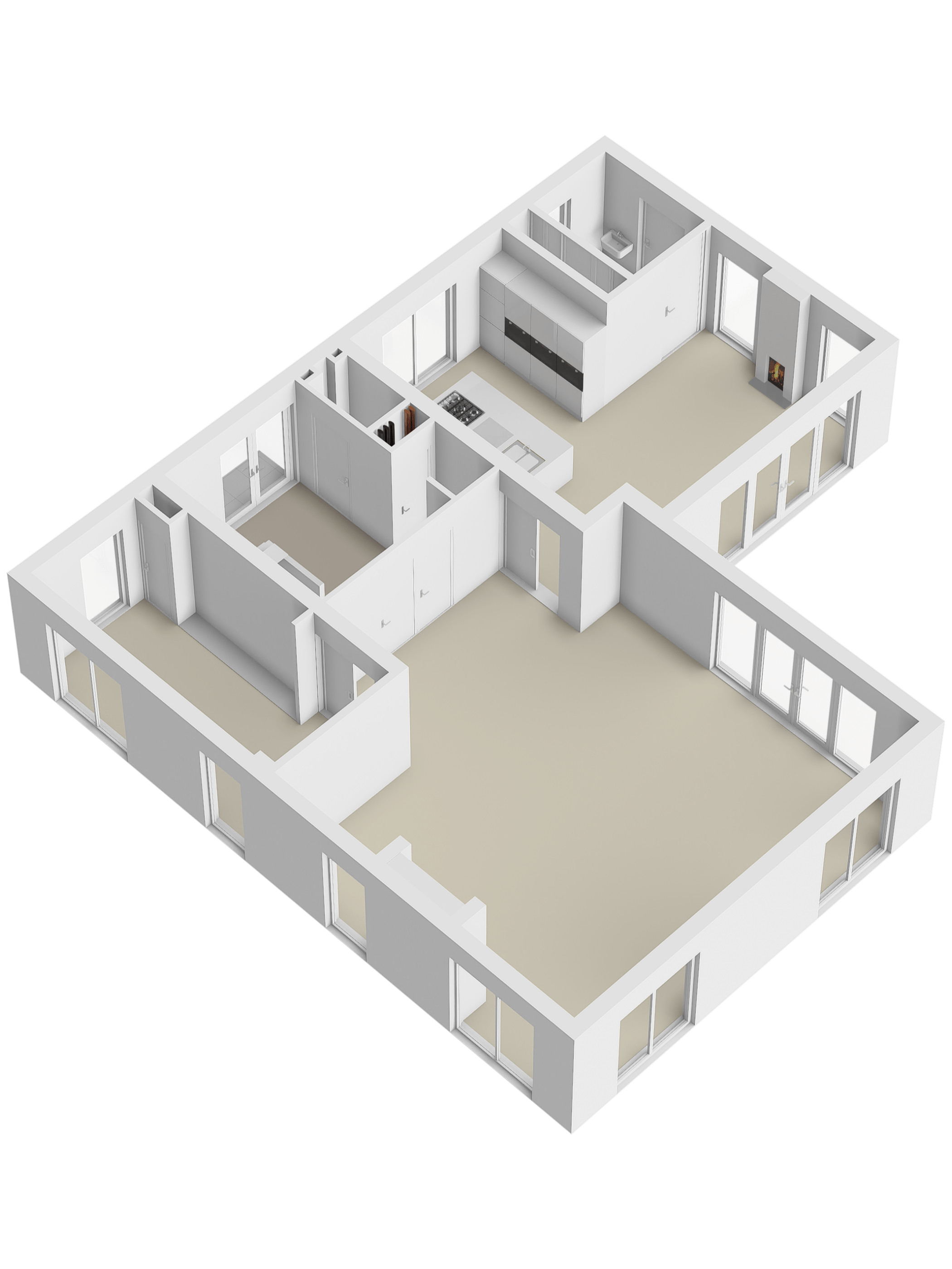 The landing with double entrance doors gives access to the spacious hall in which the stairwell and loft are centrally located. In the hall you will also find the guest toilet, a spacious wardrobe and the meter cupboard. The stairs that lead to the basement and the landing stairs to the upper floor are also located here. The double glass doors offer a view into the modern living room.