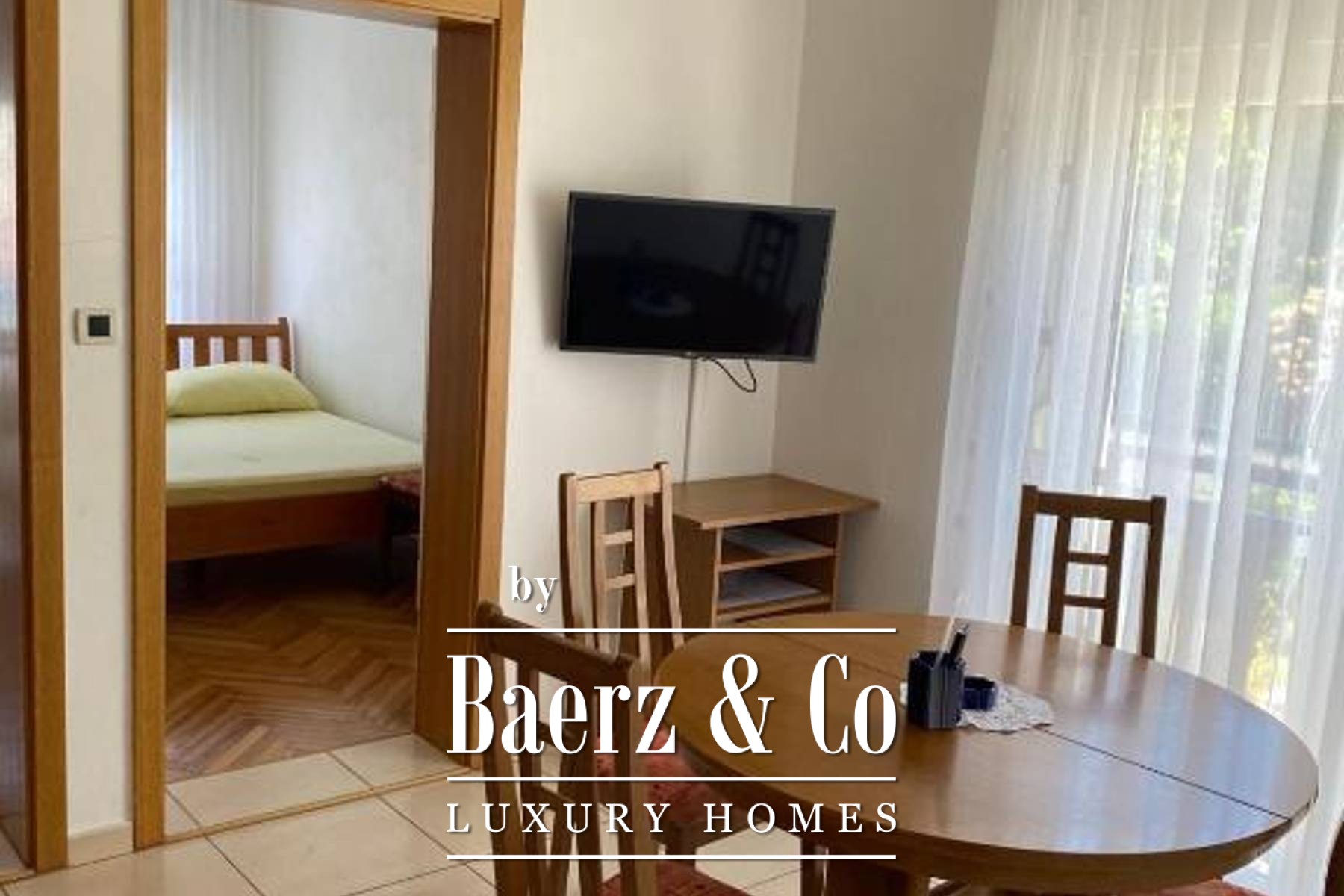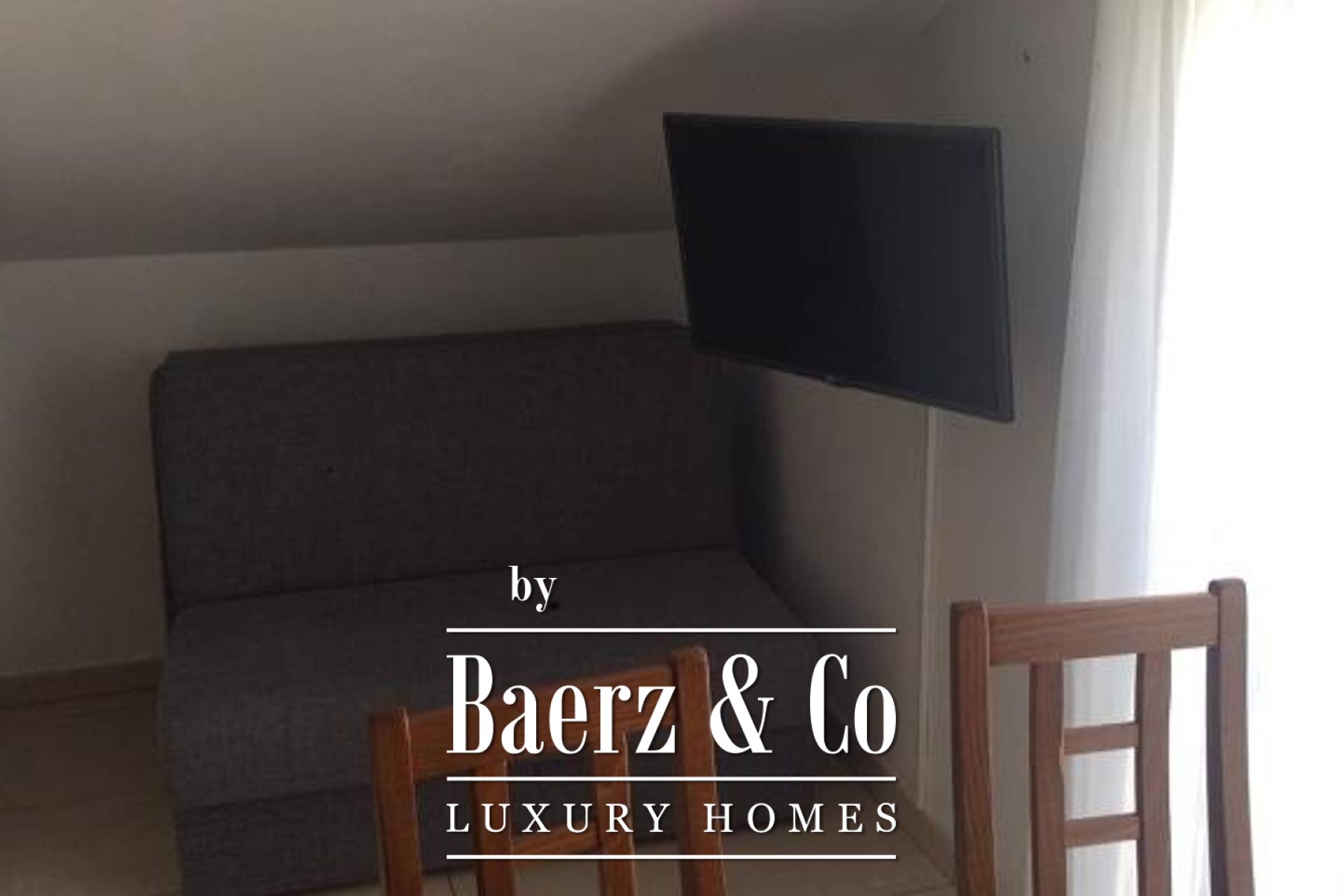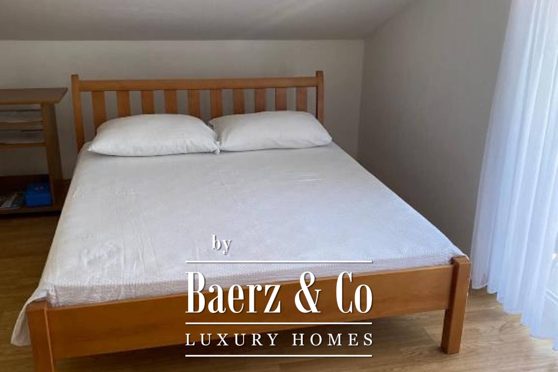 Apartment house with seven separate units overlooking the sea. It consists of a basement, ground floor, first floor and attic. On the ground floor and the first floor there are four equally equipped apartments, each with two bedrooms, and each apartment, with an extra bed, can accommodate 5 people. In the basement there is a one-room apartment equipped and furnished. In the attic there are two smaller, one-room apartments, each of which can accommodate 3 people. In front of the house is a heated swimming pool of 32 m2, around which deckchairs are placed. There is a covered area in front of the pool, where there are tables and chairs for outdoor activities. In front of the lower part of the house is a large terrace, where there are also deckchairs for sunbathing. In one part of the plot there are two barbecues and large tables for socializing outside the apartment. Stone slabs have been placed