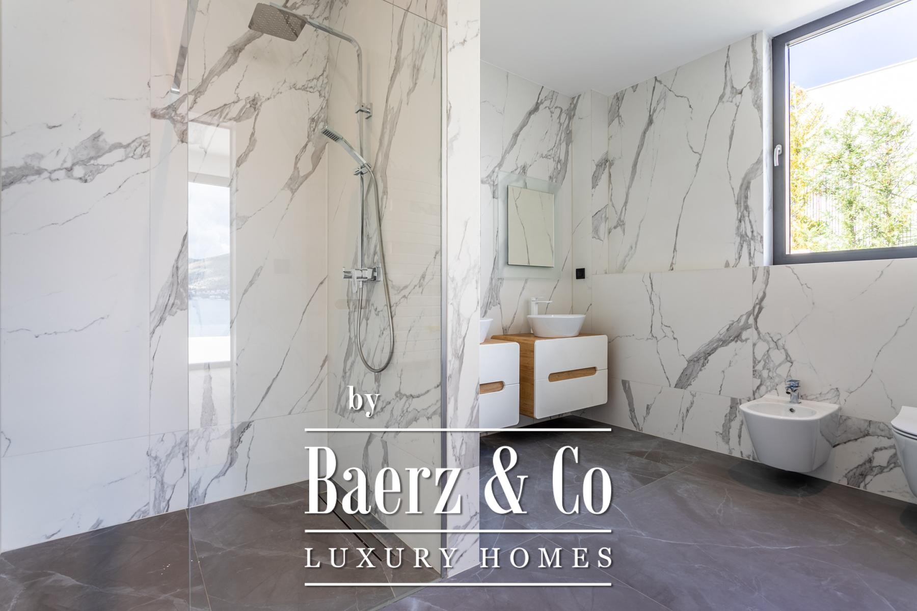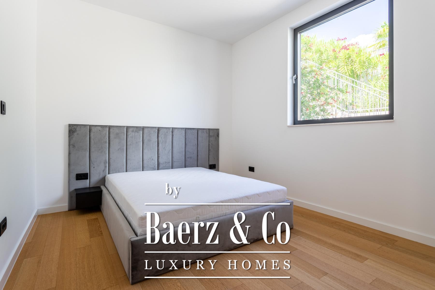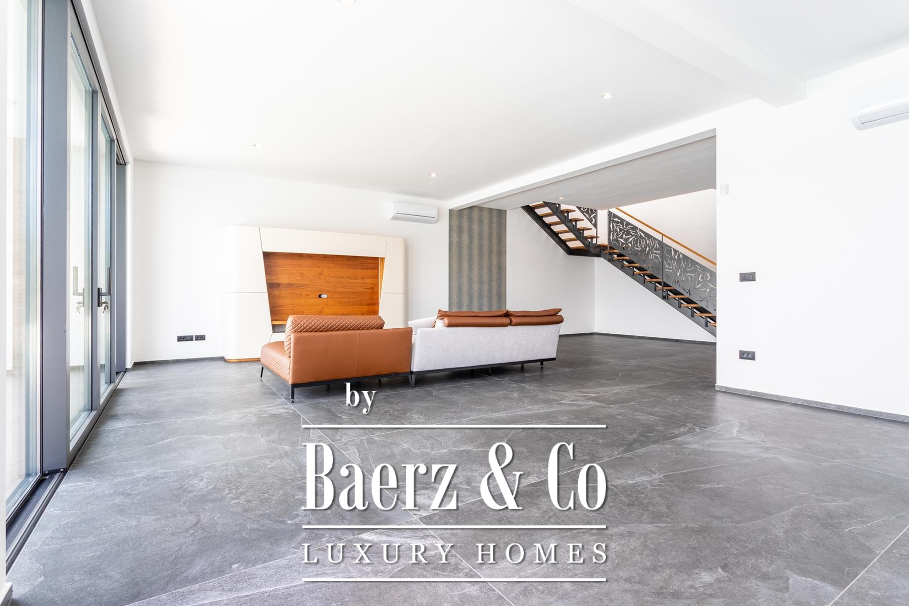 Three-story villa with a living area of 349 m2, located on the first row to the sea. It consists of a large living room, a fully equipped kitchen, five bedrooms, the same number of furnished bathrooms, and a garage big enough for two cars. The terrace on the ground floor is equipped with an illuminated heated pool, while the terrace on the second floor has a jacuzzi. floors are connected by an elevator