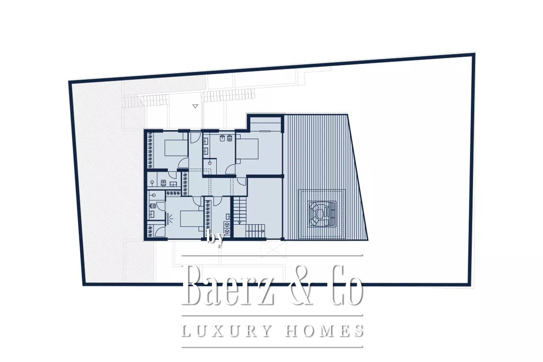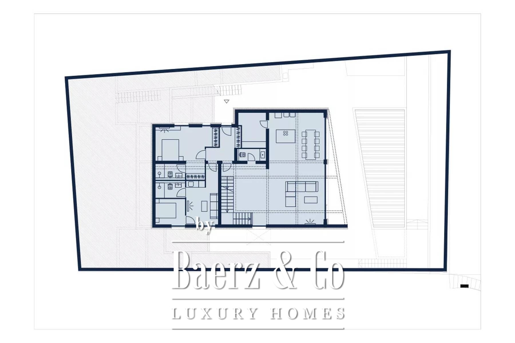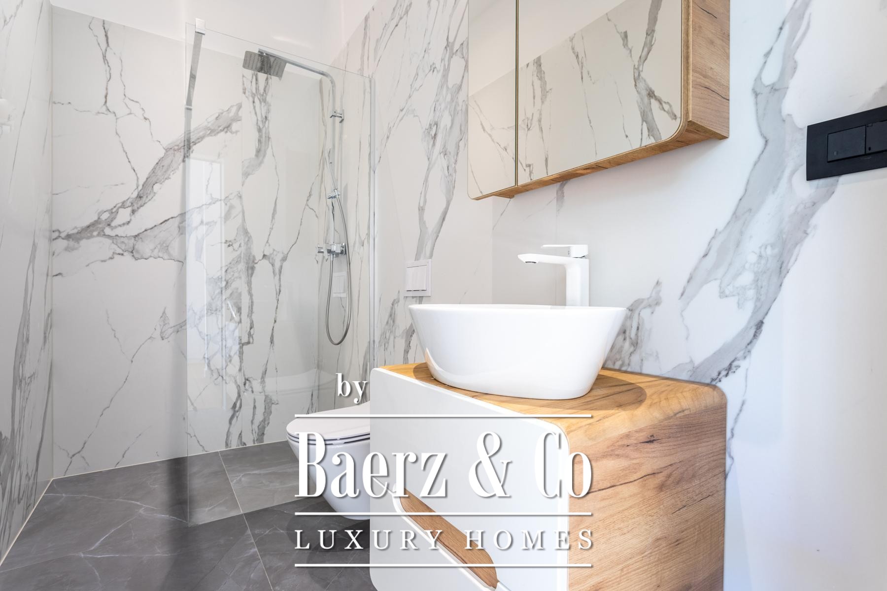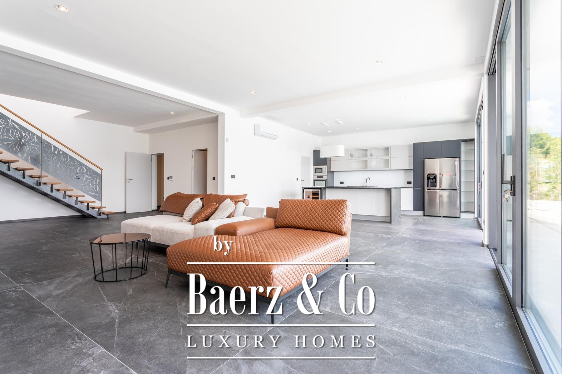 Three-story villa with a living area of 349 m2, located on the first row to the sea. It consists of a large living room, a fully equipped kitchen, five bedrooms, the same number of furnished bathrooms, and a garage big enough for two cars. The terrace on the ground floor is equipped with an illuminated heated pool, while the terrace on the second floor has a jacuzzi. floors are connected by an elevator