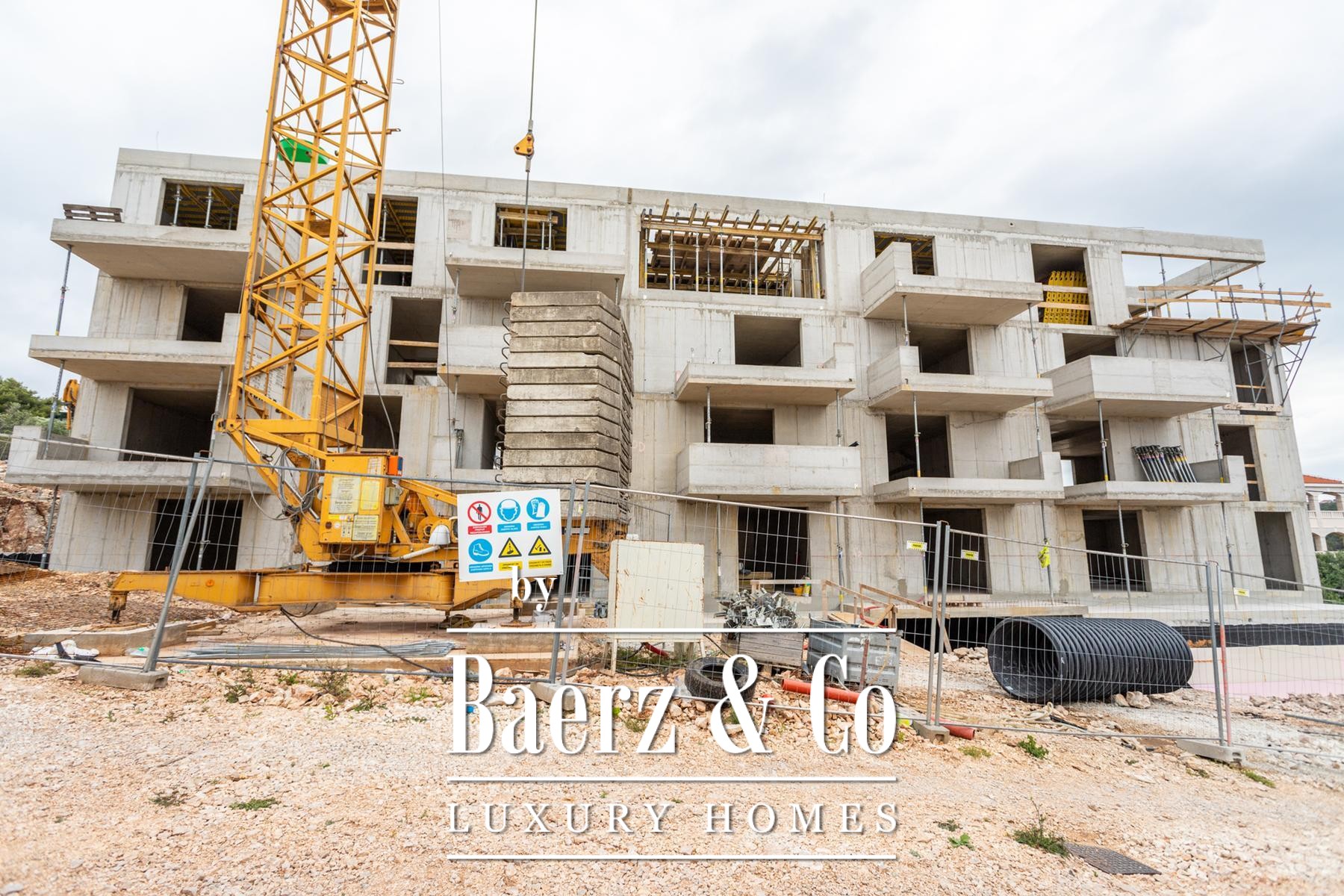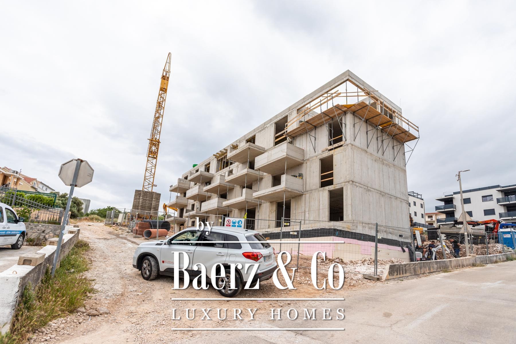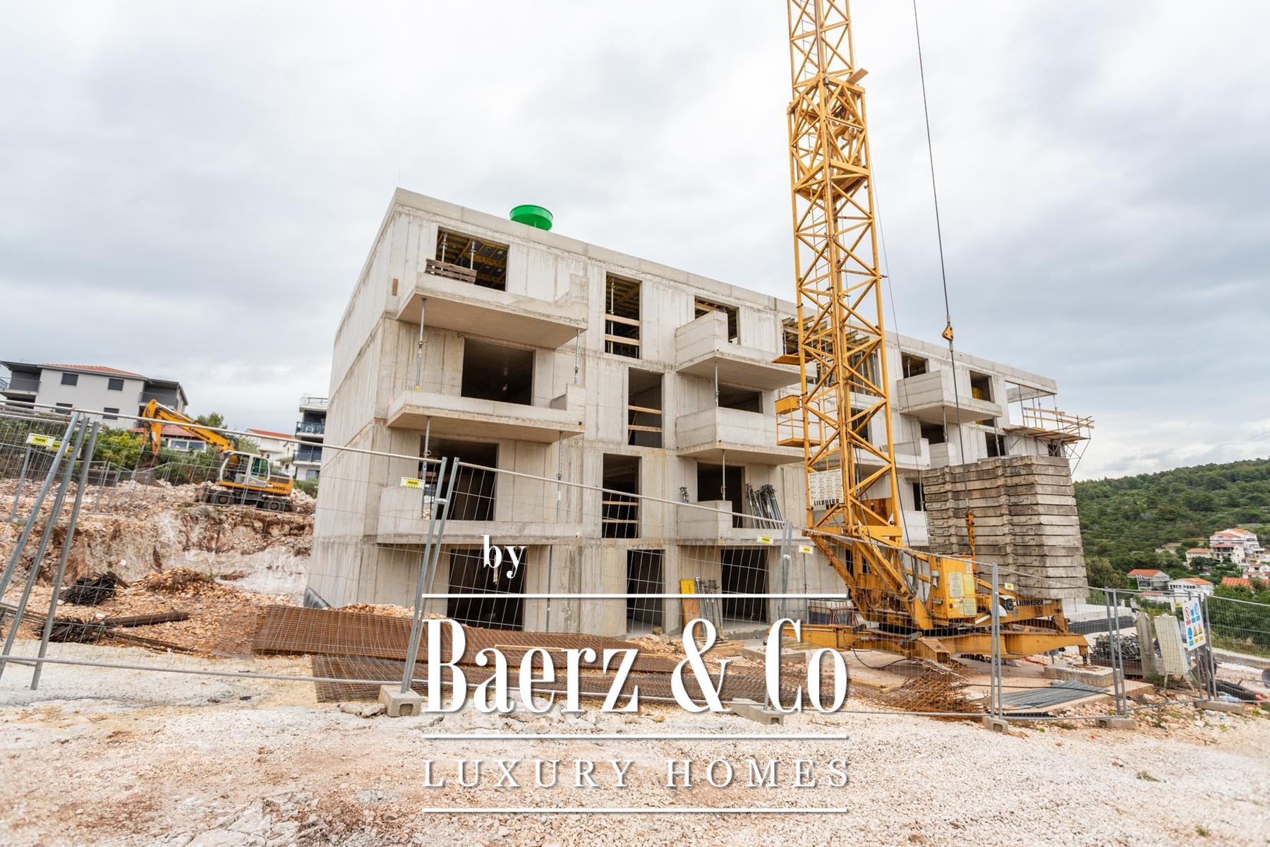 Apartment Okrug Croatia presents a rare synthesis of elevation, privacy, and panoramic views. Located just 150 meters from the Adriatic on the sunlit southern side of Čiovo, this penthouse occupies a prime position in a modern building comprising seventeen residences. South orientation imbues every space with coastal light, allowing uninterrupted vistas across the sea from expansive balconies and terraces totalling 69.55 m².