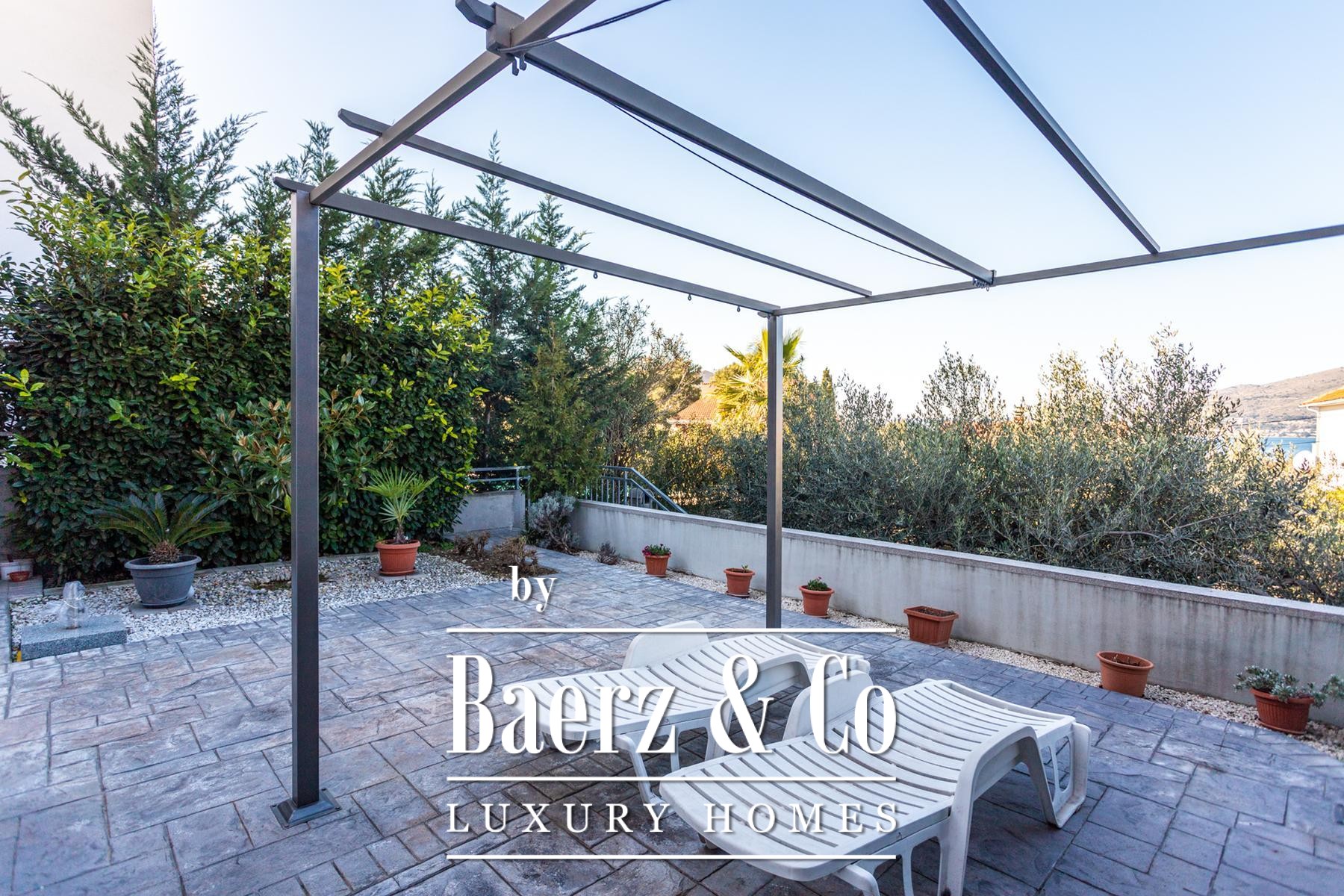 Townhouse Okrug stands a few steps from the Adriatic in Croatia, set amid a plot of 879 m². This property spans 282 m², organized across two floors designed for both functionality and comfort. The ground floor offers two distinct two-bedroom apartments of 59 m² each, each featuring private terraces, open-plan kitchen and living zones, and a dedicated bathroom. Both have a proven history of consistent tourist rental returns, quietly affirming their sought-after position.