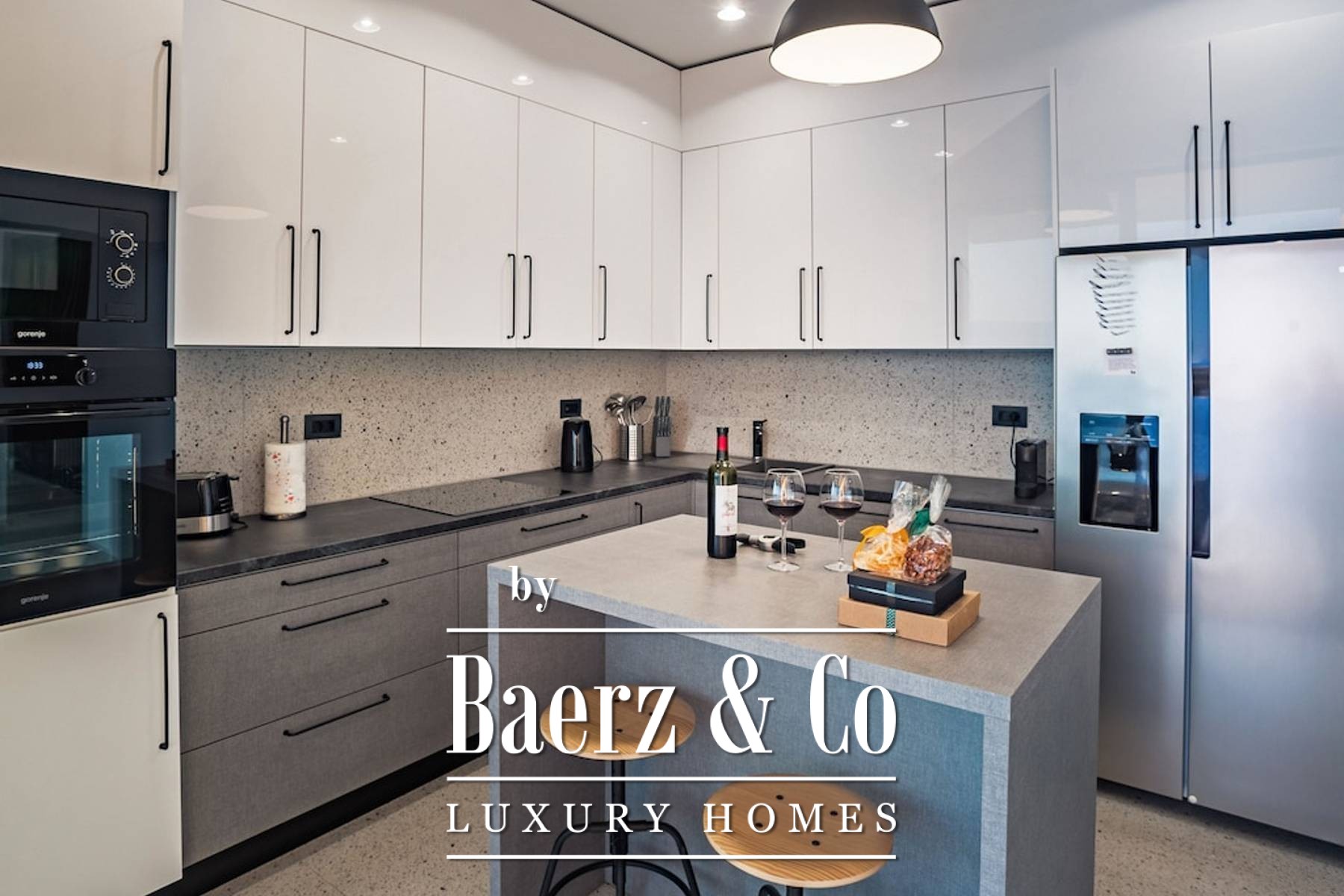 In the very heart of Dalmatia, in an oasis of peace not far from Omiš, there is this villa with facilities that will satisfy the needs of even the most demanding client. With guaranteed privacy and a breathtaking panoramic view of the sea and islands, this villa has it all. The villa extends over three floors with a living area of 330 m2. It consists of a ground floor where there is a modern kitchen, a living room and a wine bar. Each room has access to a spacious terrace with a heated swimming pool and sun deck. The staircase leads to the first floor where there are four bedrooms with private bathrooms, work and storage space. Also, in the basement there is a wellness
