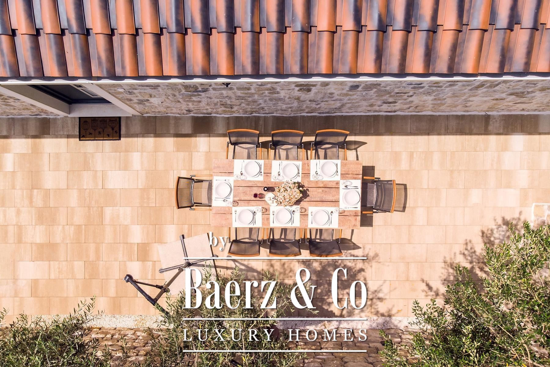 An additional 19 m² auxiliary building sits discreetly on the grounds, surrounded by 49 mature olive trees. A fireplace anchors the main living spaces, and a dedicated children’s playroom is included. The townhouse is also linked by a footpath to the center of Omiš, just 700 metres away, merging seclusion with easy village access. There is potential for expansion, with the possibility of establishing an additional building plot. This townhouse Omis is defined by panoramic perspectives, thoughtful layout, and the enduring tranquility of its landscape.