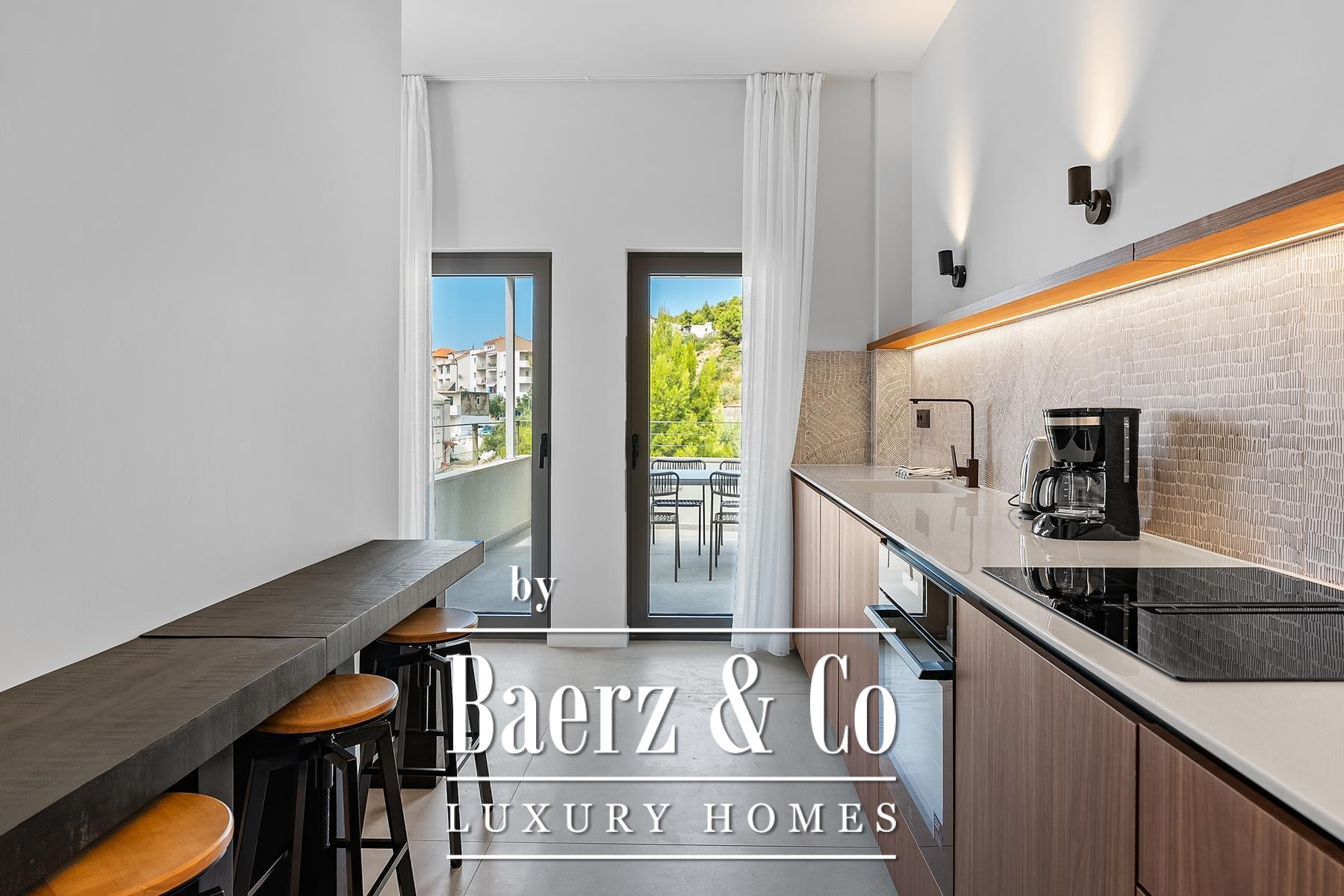 Set over a basement, ground floor and three upper levels, the luxury house Omiš features a rare composition of four independent apartments. Three apartments offer three bedrooms each while a fourth features two bedrooms, contributing to a total of 11 bedrooms and 11 bathrooms. Expansive terraces extend the living experience outdoors and upper floors reveal calming sea views. Each residence is meticulously appointed and classified with four stars, and the interiors are defined by contemporary comfort and intentional division of space.