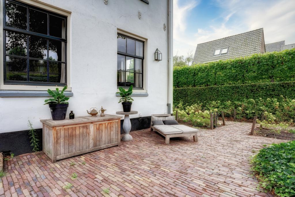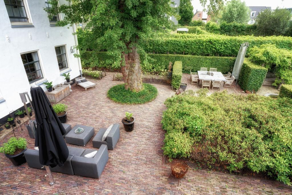 The orphanage is a detached classic mansion. Instantly recognizable by the high gutter line. Inside, the high ceilings immediately come into view. Around the mansion lies the garden to the hand of Marcel Woltering. Tight beech hedge lines, forms the base around some garden rooms. A few old trees, give character to the design. You will also find a wooden deck for a boat and the carport with double barn/garage. Several cars you can park with ease, completely out of sight. The smart garden design certainly takes into account the privacy aspect. The long driveway on the South side of the plot, is closed with an electrically operated wooden gate.