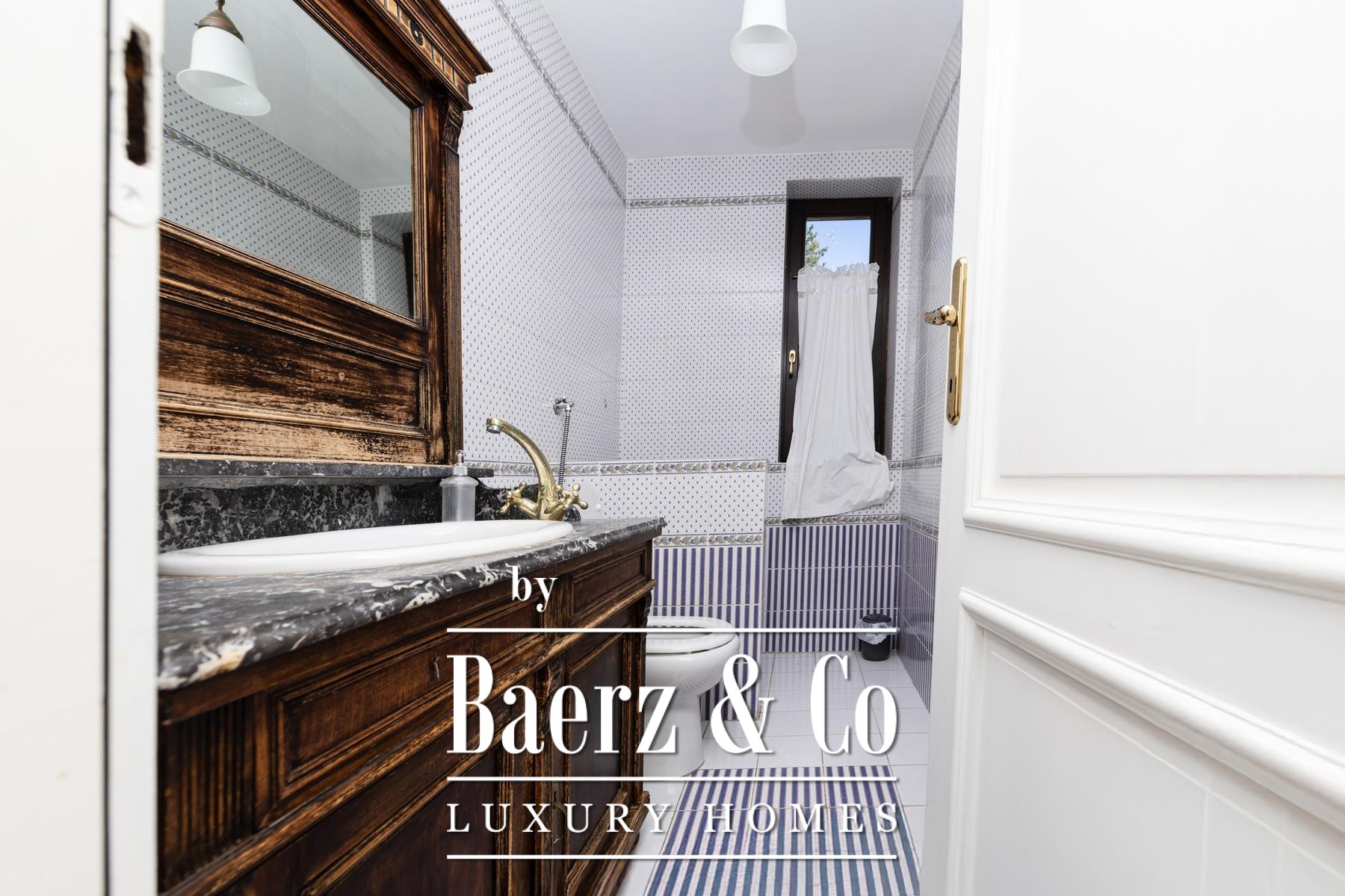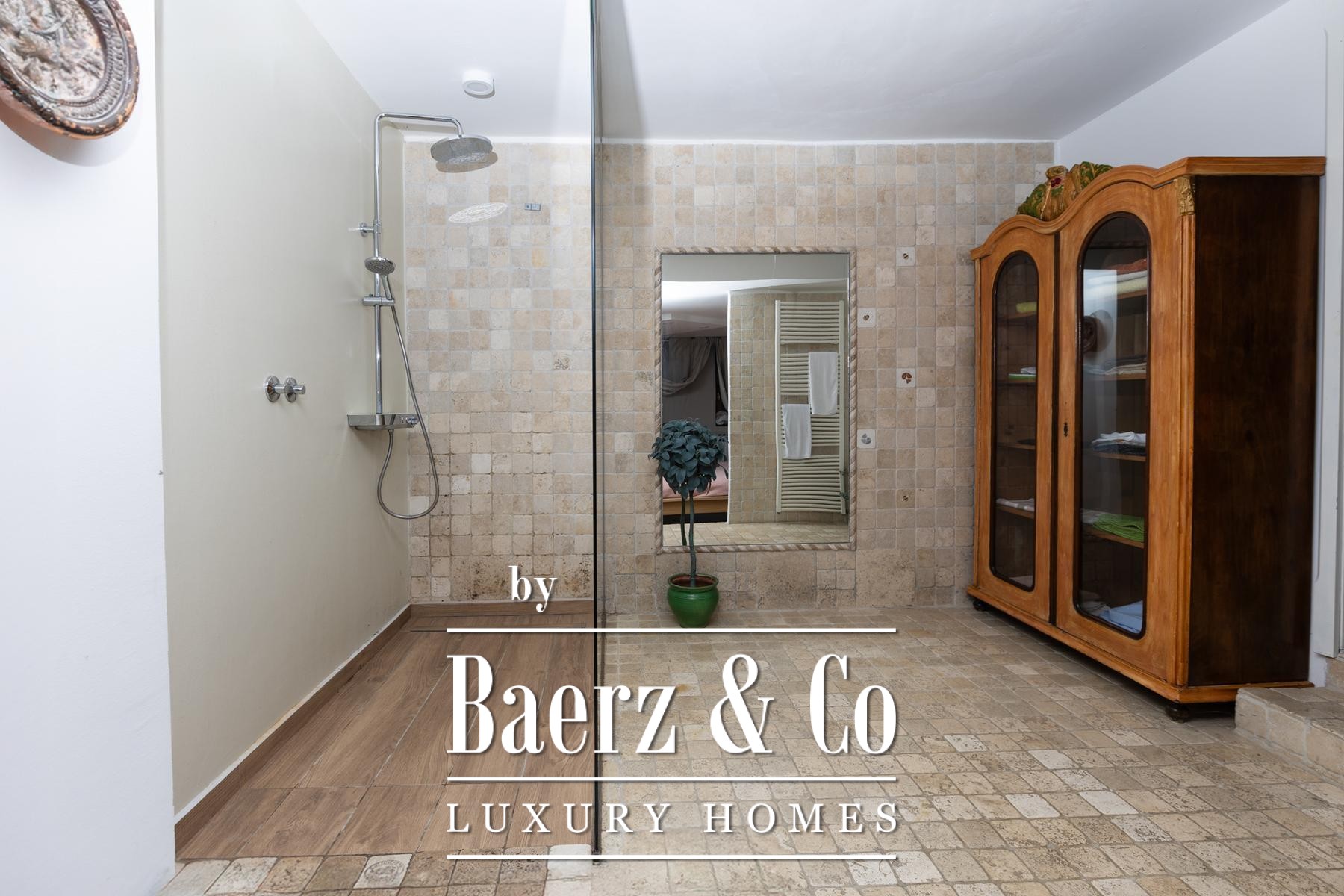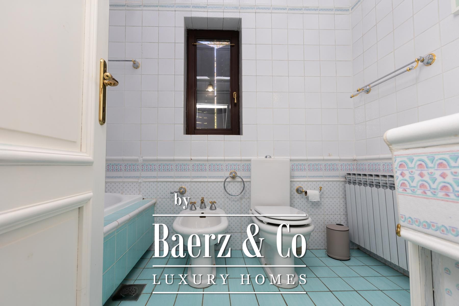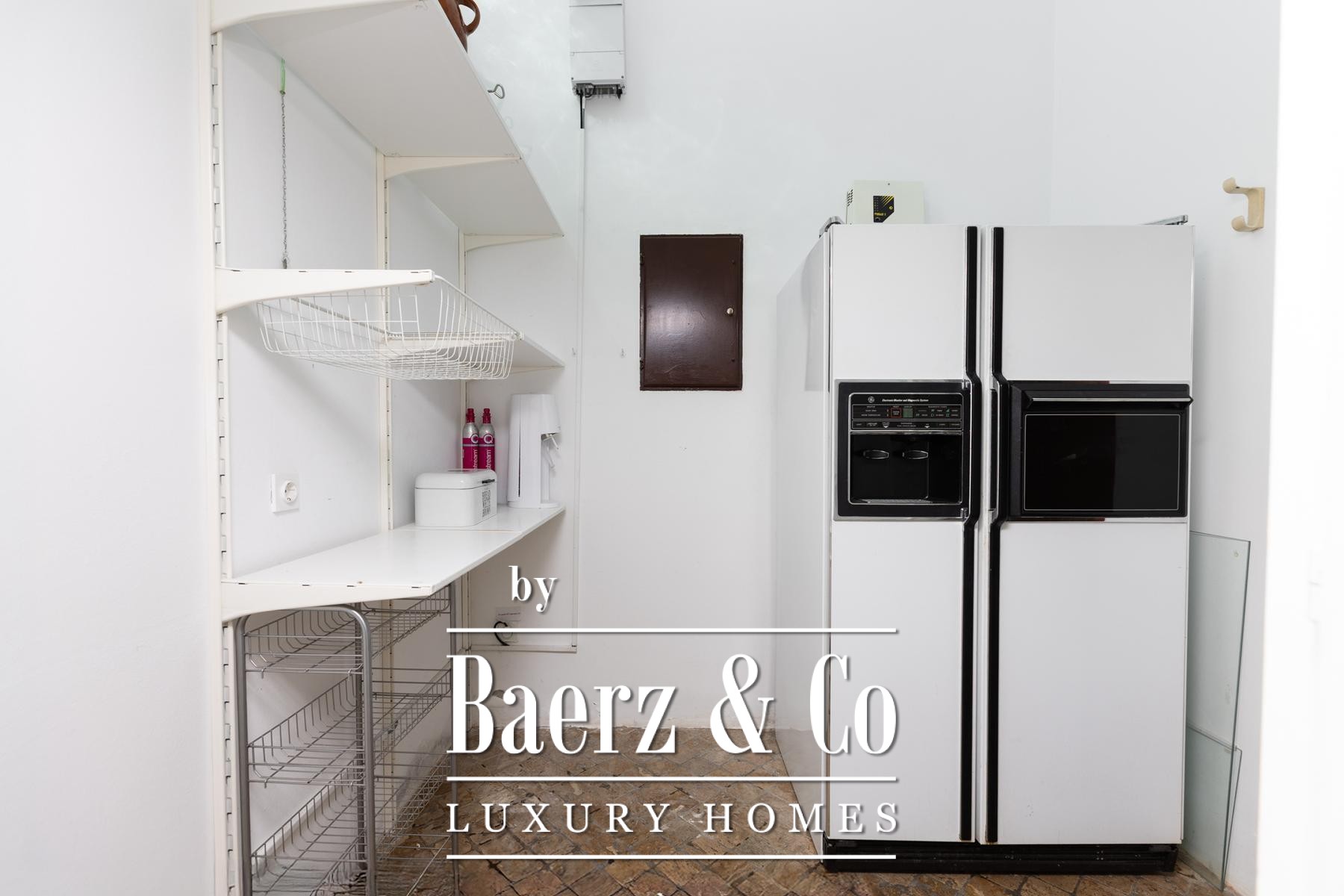 Comprising three independent residential units, the villa accommodates seven bedrooms and seven bathrooms, creating flexibility for family living or hosting guests. Two studio apartments, each with private terrace, kitchen, and ensuite, offer privacy and independence. The main house unfolds over two levels: the ground floor reveals a flowing open living and dining space, two master bedrooms with en-suite bathrooms and walk-in closets, as well as gallery, guest facilities, storage, and utility rooms. Upstairs, two further bedrooms share a large terrace overlooking the bay.