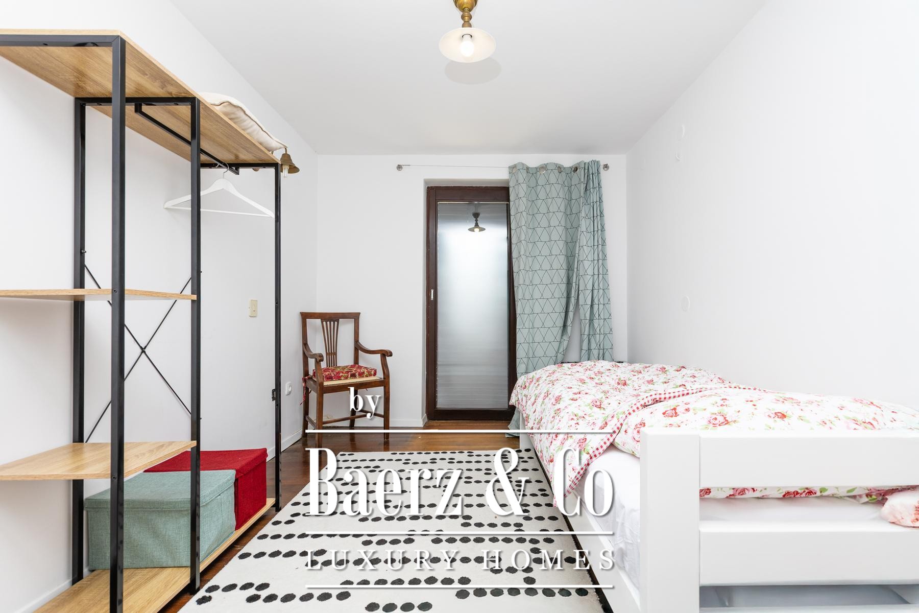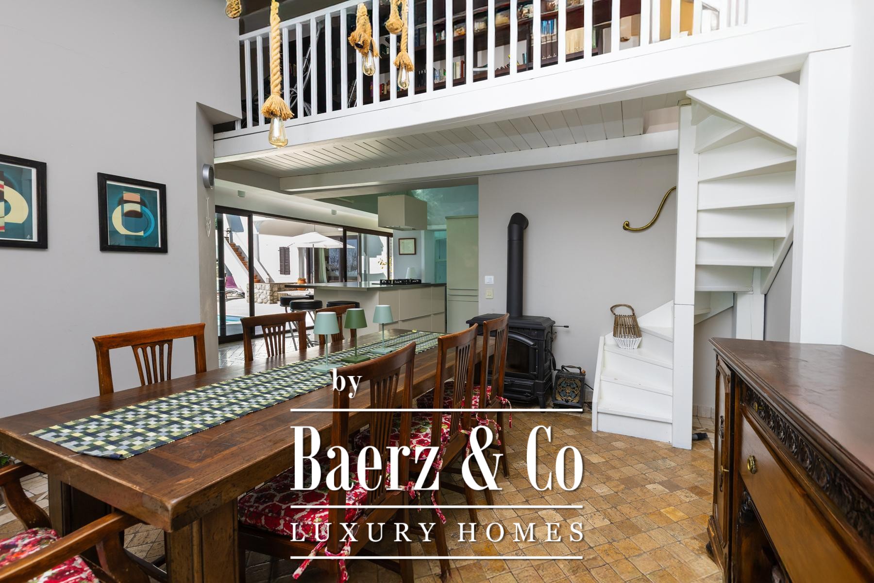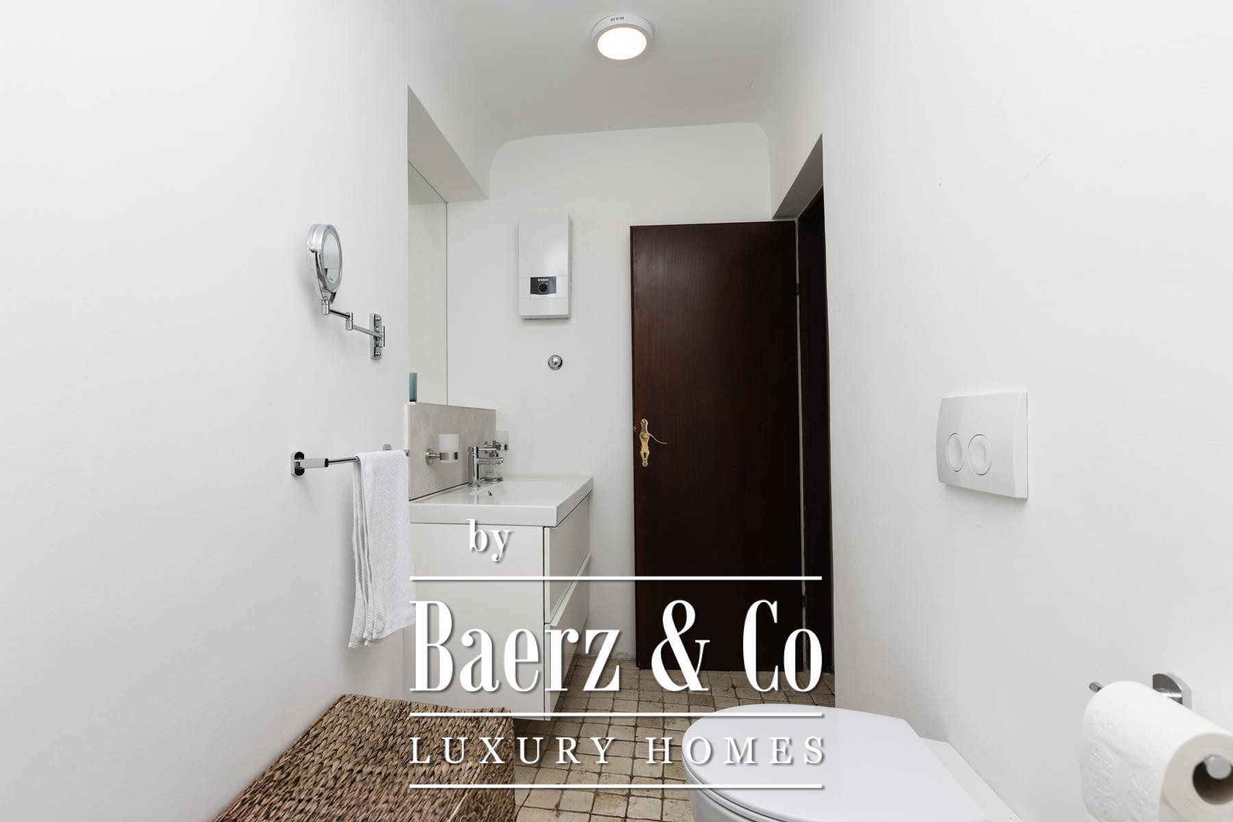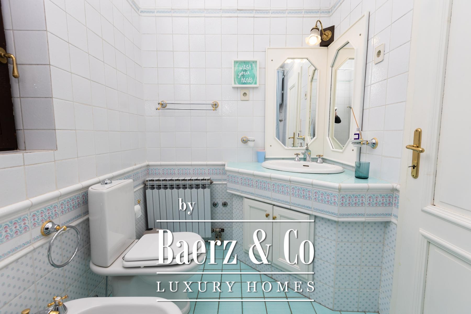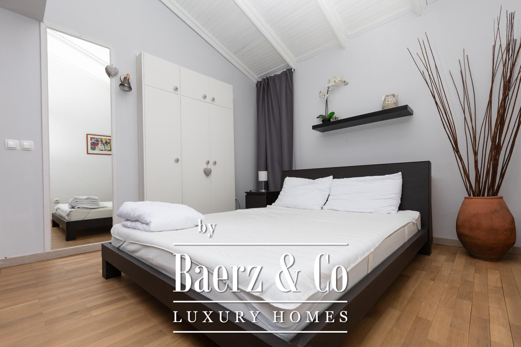 Comprising three independent residential units, the villa accommodates seven bedrooms and seven bathrooms, creating flexibility for family living or hosting guests. Two studio apartments, each with private terrace, kitchen, and ensuite, offer privacy and independence. The main house unfolds over two levels: the ground floor reveals a flowing open living and dining space, two master bedrooms with en-suite bathrooms and walk-in closets, as well as gallery, guest facilities, storage, and utility rooms. Upstairs, two further bedrooms share a large terrace overlooking the bay.