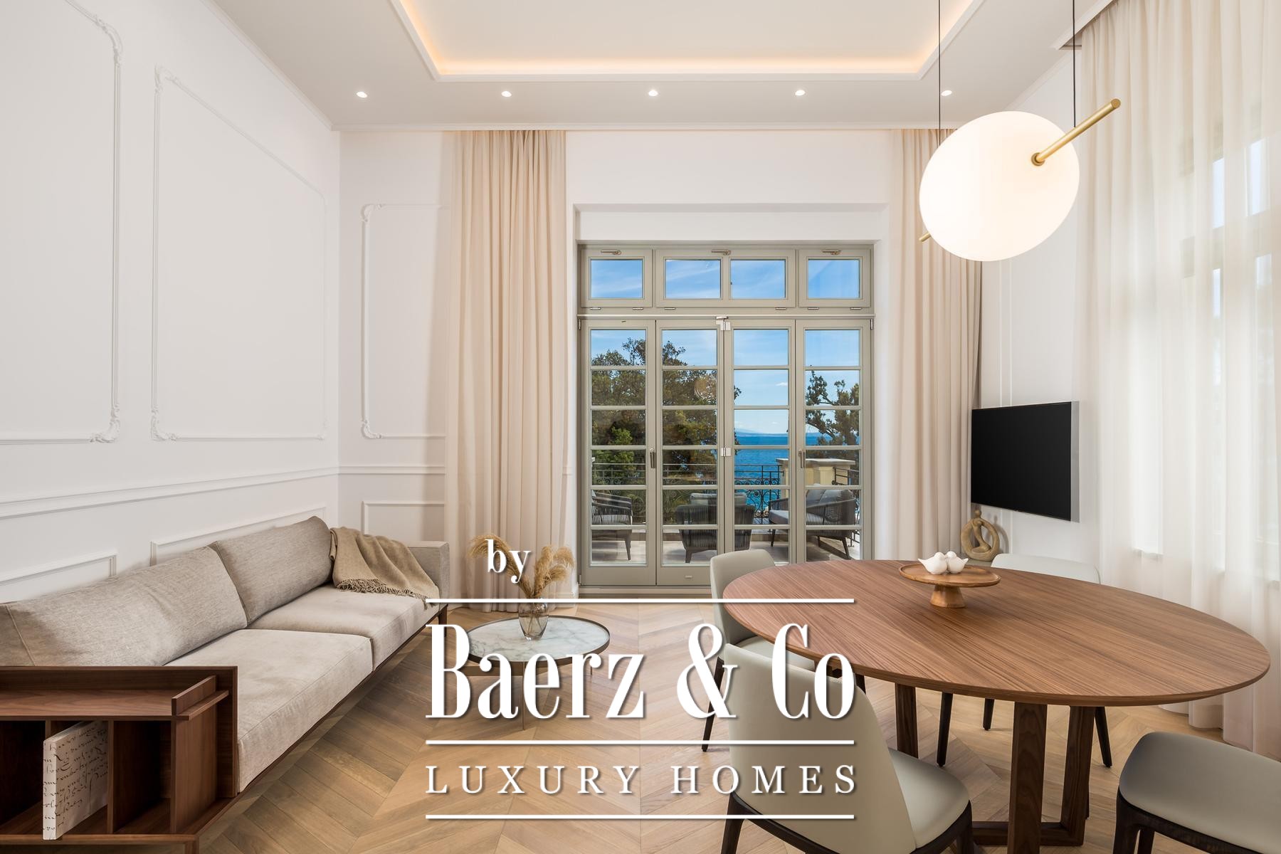 Two bedrooms and two bathrooms ensure privacy and adaptability, with a thoughtful layout that privileges comfort and function. High-quality floors underfoot, integrated air conditioning, and a full security system add layers of ease. The setting, first row to the sea, situates you steps from shoreline strolls, restaurants, boutiques, and public transport, merging privacy with centrality. This luxury apartment for sale in Opatija is created for those who appreciate elegance, functionality, and the enduring allure of a Mediterranean outlook.