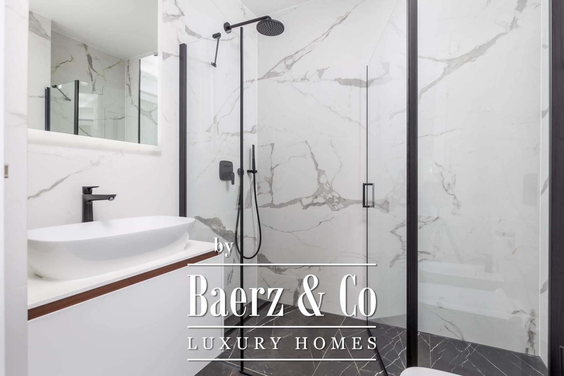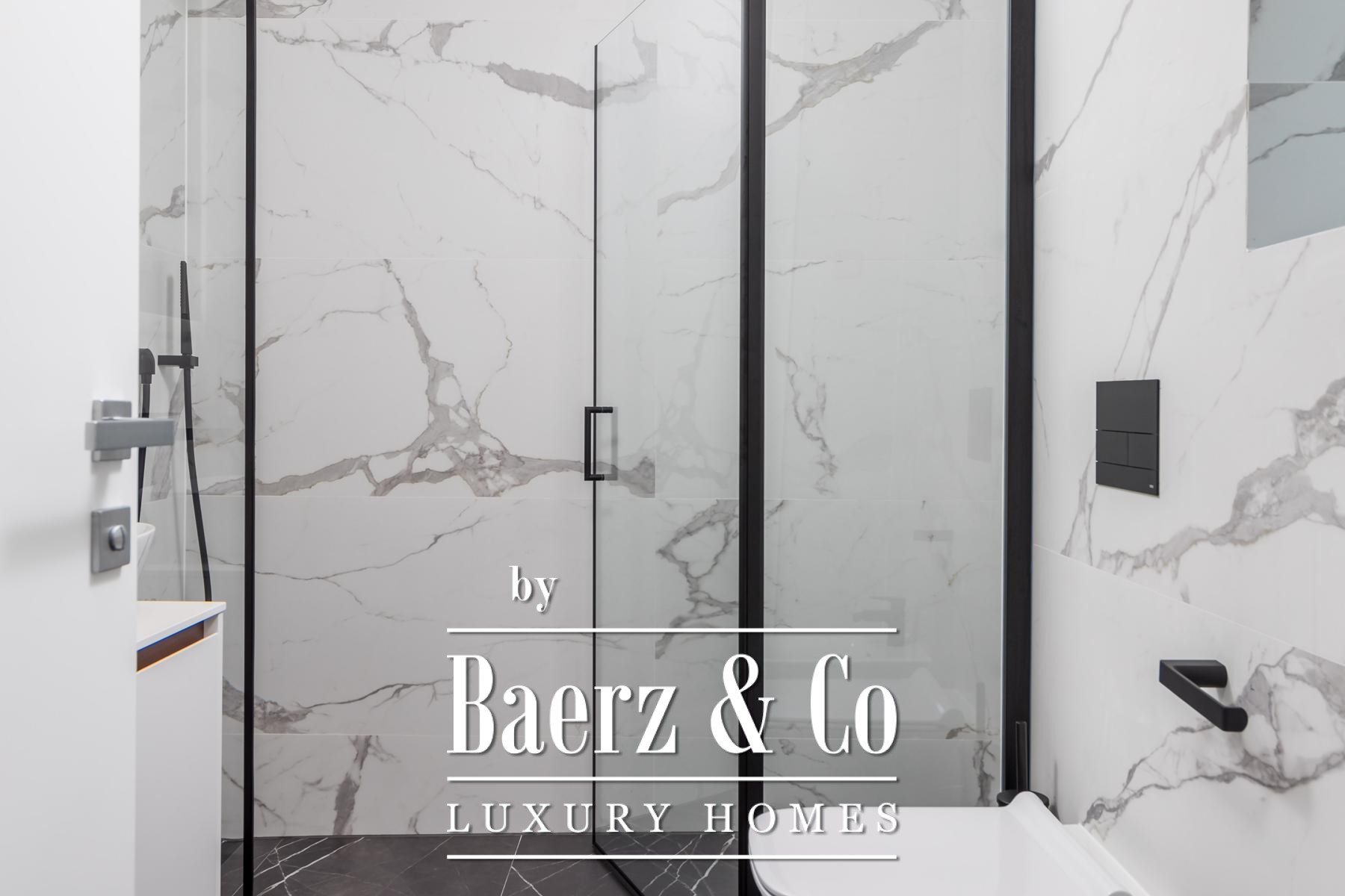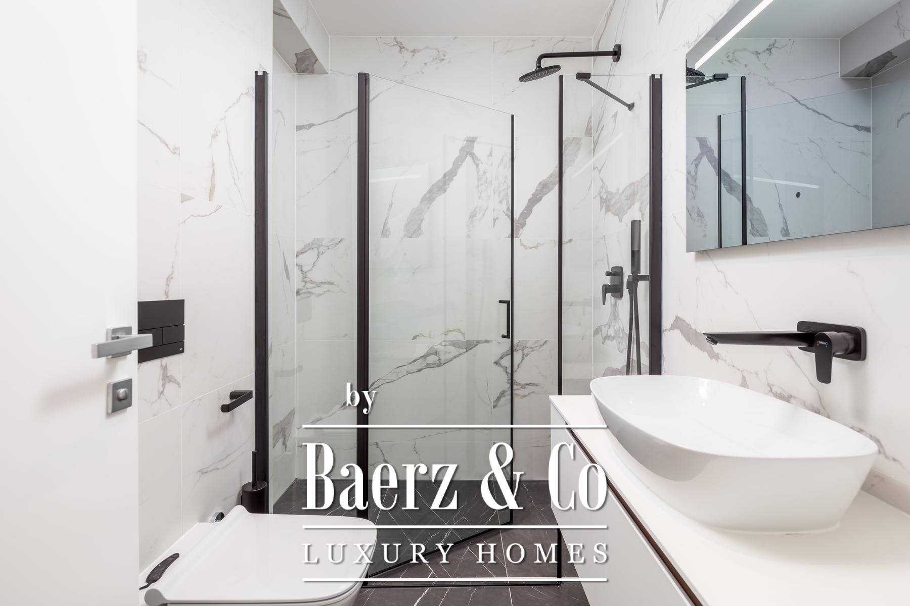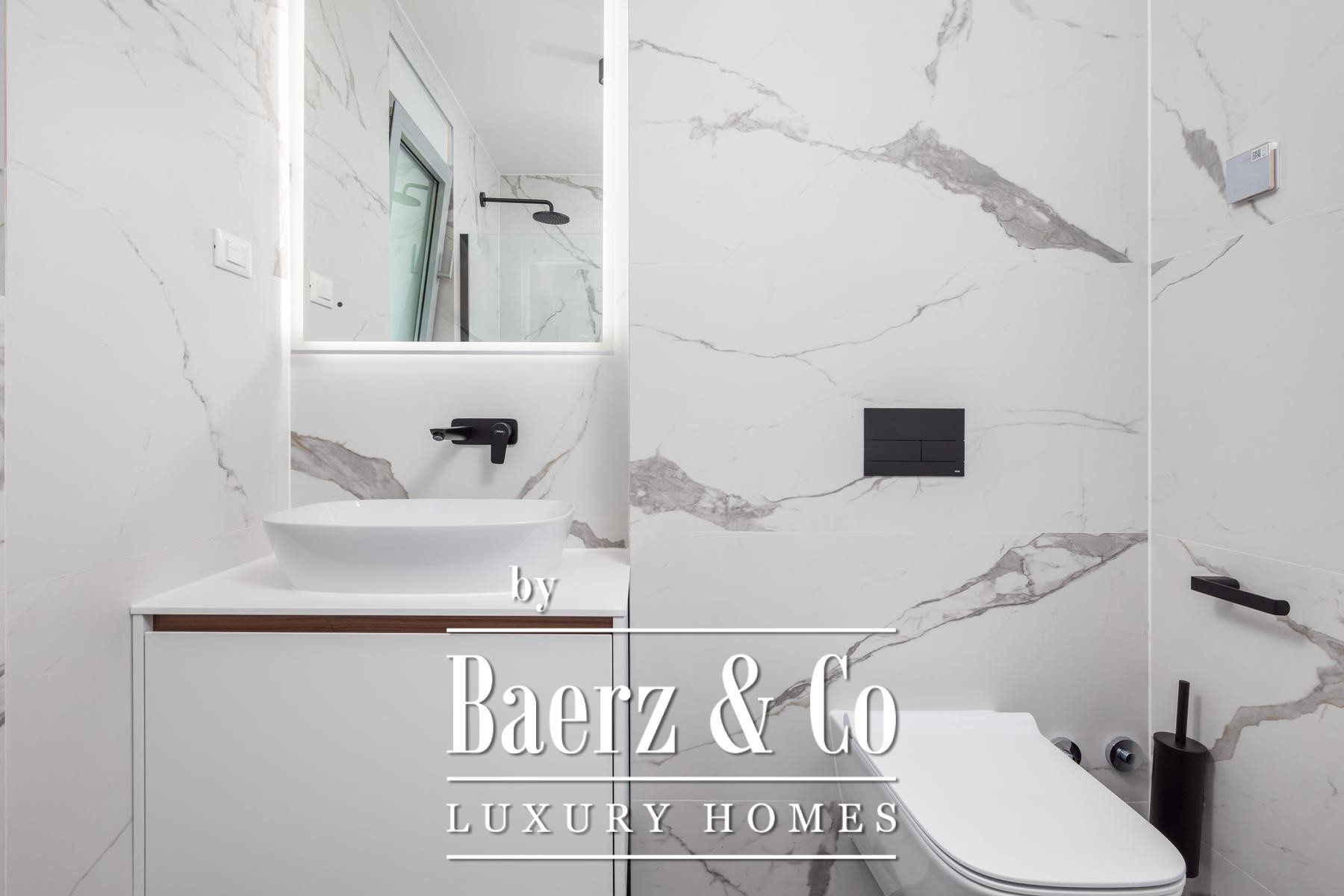 The architecture, marked by finely executed modern lines and the use of luxurious materials, reflects a new standard of refinement. Each detail from the Villeroy & Boch sanitary ware to the three-layer IZO glass in the brown aluminum carpentry speaks to quiet quality. Floor-to-ceiling heights of 260 cm, smart apartment management, and anti-burglary doors enhance security and comfort, while floor heating brings a subtle tactile warmth throughout.