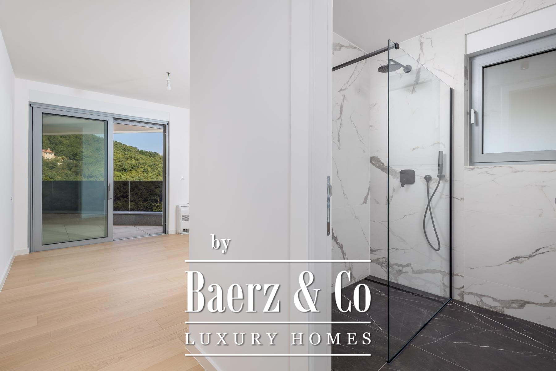 Shared amenities include a gym and wellness area, video surveillance, controlled access, mosquito nets, and technologically advanced touches such as LED lighting and OTIS silent elevators. Two outdoor and two covered parking spaces add practical ease. The apartment is nestled in a peaceful enclave, ensuring privacy, yet positioned for effortless access to central Opatija. This apartment Opatija stands as an invitation to live elegantly along the Adriatic coast.