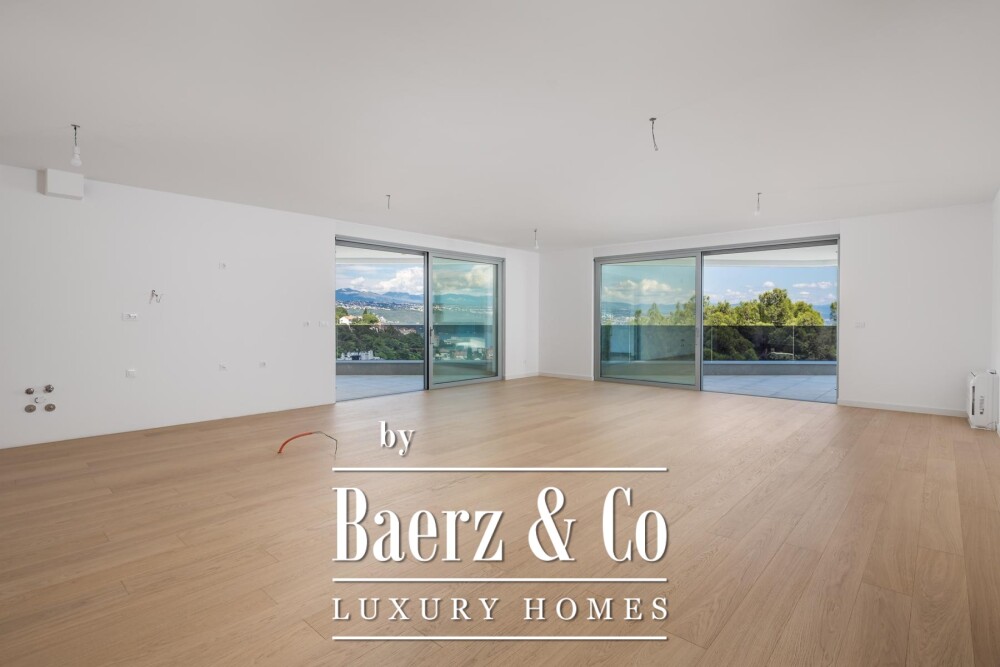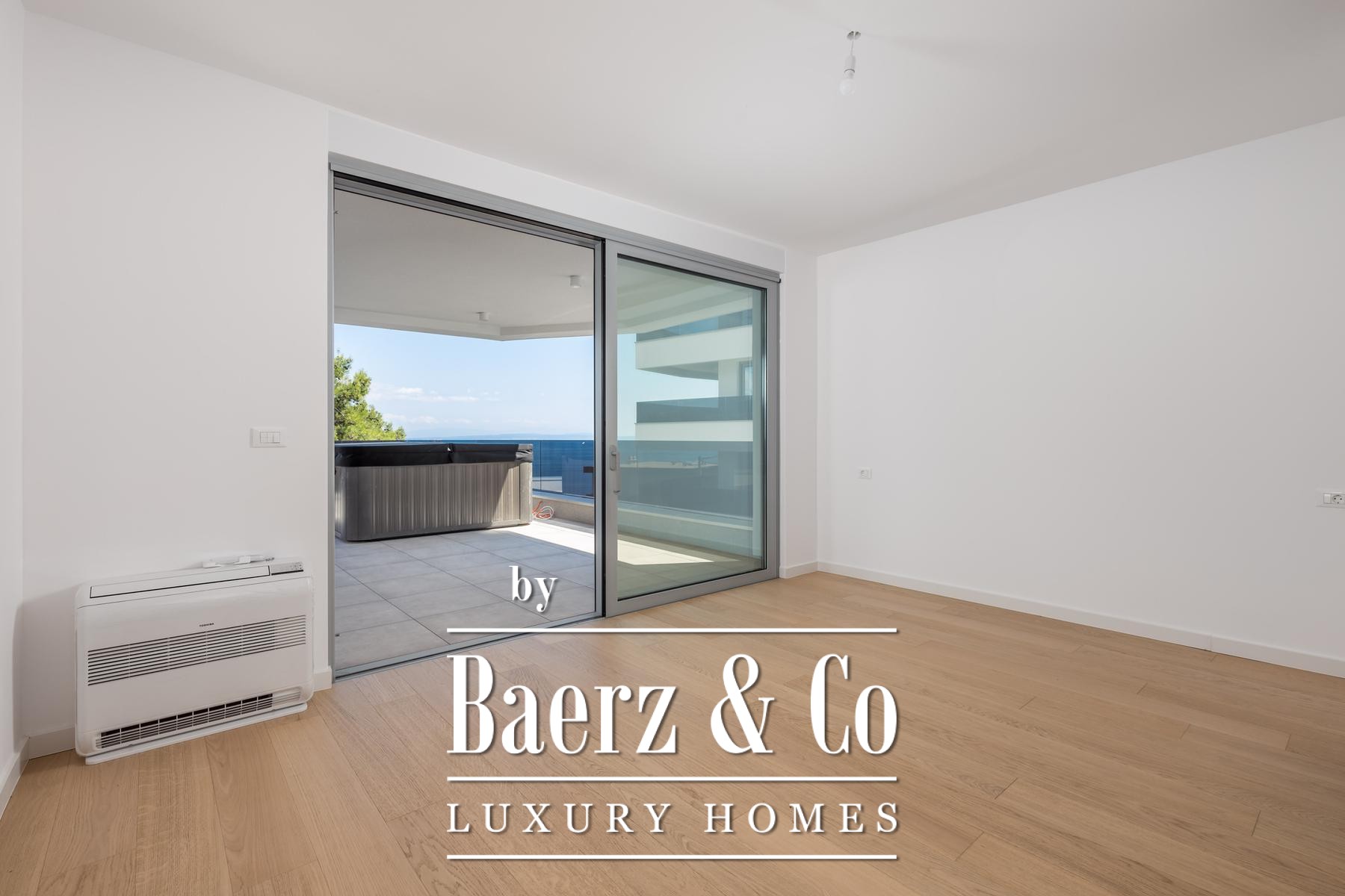 The building itself exemplifies contemporary architecture with DEMIT and ventilated facades, brown aluminum carpentry, and large-format composite panels. Amenities include a shared gym and wellness area, video surveillance, elevator access, and landscaping illuminated in LED. Designed for discretion and seclusion, this luxury apartment for sale in Opatija invites residents to experience clarity, light, and extraordinary tranquility above the city and sea.