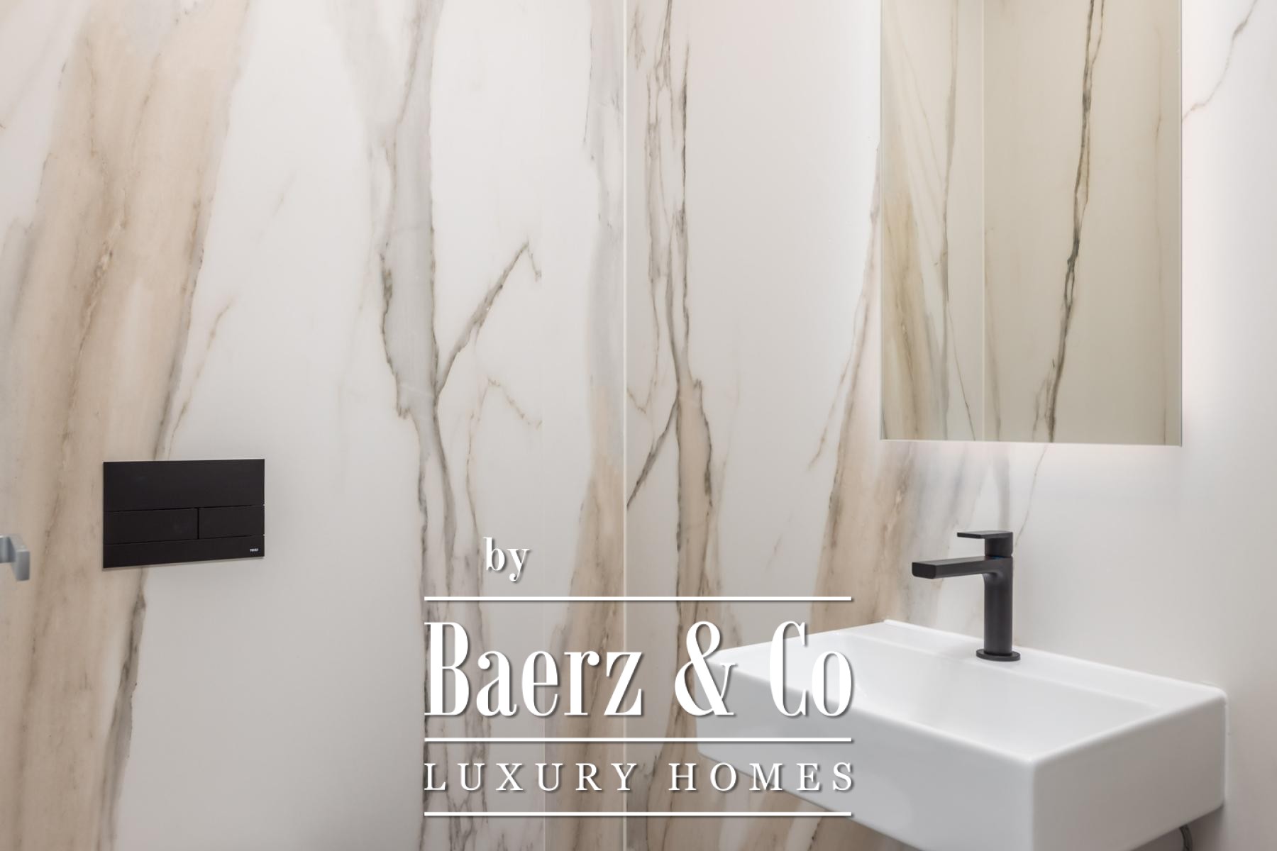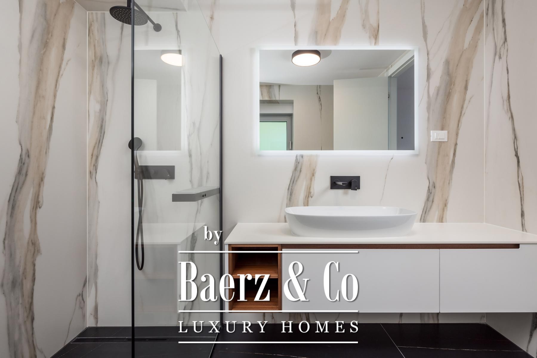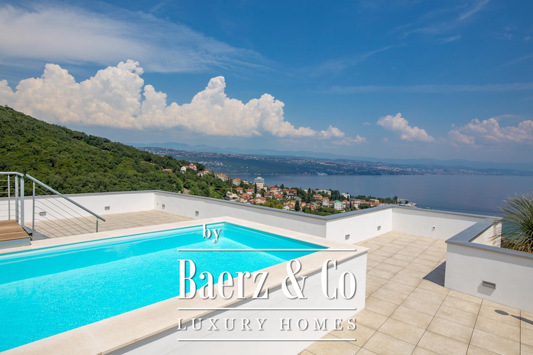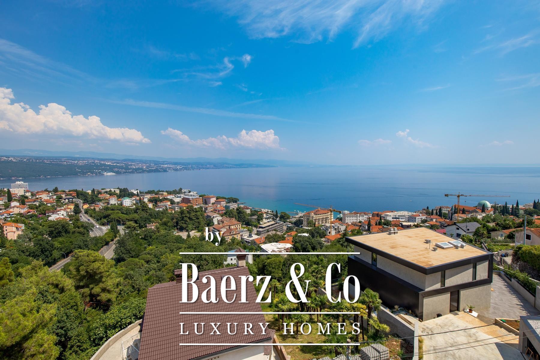 The residence is positioned in a tranquil enclave just above the city center, where privacy prevails and the panorama of Opatija and the Adriatic Sea unfolds without interruption. The building exemplifies modern architectural sensibility, utilising the finest materials—aluminum carpentry, DEMIT and ventilated facades, large-format composite panels—paired with energy-efficient triple glazing, floor heating, and smart home technology. Interiors are marked by layered oak parquet, Villeroy & Boch sanitary ware, and considered ceiling heights of 260 cm.