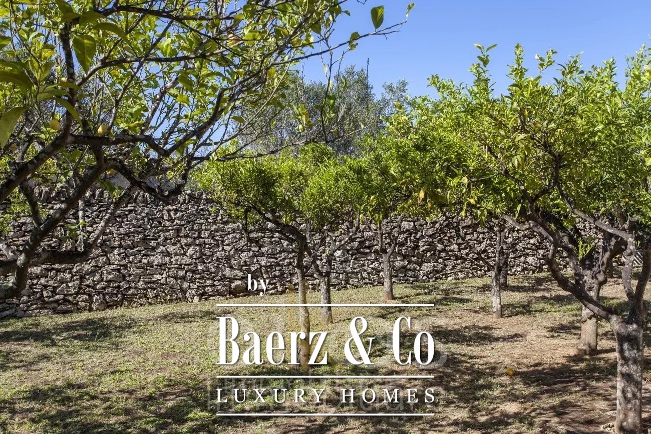 Spanning 210 m² of living space, the villa is nestled within 17,158 m² of mature gardens enclosed by traditional dry stone walls. An electric gate opens to a private driveway, ensuring privacy throughout. The property offers three spacious bedrooms, each thoughtfully arranged for both seclusion and ease, with ensuite bathrooms and dressing areas enhancing the sense of retreat. A flexible media room doubles as a library or fourth bedroom, presenting private terrace views to a walled courtyard planted with lemon trees.