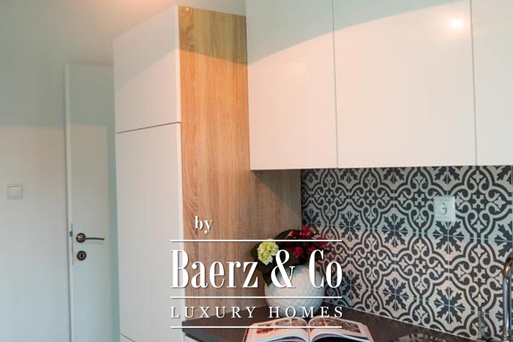 The basement contains two one-room apartments, a garage, and a storage room with a combined area of 100.71 m². The ground floor features two furnished apartments totaling 109.93 m², each arranged to optimize privacy and functionality. Ascending to the first floor, three more furnished one-room apartments continue the home's understated utility. An additional 100 m² attic apartment, presently unfurnished, offers further scope for personalization.
