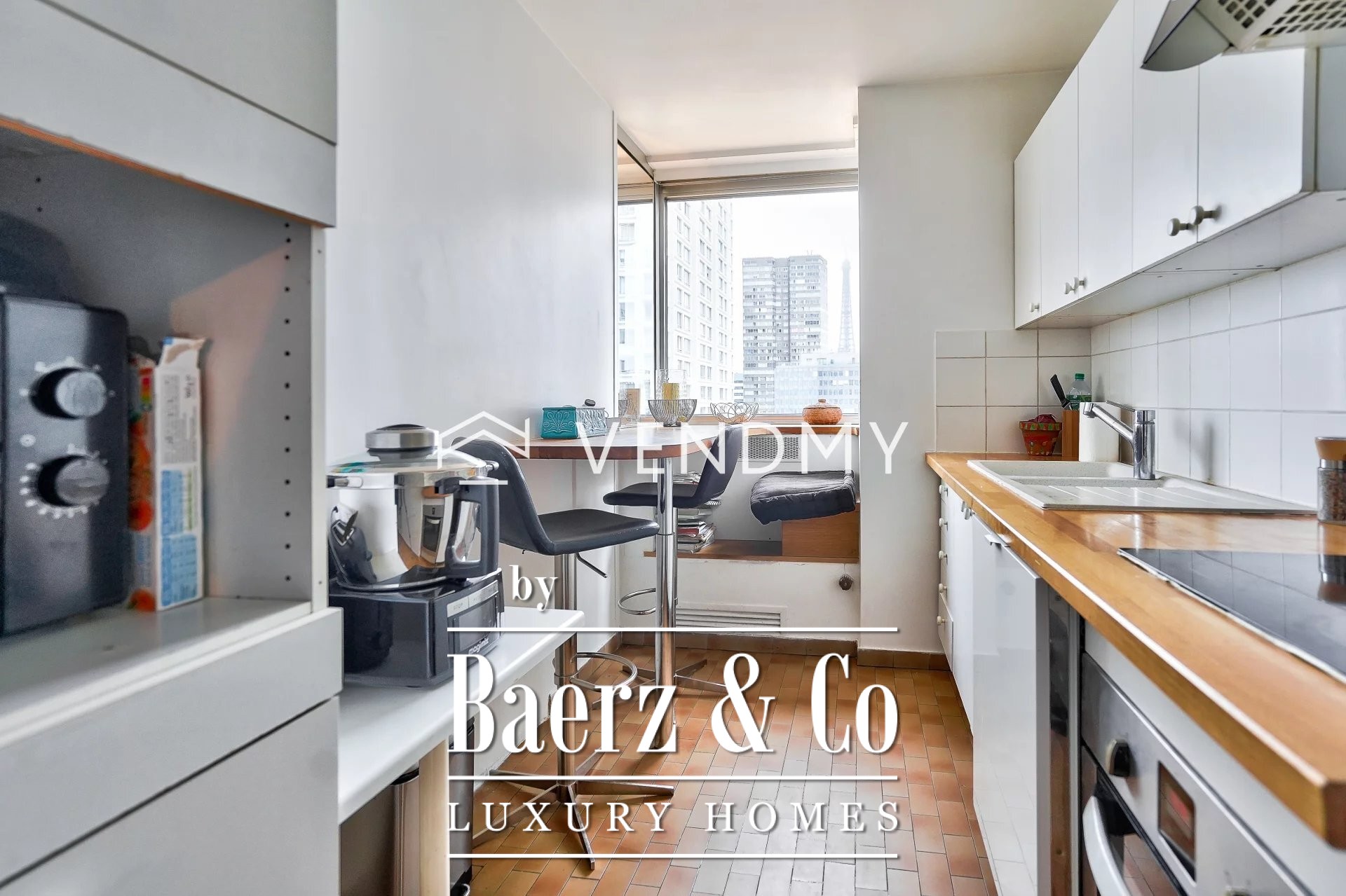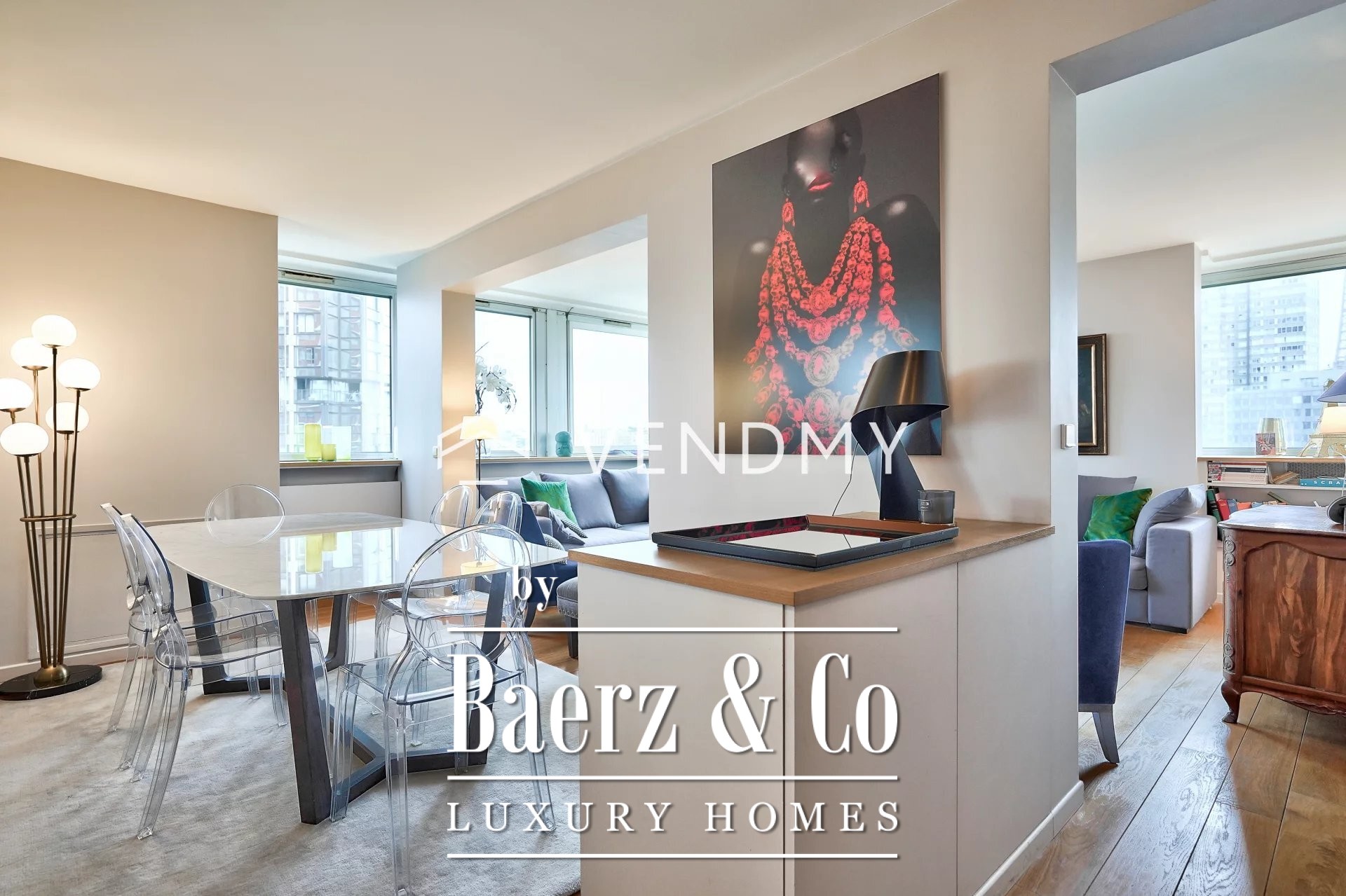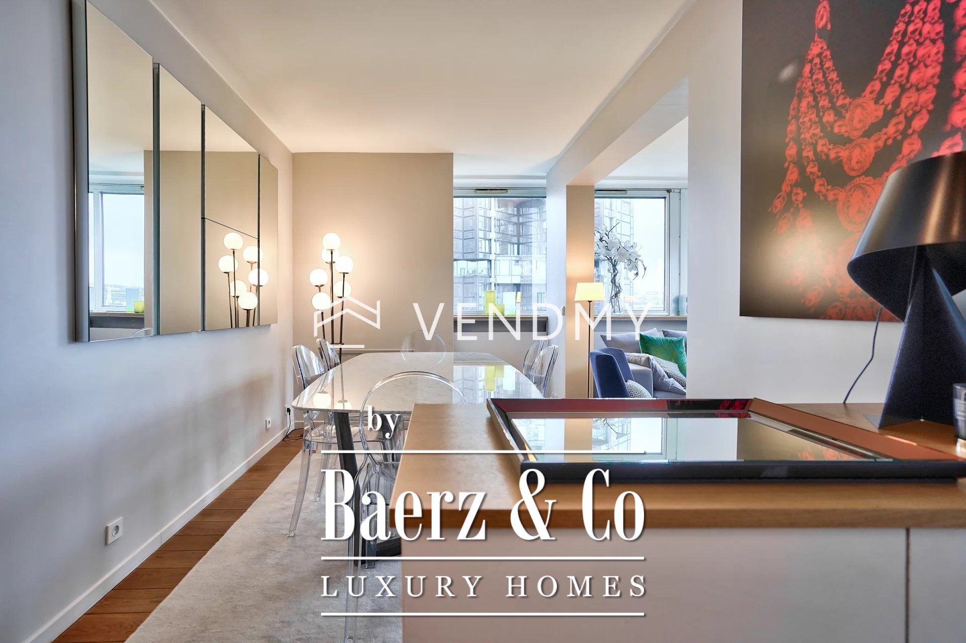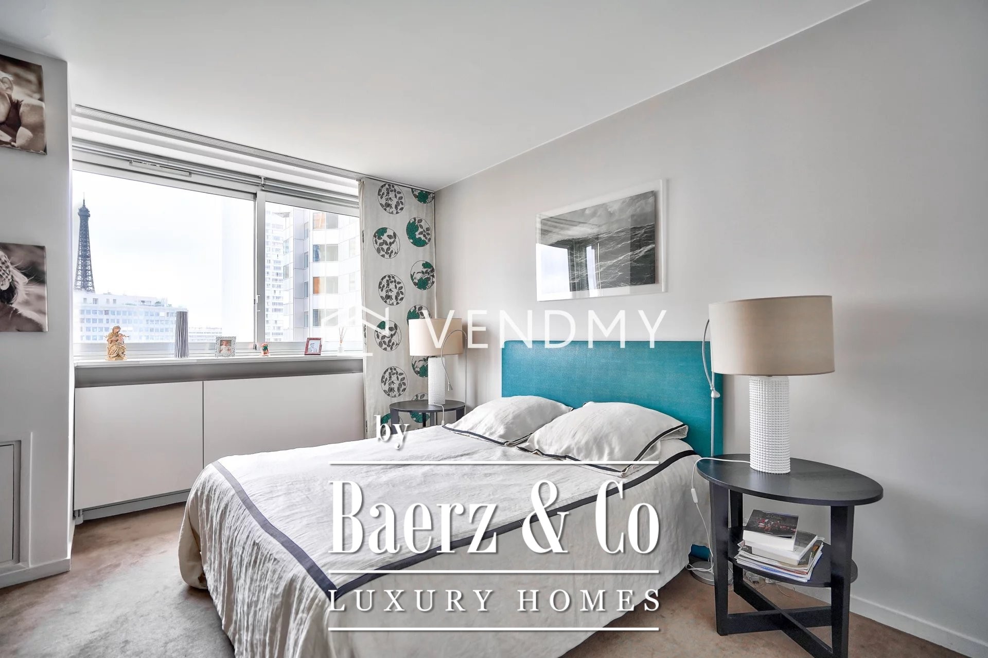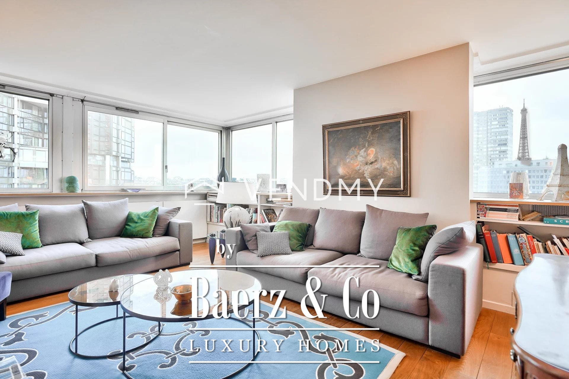 In the heart of an elegant upscale building with a 24/7 janitor, a magnificent 4-room 95 m² loi Carrez apartment on a high floor with a breathtaking view of the Seine and the Eiffel Tower. This apartment comprises an entrance hall, a vast double living room (with the possibility of a third bedroom), a separate fully-equipped kitchen (with the possibility of an open-plan kitchen opening onto the living room),