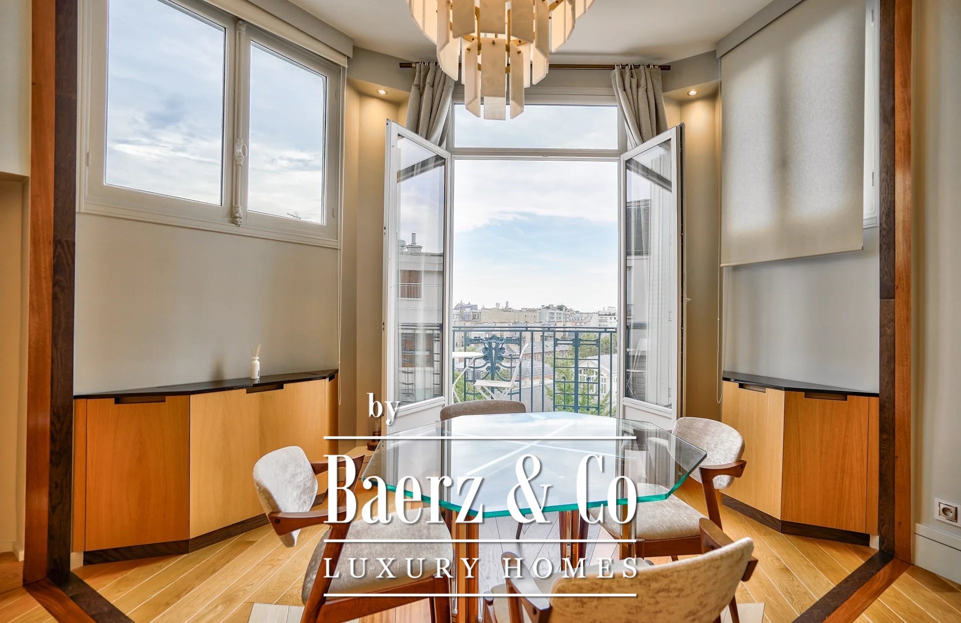 Located in the heart of the 16th arrondissement, just steps away from the prestigious Place de Mexico and Trocadéro, as well as high-quality food shops, transportation, and amenities, this upscale apartment, situated alone on the landing, is nestled on the 6th floor of an Art Deco building with impeccable common areas and an elevator.