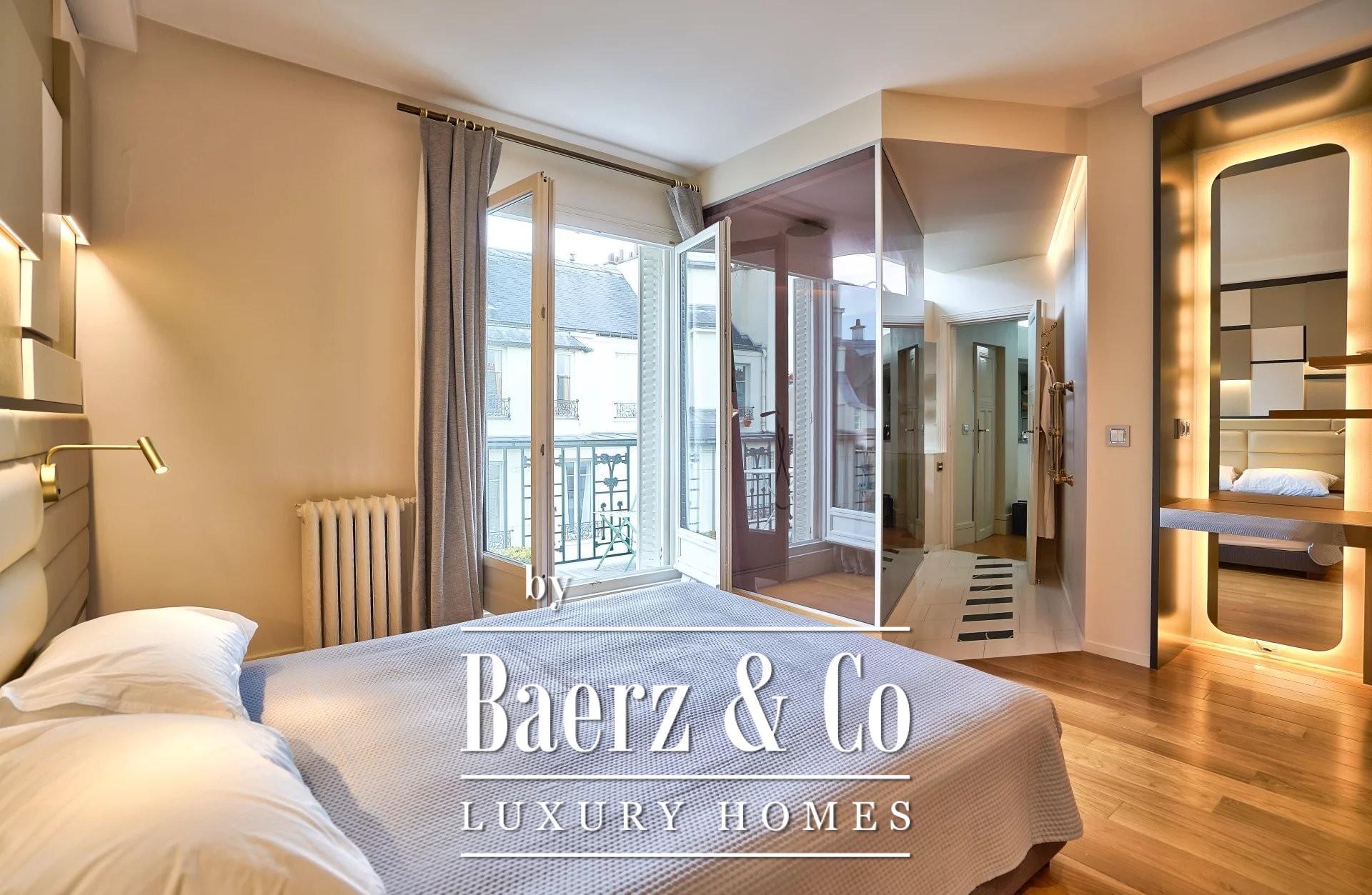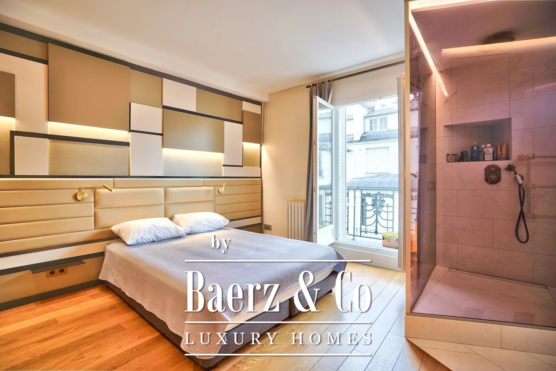 The airy and tranquil bedroom also features a terrace balcony with a direct view of the Eiffel Tower. The en-suite shower room provides an optimized well-being space tastefully decorated.