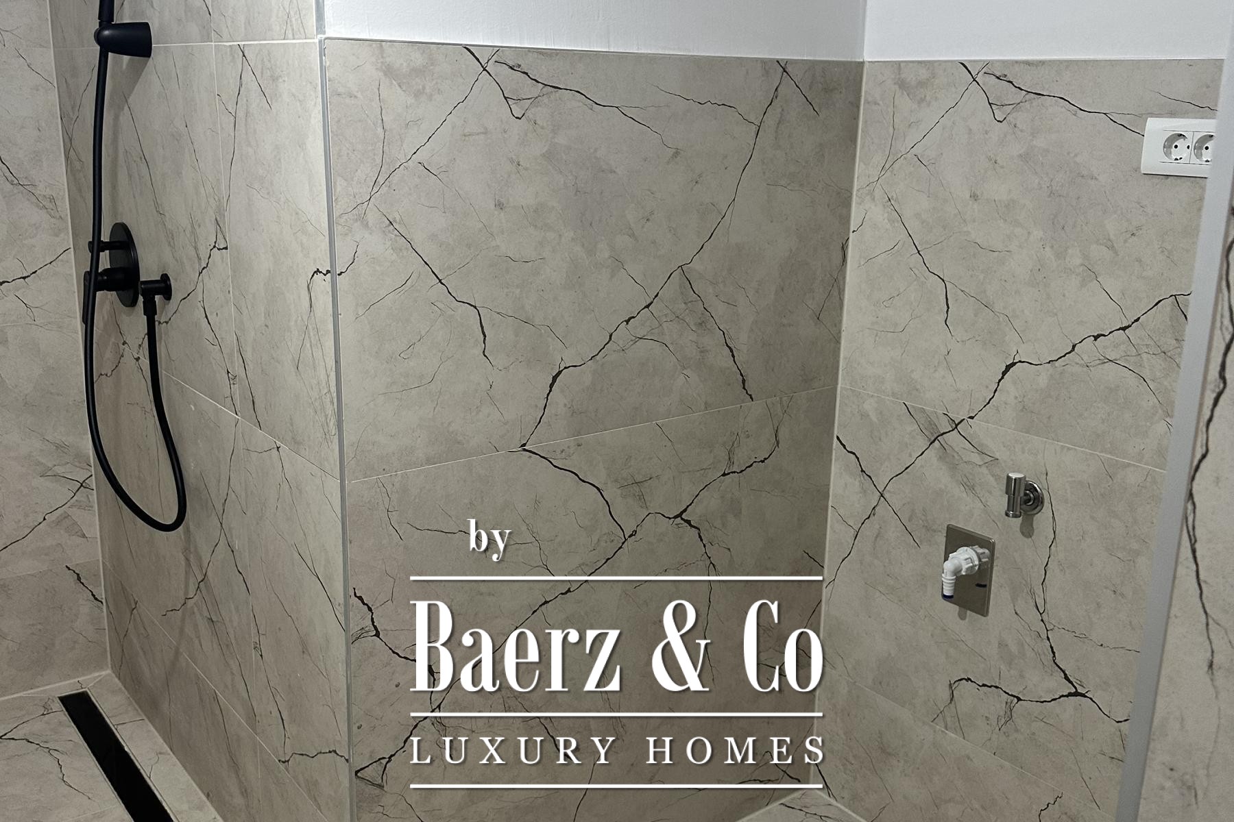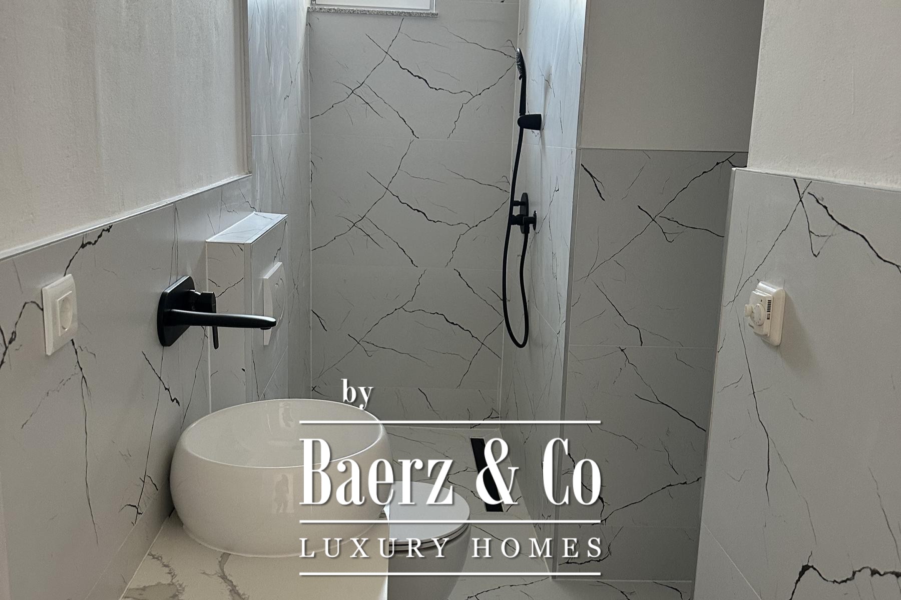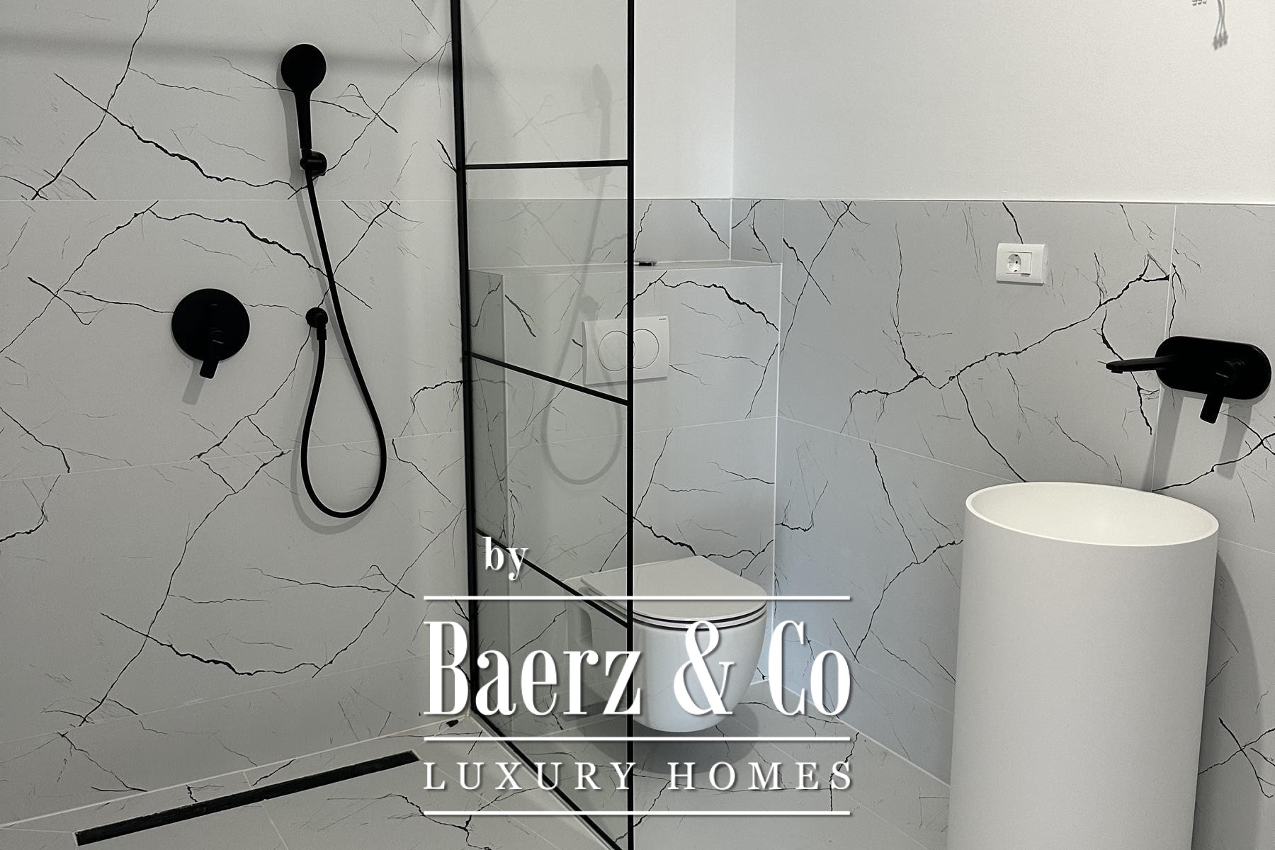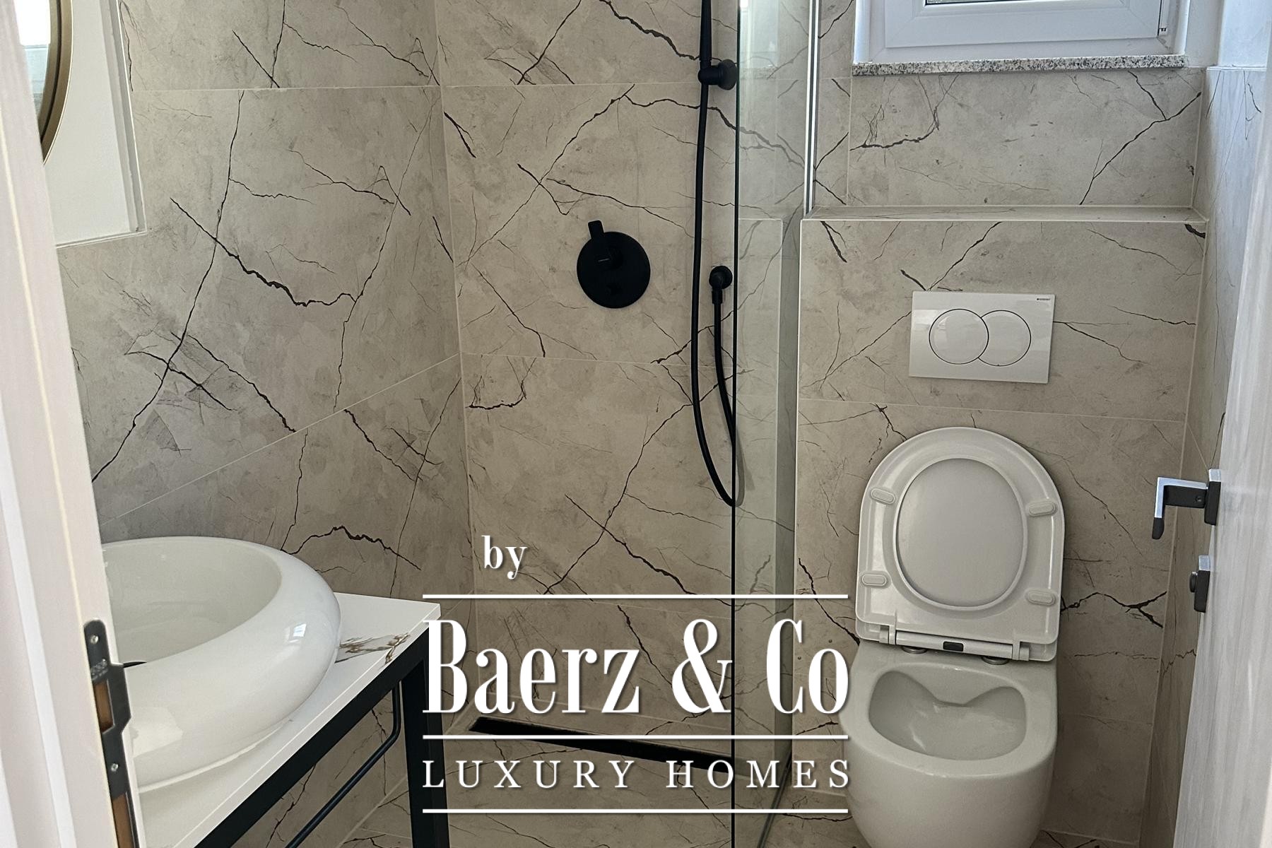 The layout unfolds across two independent ground-floor apartments, one of 93.3 m² and the other 75 m². Each features a cohesive open-plan kitchen, dining, and living area, two bedrooms, with one bedroom offering a private en-suite bathroom and another sharing a thoughtfully appointed bath. Upstairs, a spacious 165 m² apartment spans the entire first floor, generously composed as two residential units, each with two bedrooms and two bathrooms. This space is punctuated by terrace access, capturing the essential Mediterranean light and views.