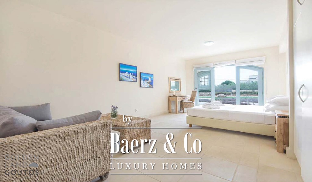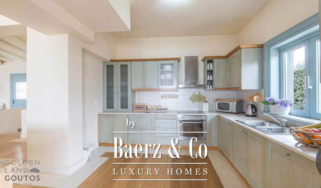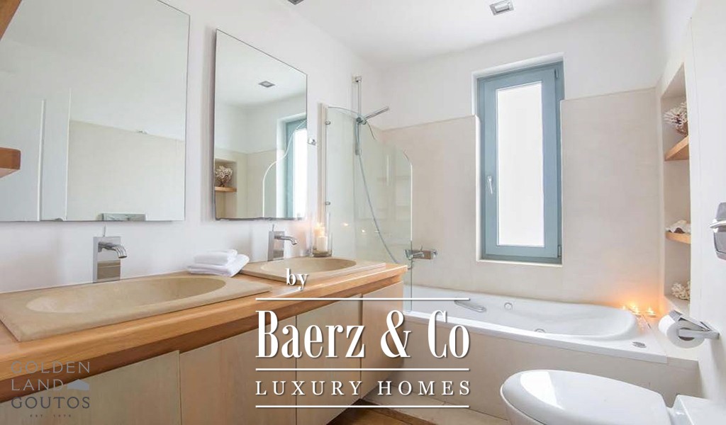 The villa boasts a unique, fresh, elegant, and modern design with classic touches, ensuring a sophisticated and comfortable living environment. It features 5 spacious bedrooms, 4 luxurious bathrooms, 2 additional WC, 2 fully equipped kitchens, and 1 expansive living room. The property is equipped with autonomous heating with oil and air conditioning for year-round comfort. The floors are a tasteful combination of tiles and wood. Enjoy breathtaking sea and openness views with a southeast orientation, allowing for spectacular sunrises.