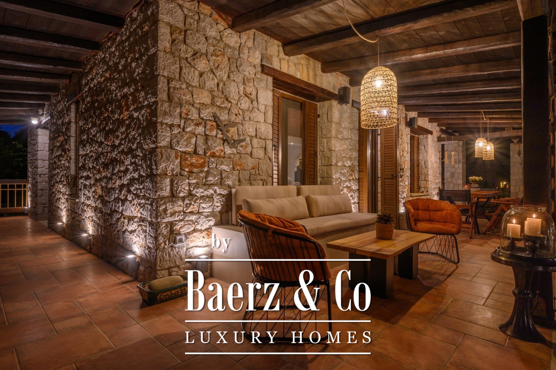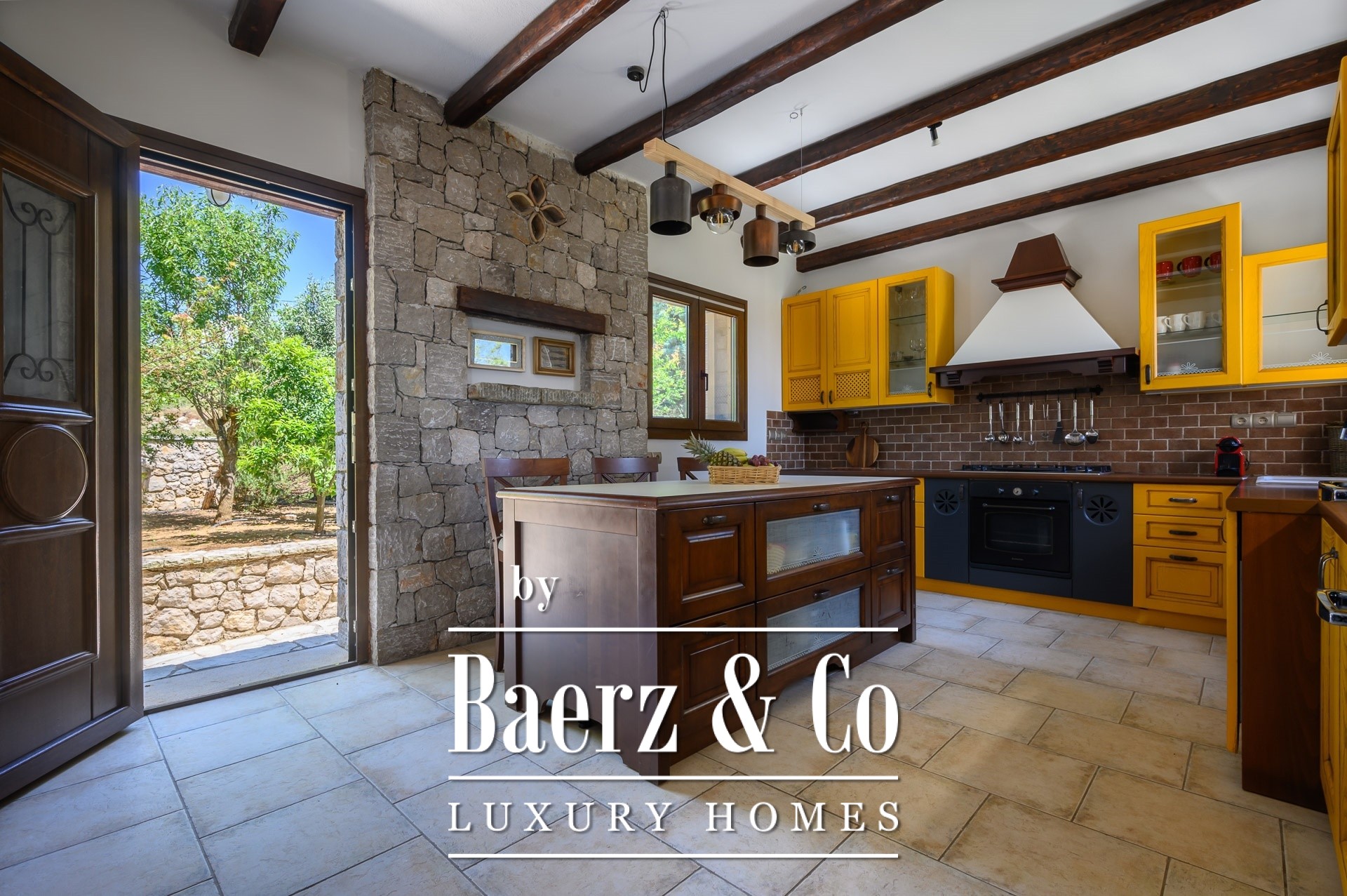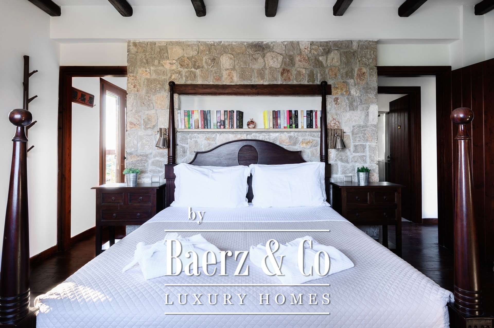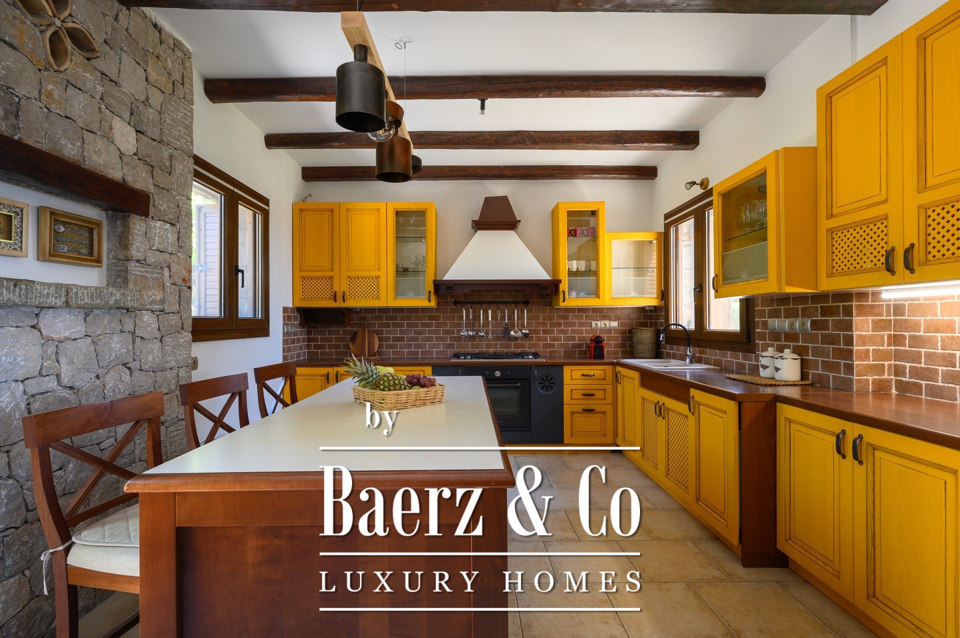 Available from our office is a luxurious stone villa located in the wider area of Pylos. Made of high quality stone and wood, this wonderful villa extends over three levels with a total area of 260 sq.m. It is located in such a place where one can enjoy the wonderful view to the sea, experiencing moments of peace and relaxation. On the elevated ground floor there is a living room with a fireplace and views to the pool area, a separate kitchen and dining room, a bedroom and a bathroom.On the first floor there are two bedrooms, one of them with a fireplace and a dressing room, a bathroom and access to a spacious covered balcony. In the basement area we will find a self-contained studio with its own kitchen area and bathroom, the cellar,