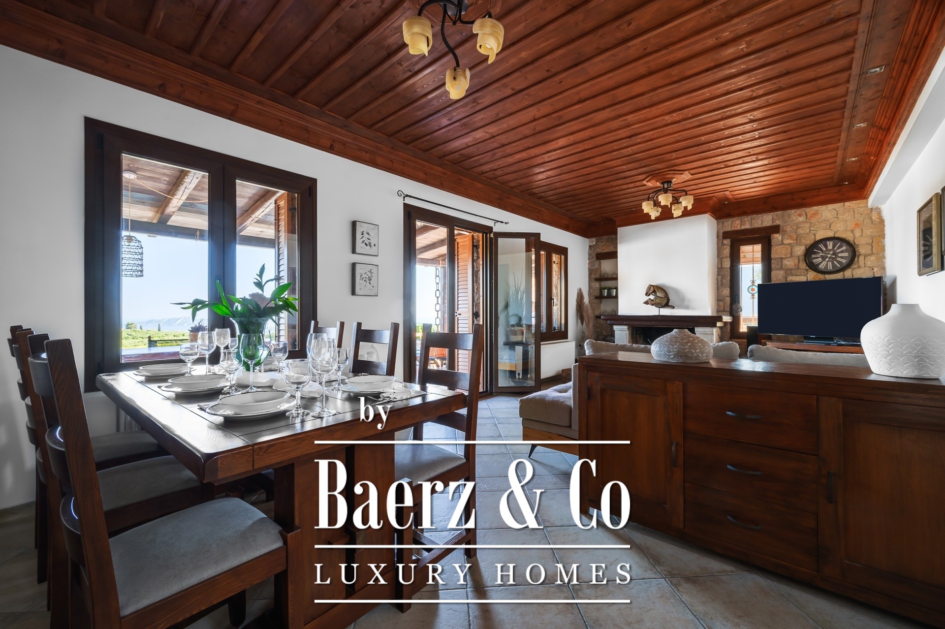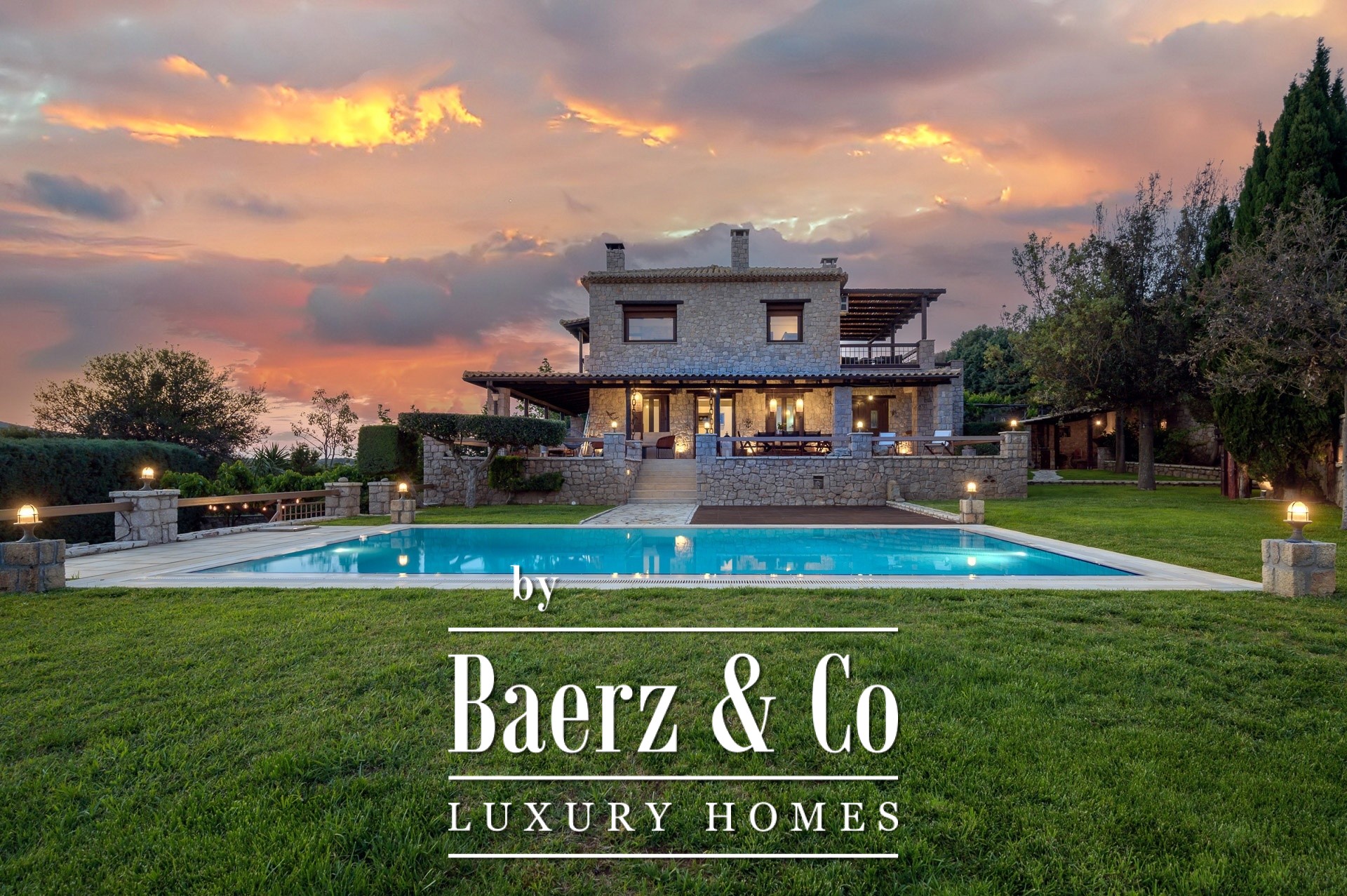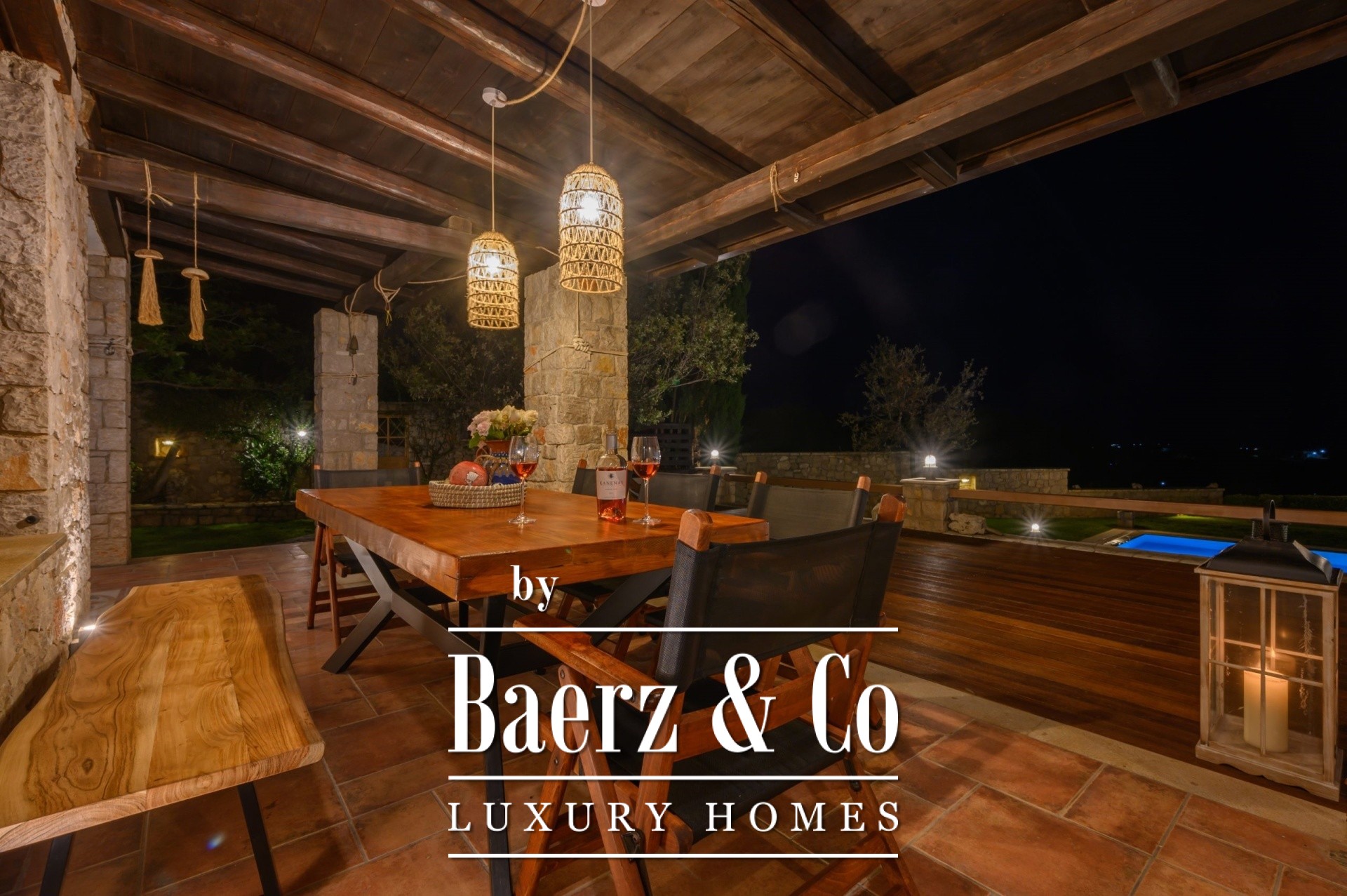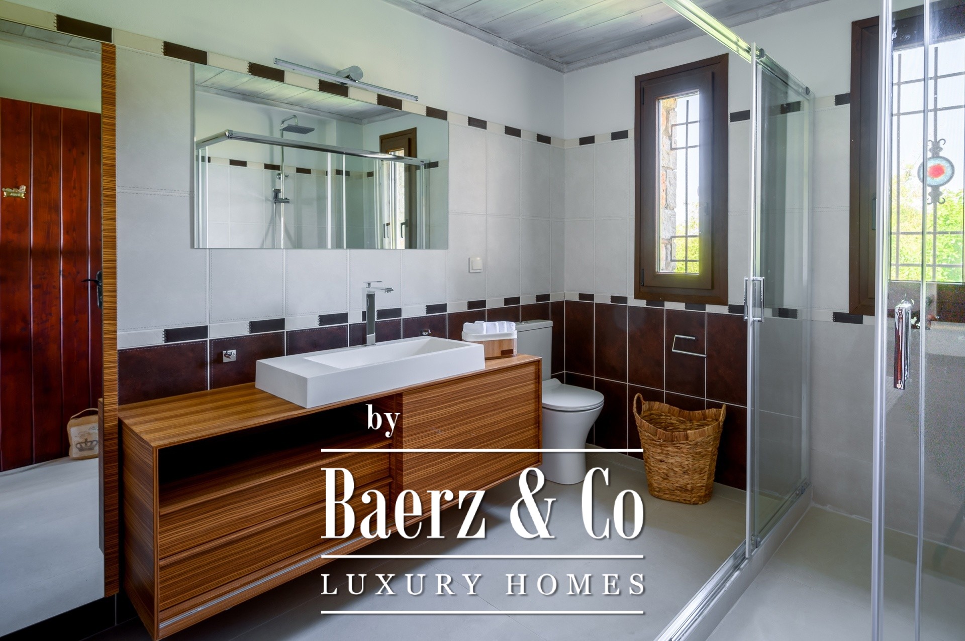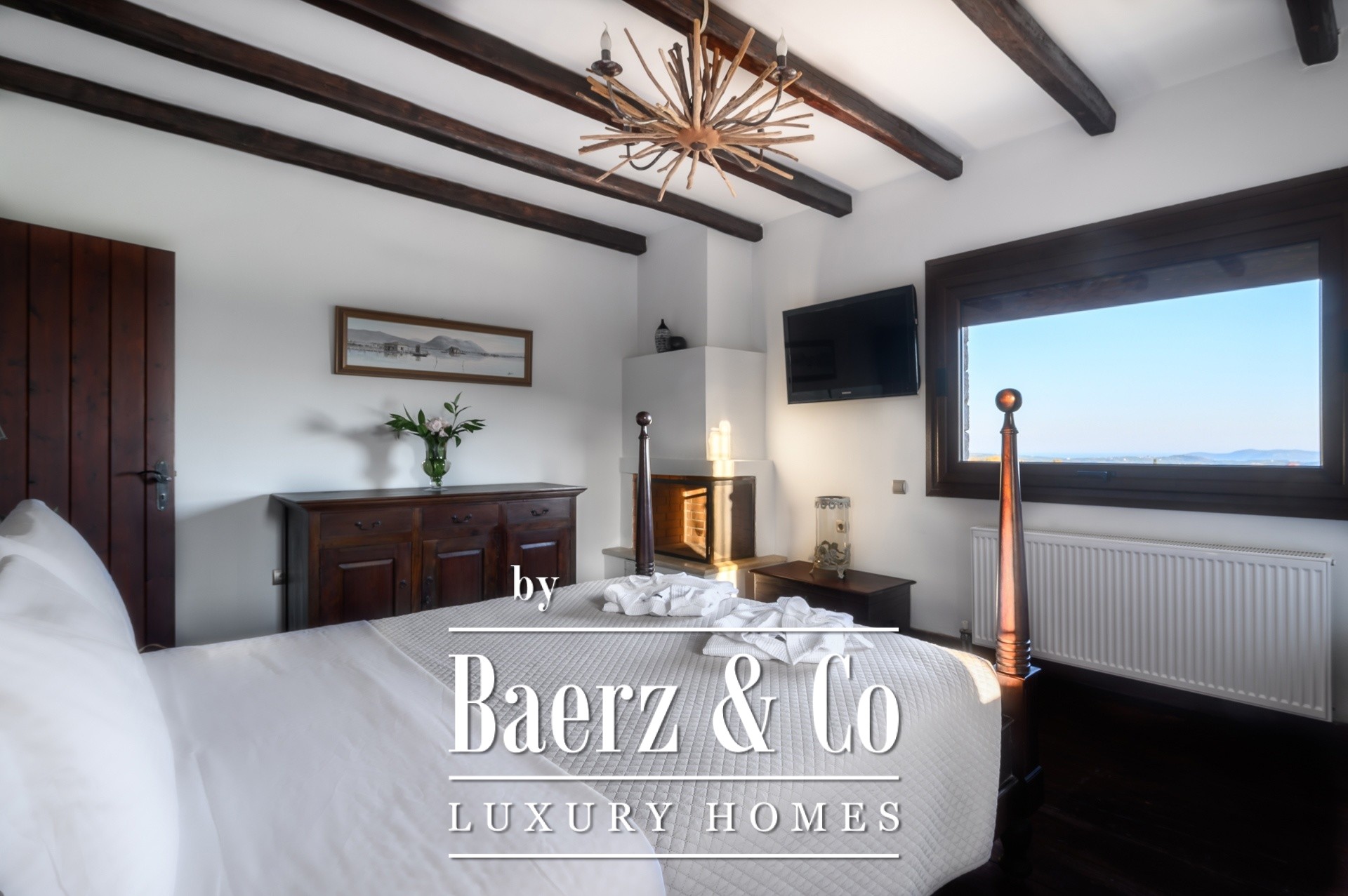 Available from our office is a luxurious stone villa located in the wider area of Pylos. Made of high quality stone and wood, this wonderful villa extends over three levels with a total area of 260 sq.m. It is located in such a place where one can enjoy the wonderful view to the sea, experiencing moments of peace and relaxation. On the elevated ground floor there is a living room with a fireplace and views to the pool area, a separate kitchen and dining room, a bedroom and a bathroom.On the first floor there are two bedrooms, one of them with a fireplace and a dressing room, a bathroom and access to a spacious covered balcony. In the basement area we will find a self-contained studio with its own kitchen area and bathroom, the cellar,