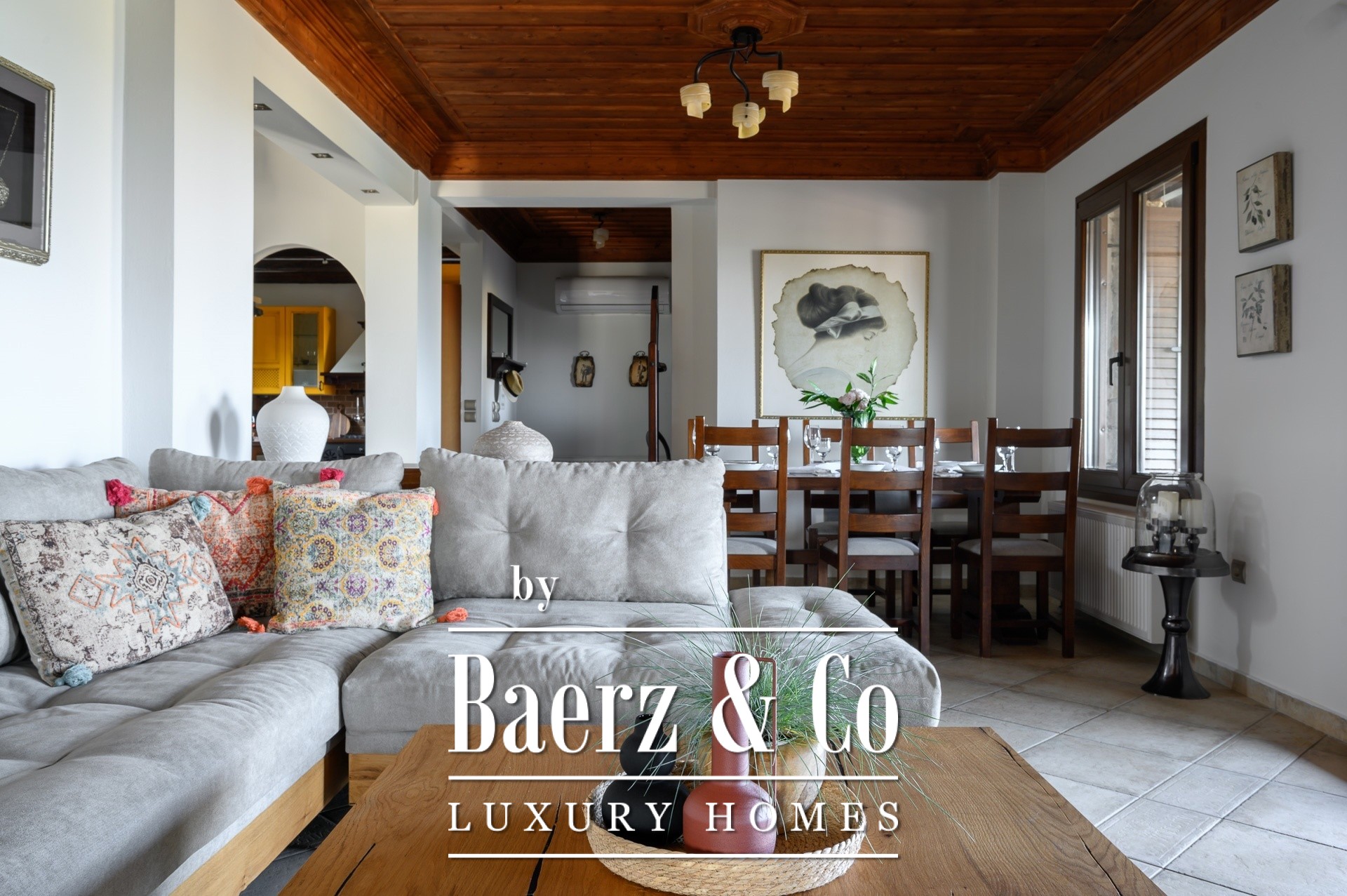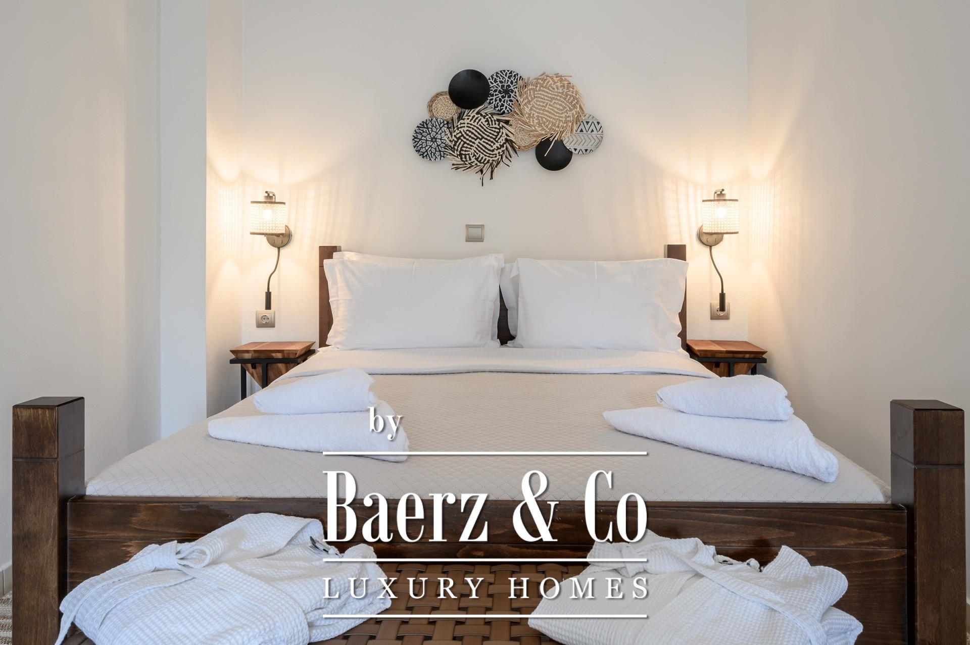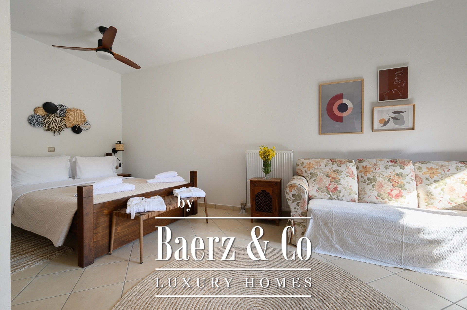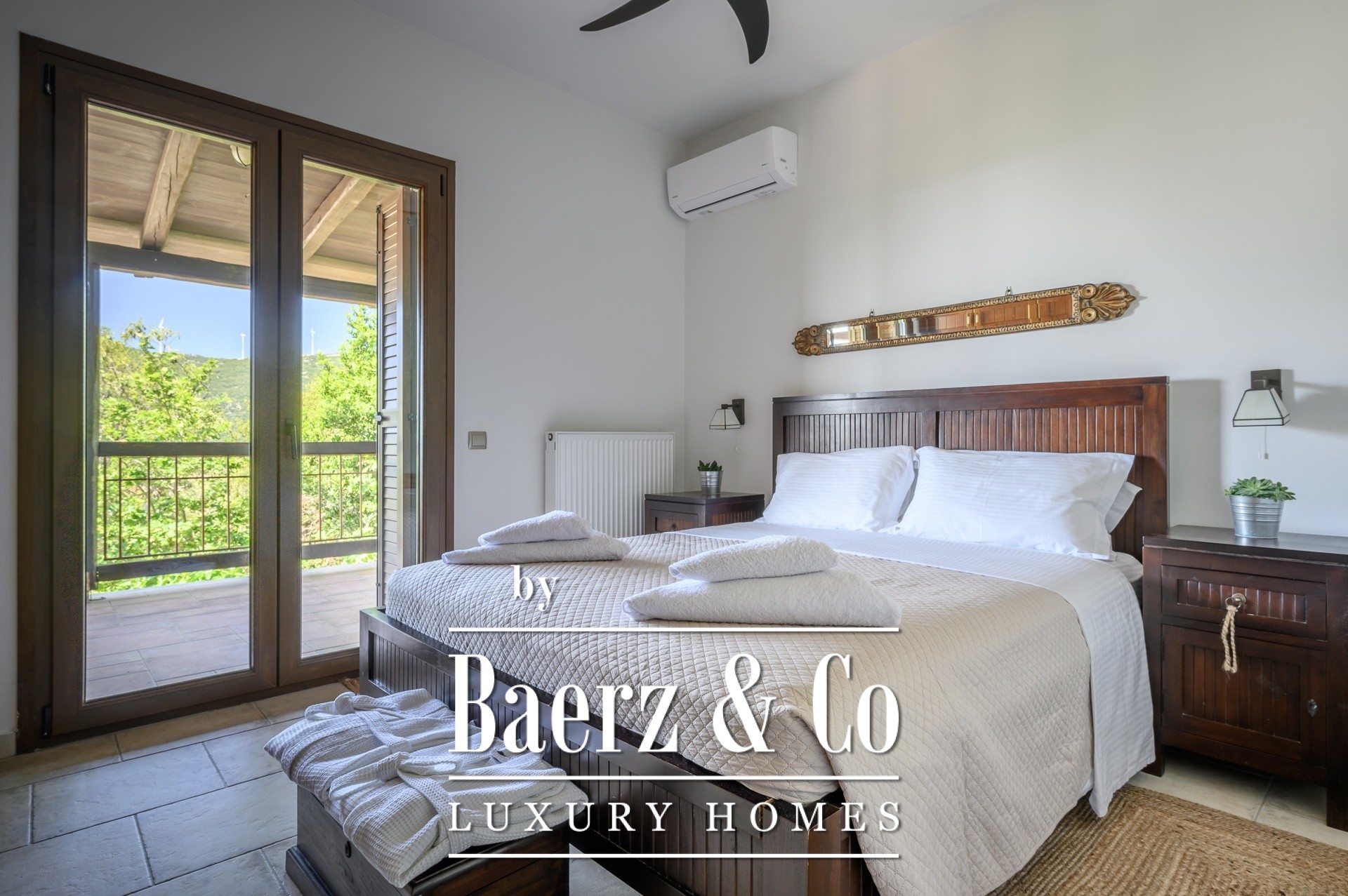 Available from our office is a luxurious stone villa located in the wider area of Pylos. Made of high quality stone and wood, this wonderful villa extends over three levels with a total area of 260 sq.m. It is located in such a place where one can enjoy the wonderful view to the sea, experiencing moments of peace and relaxation. On the elevated ground floor there is a living room with a fireplace and views to the pool area, a separate kitchen and dining room, a bedroom and a bathroom.On the first floor there are two bedrooms, one of them with a fireplace and a dressing room, a bathroom and access to a spacious covered balcony. In the basement area we will find a self-contained studio with its own kitchen area and bathroom, the cellar,