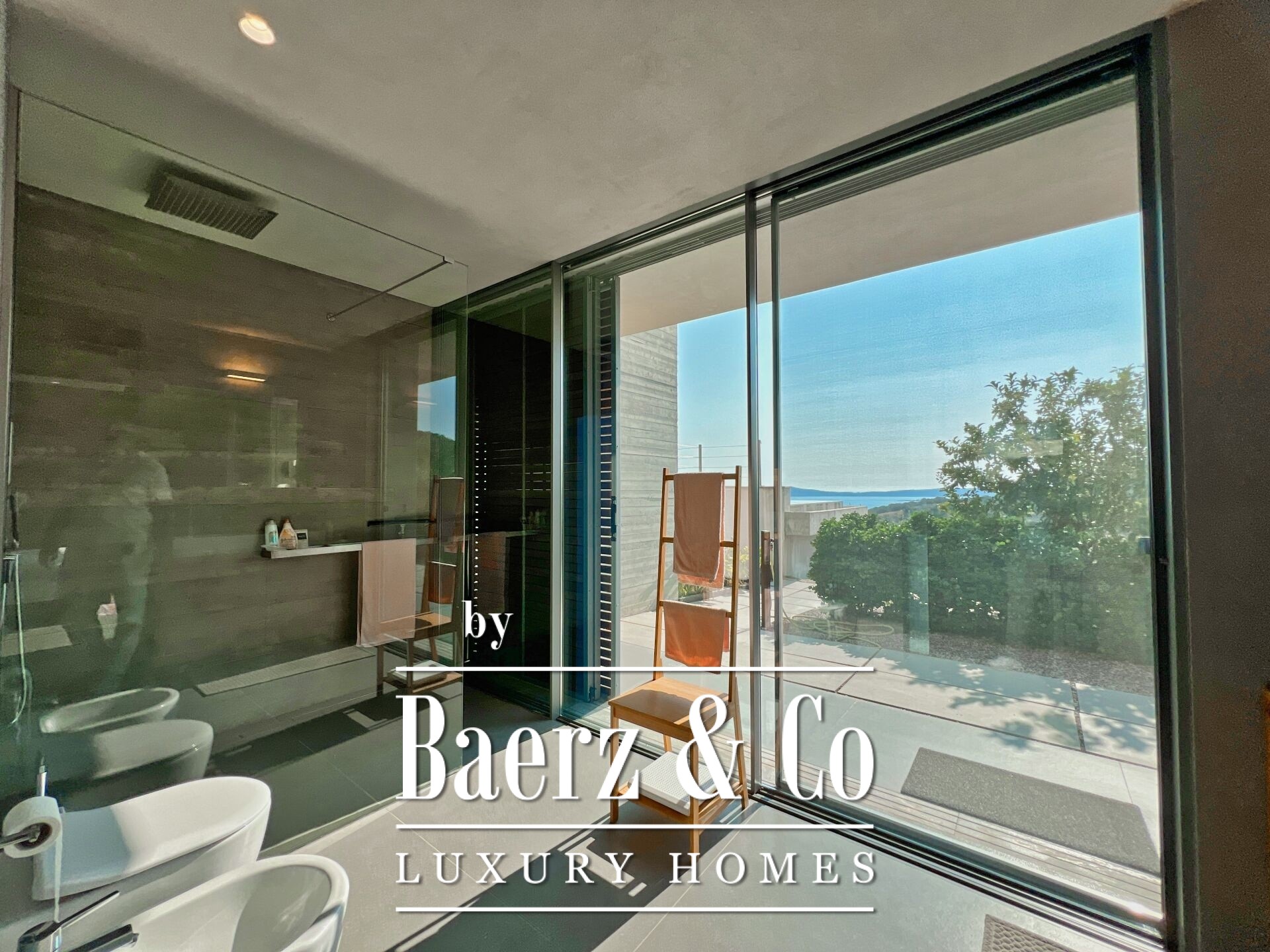 The interior layout is highly adaptable, with large retractable glass panels that transform the main living areas into an open courtyard-like space, ideal for year-round enjoyment. The view of the bay, the Gialova lagoon, and the Pylos coastline dominates every part of the property, creating a constant dialogue between the home and its surroundings.