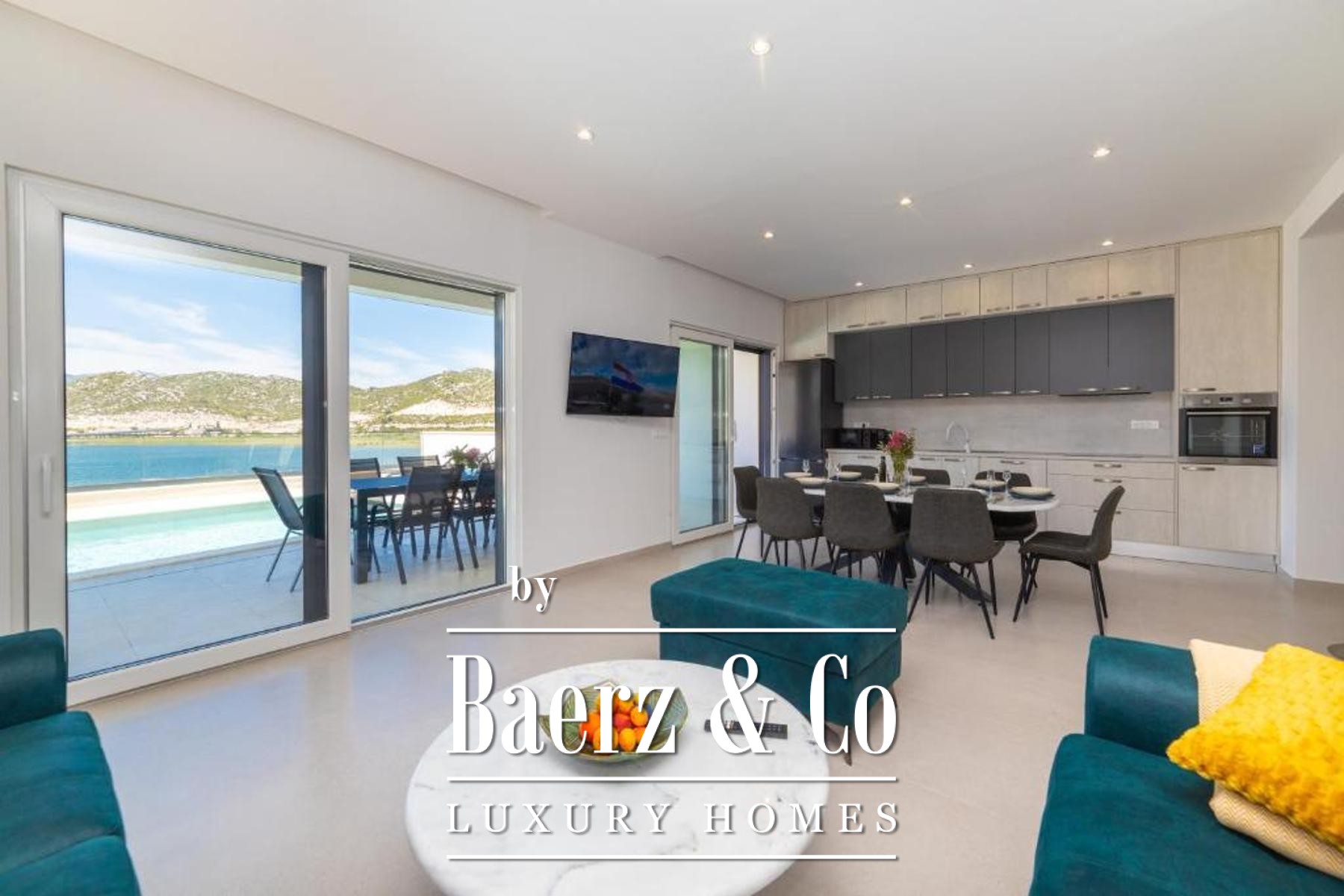 Ploče, Rogotin, modern urban villa with pool and sea view In a quiet part of Ploče, in the settlement of Rogotin, a luxurious urban villa with a total gross area of 311 m² is for sale, located on a spacious plot of land of 1,200 m². The property is modernly designed, with excellent facilities and a beautiful view of the sea and the bay. Basic information: The total area of the villa is 311 m² BRP, spread over three floors. There is also an outdoor parking lot on the property and a swimming pool that provides additional pleasure and privacy. Floor plan: The basement (60 m² of net usable area) consists of an entrance area, a machine room and an internal staircase. The ground floor (156 m² net usable area) includes