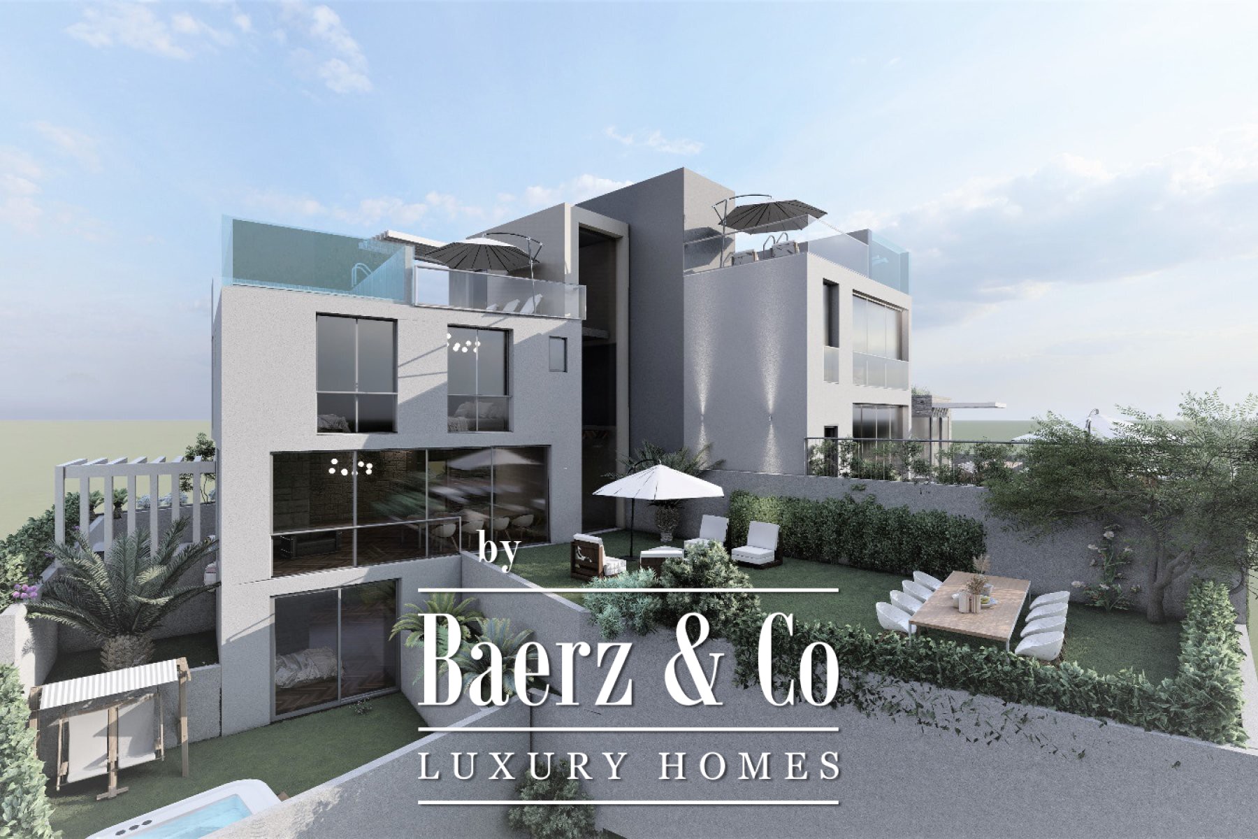 Podstrana, Semi-detached luxury villa under construction with sea view. Total gross living area 243.79 m2 on a plot of land of 335 m2. It extends over three floors, basement, ground floor and first floor. The villa has a modern elevator. In the basement there is one bedroom with a bathroom, a gym, a laundry room and a toilet. On the ground floor of the villa there is an entrance area with a kitchen, a dining room and an open floor plan living room. On the first floor there are three bedrooms, each with its own bathroom. On the last floor there