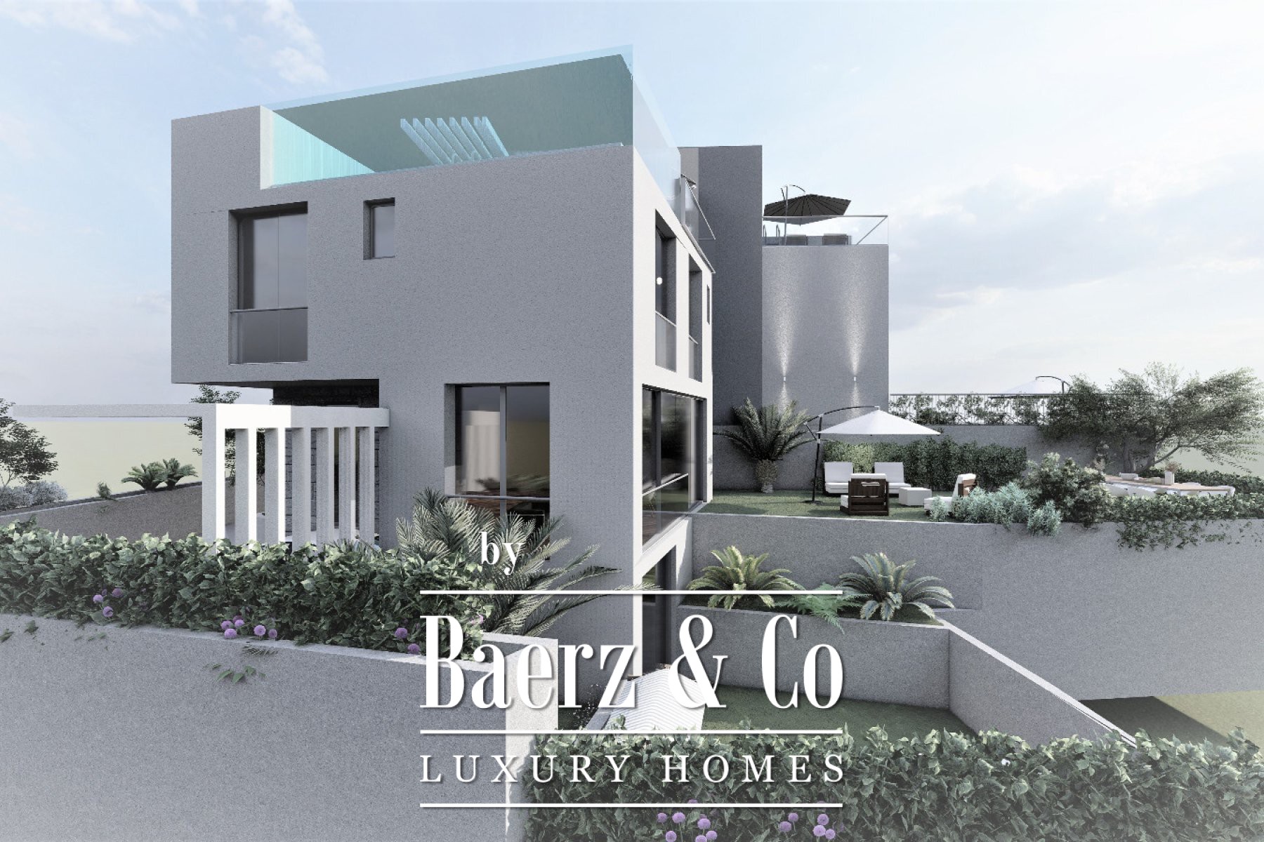 is a swimming pool and a large roof terrace with a beautiful view of the sea. There is an auxiliary facility with a summer kitchen and dining room and a jacuzzi on the landscaped garden. The villa has 2 parking spaces, one of which is covered. • air-conditioned • modernly designed • sea View • ideal for tourism • swimming pool/jacuzzi • start of construction 06/2023 • completion of construction 12/2024 • the price includes floors, ceramics, carpentry (without furniture) PDV je uključen u cijenu. Other information on request.