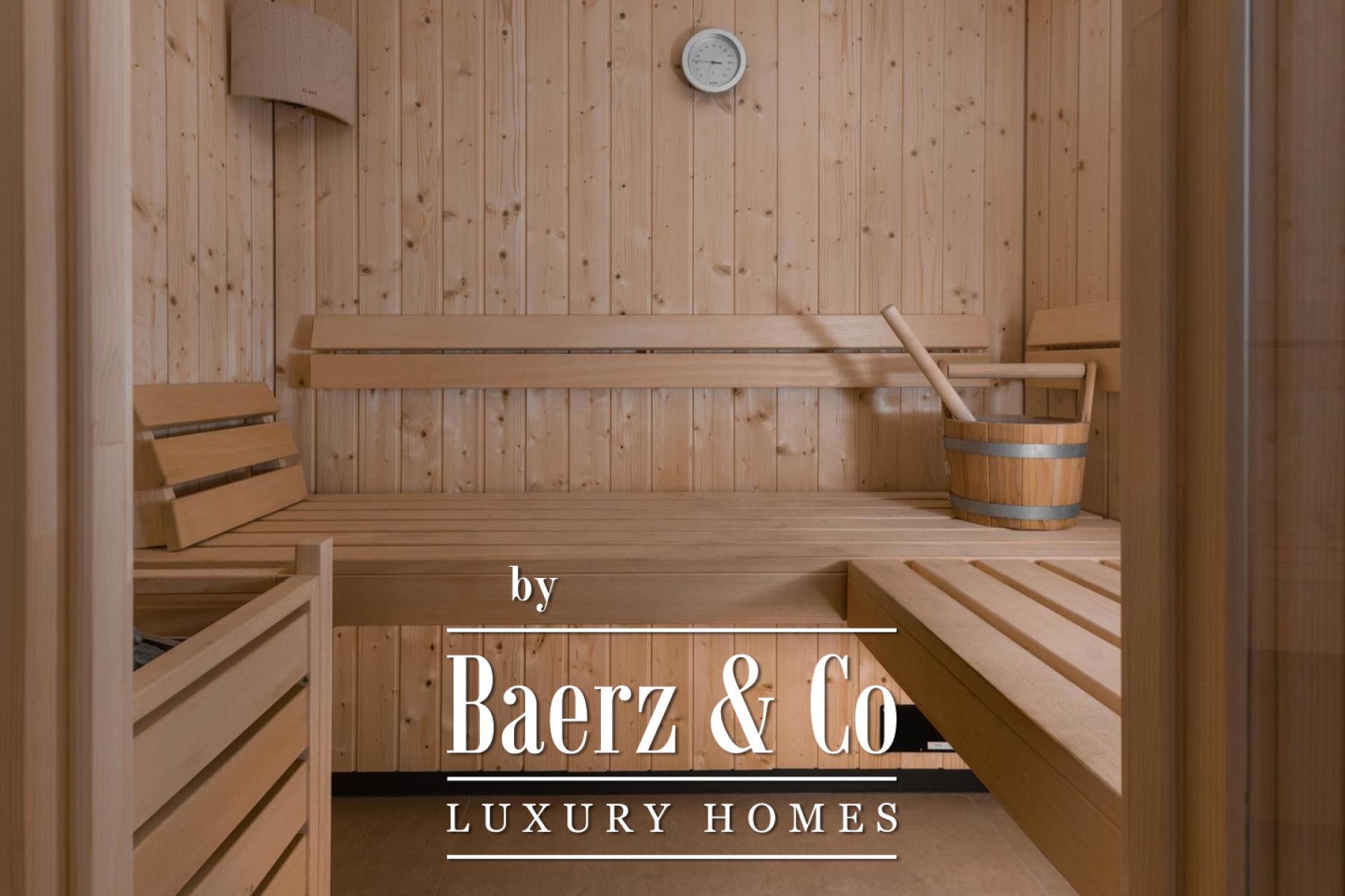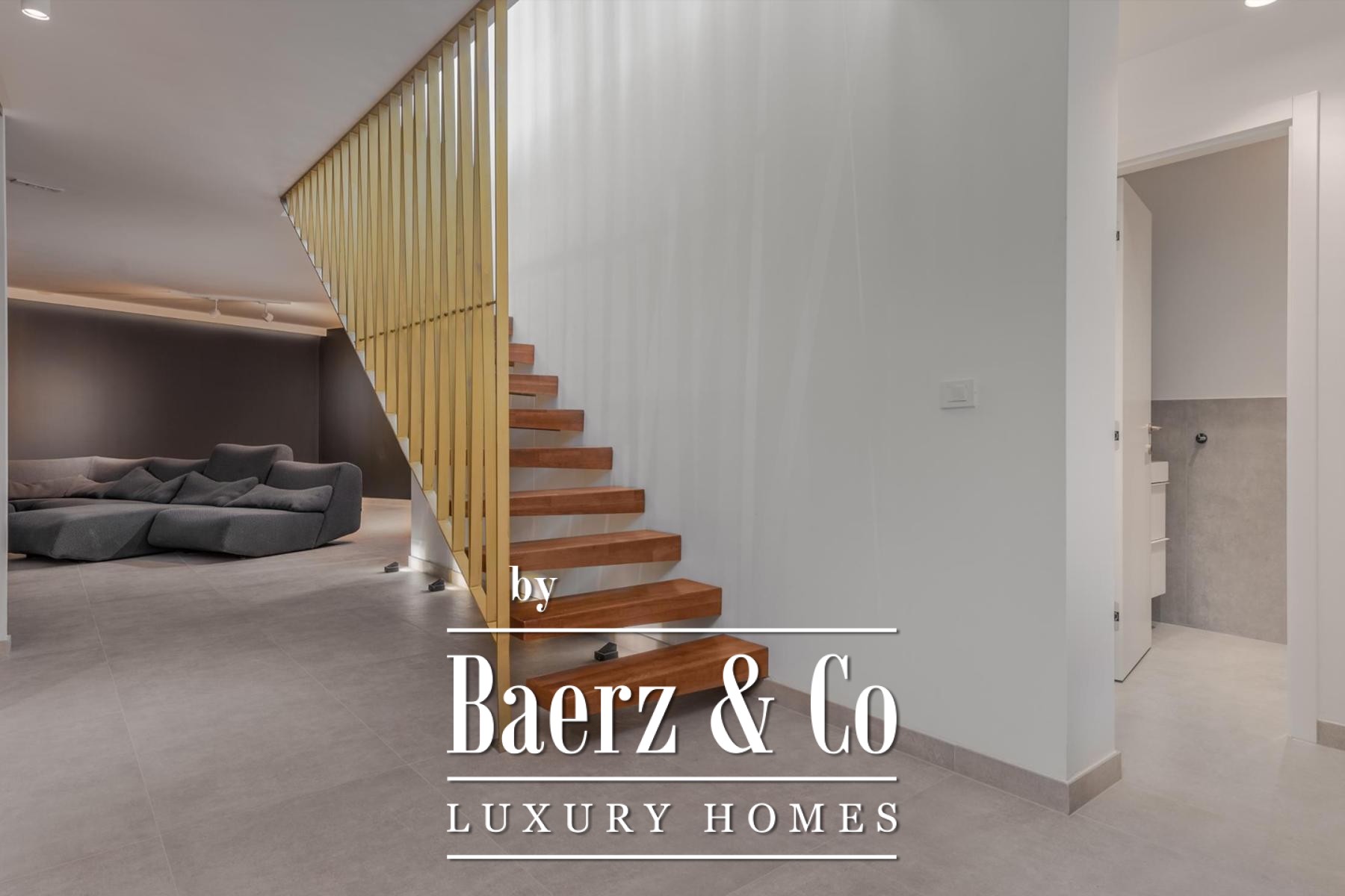 The basement level offers a dedicated cinema room, a fully appointed gym, a sauna, laundry, bathroom, and guest toilet—each detail considered for both recreation and restorative living. On the ground floor, light fills the open-plan living area, seamlessly connecting kitchen, dining, and lounge to a terrace with a swimming pool. Guest accommodations, two further toilets, and a bathroom with a shower ensure layered comfort.