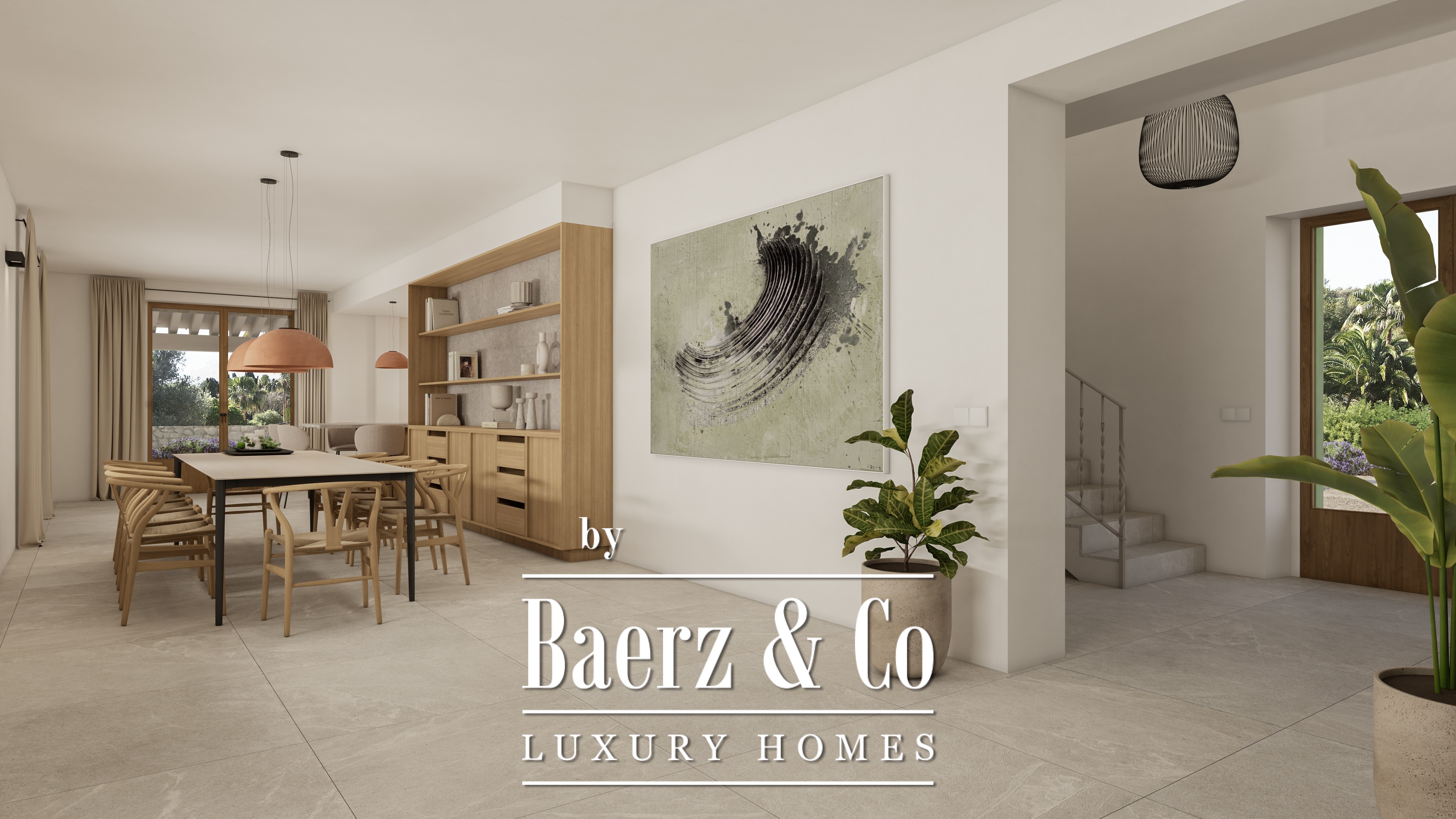 Villa Pollenca presents 411 m² of refined living space on a 16,423 m² estate where traditional Mallorcan stone architecture has been fully renewed in 2025 to exacting standards. Five double bedrooms and four bathrooms, three en suite, flow around a central salon with fireplace, a generous kitchen and dining area, a laundry, a wine cellar and guest conveniences. Natural stone floors with underfloor heating, full air conditioning, advanced domotics and double glazing ensure seamless comfort. Wide covered terraces extend to landscaped gardens, creating layered spaces for dining and repose. A private 70 m² pool anchors the outdoor rhythm, framed by mountain views and soft Mediterranean light. The property is self-sufficient with its own well, solar park with battery packs and a back up generator, while connected to the grid. Located on the quiet border between Pollenca and Alcudia, mornings are marked by the stillness of olive groves, afternoons by walks along historic lanes, evenings by the glow of village cafés and the nearness of marinas and beaches. Villa Pollenca is offered fully furnished, a ready sanctuary for year round living or an elegant holiday residence, where every element of privacy, craftsmanship and natural beauty is composed with enduring grace.