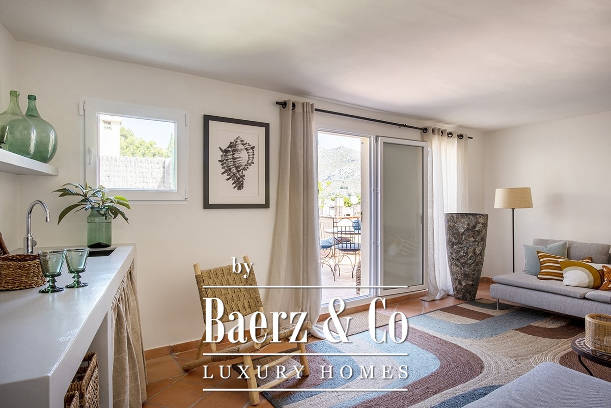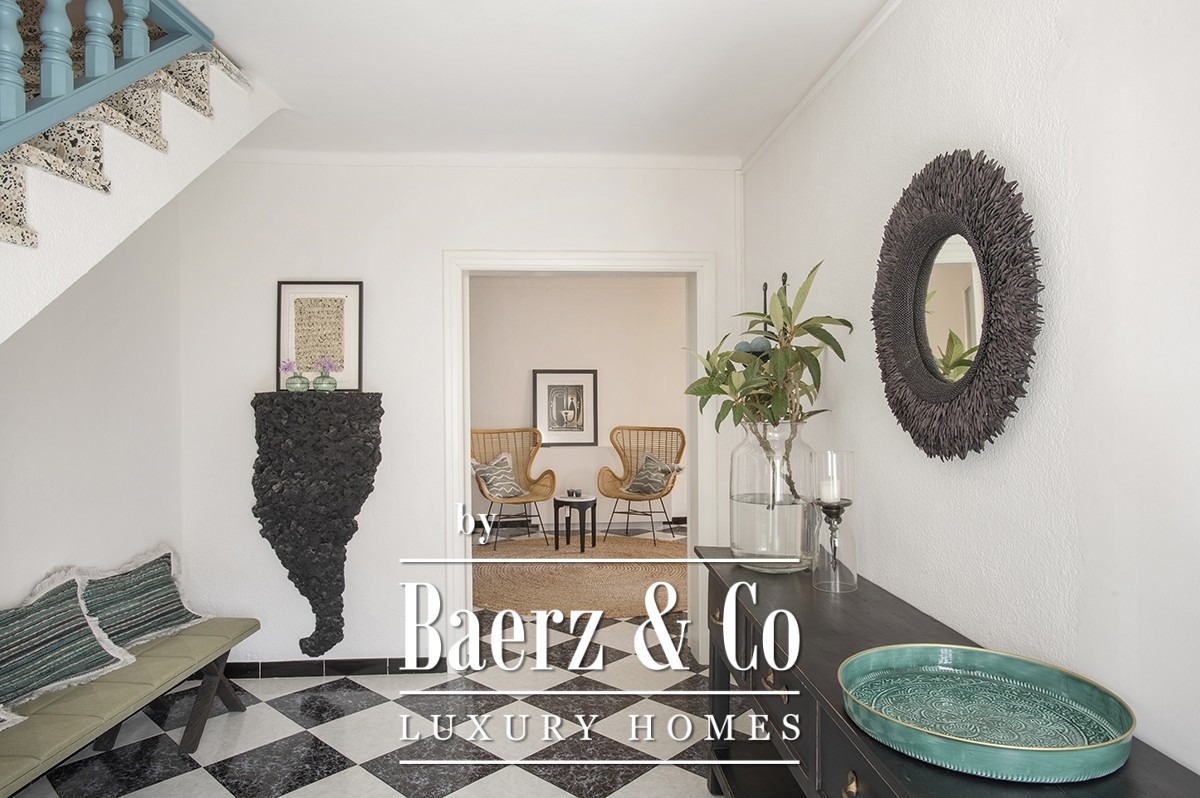 A large rooftop terrace opens to sweeping views across Pollensa’s rooftops to the Tramuntana mountains, ideal for gathering or quiet reflection. Designer furnishings, vintage pieces, and art objects by renowned artists are included, introducing the next owner to a life of subtle distinction. Completing this offering is a rare garage, an invaluable amenity in the old town. For those considering a luxury townhouse for sale in Pollensa Old Town, this property pairs authenticity with flexibility, ready to welcome its next chapter.