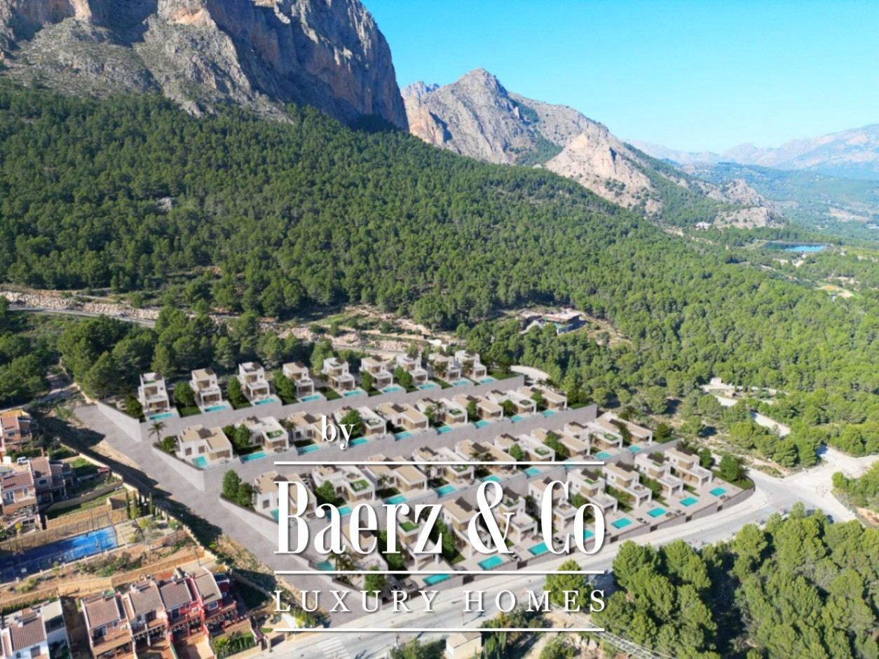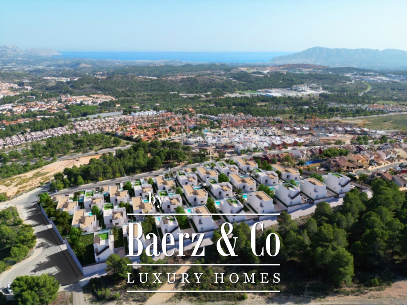 Exclusive residential complex of 36 homes in the prestigious urbanization of Polop, Costa Blanca, consisting of 12 independent villas that offer a privileged location in height, surrounded by nature and with panoramic views of the Mediterranean Sea and the Skyline of Benidorm. Each villa has been designed with high-quality materials, energy efficiency and a modern design that blends perfectly with the landscape, creating a first-class home.