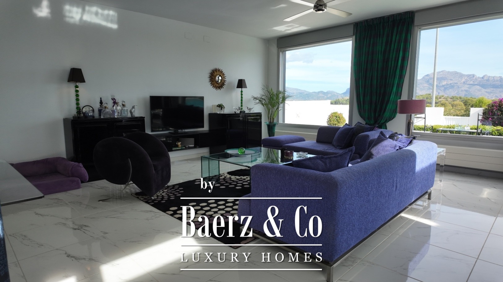 An outdoor relaxation zone unites low-maintenance greenery with a private pool, ready for quiet contemplation or entertaining. Practical features such as centralised heating, secure parking, a storage room, laundry, and high-quality finishes enhance the residential experience. The security door, double glazing, and fenced grounds reflect the discreet lifestyle sought in this region. Few opportunities combine mountain serenity with the draw of Costa Blanca living in such a considered architectural setting. Luxury villa for sale in Polop.