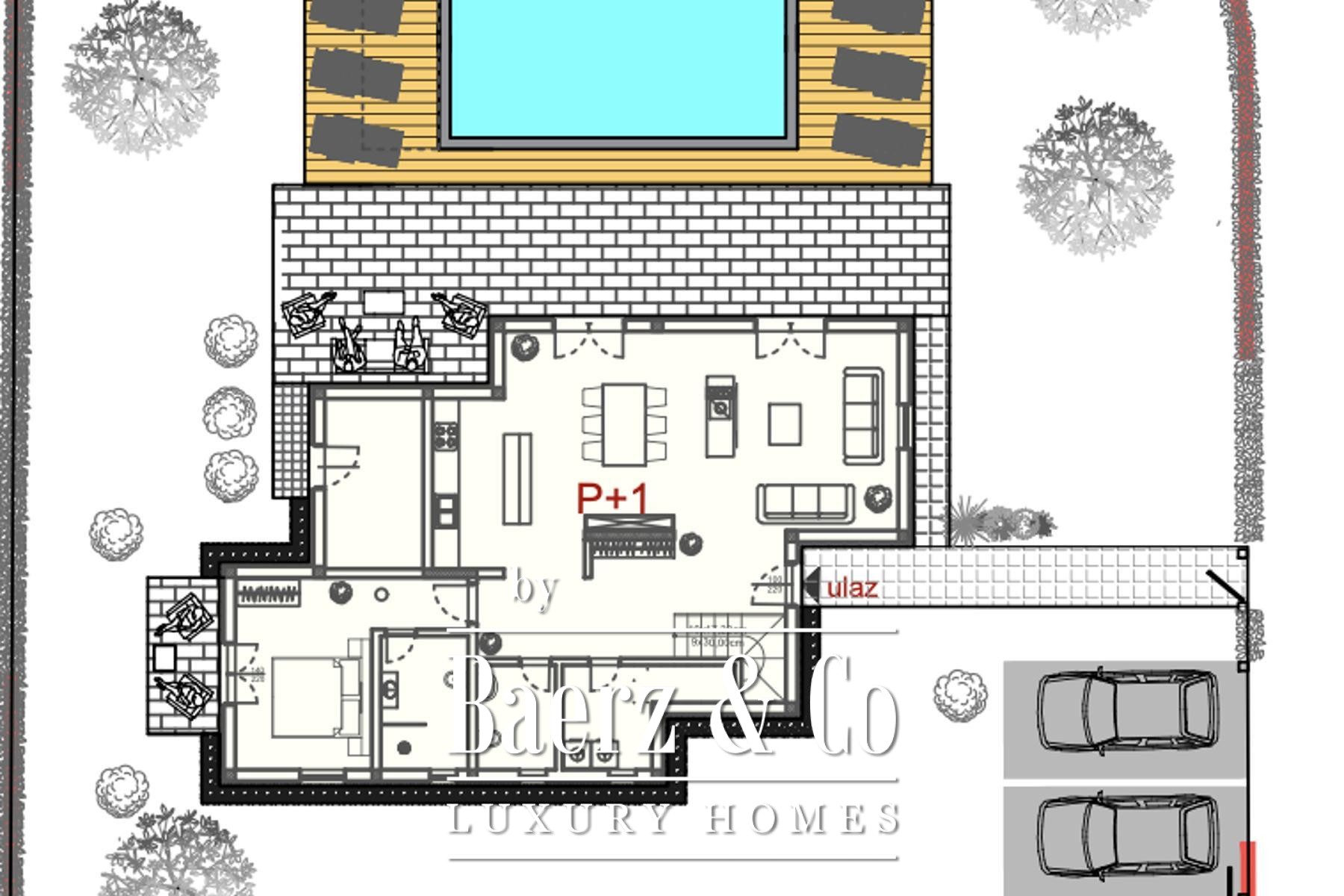 Preparation for solar panels, a landscaped garden, and two large covered parking spaces elevate functionality. Priced at €1,196,000 and including VAT, this property presents a careful balance of design, space, and considered amenities in reach of Poreč’s coastline and heritage.